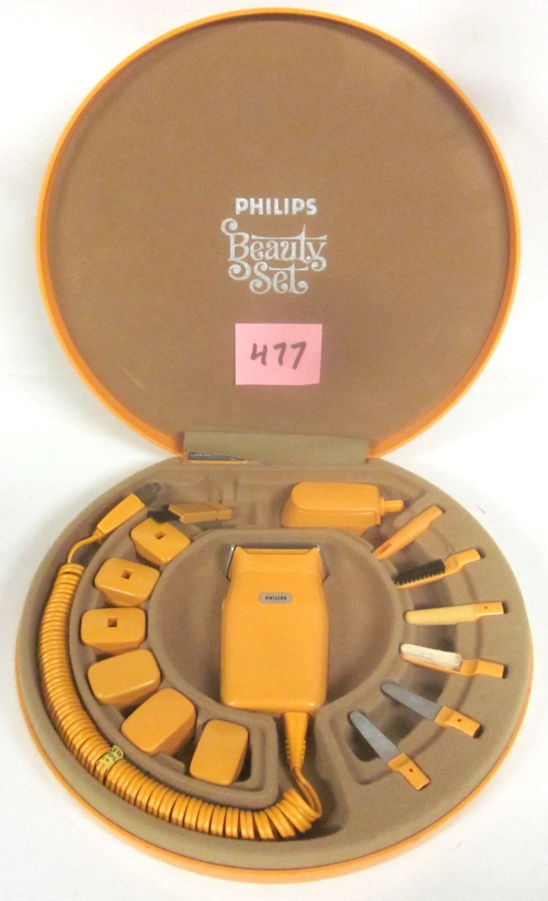 Vintage 1970’s Philips Electric Beauty Set. Inc. Razor w/ 14 Attachments.
