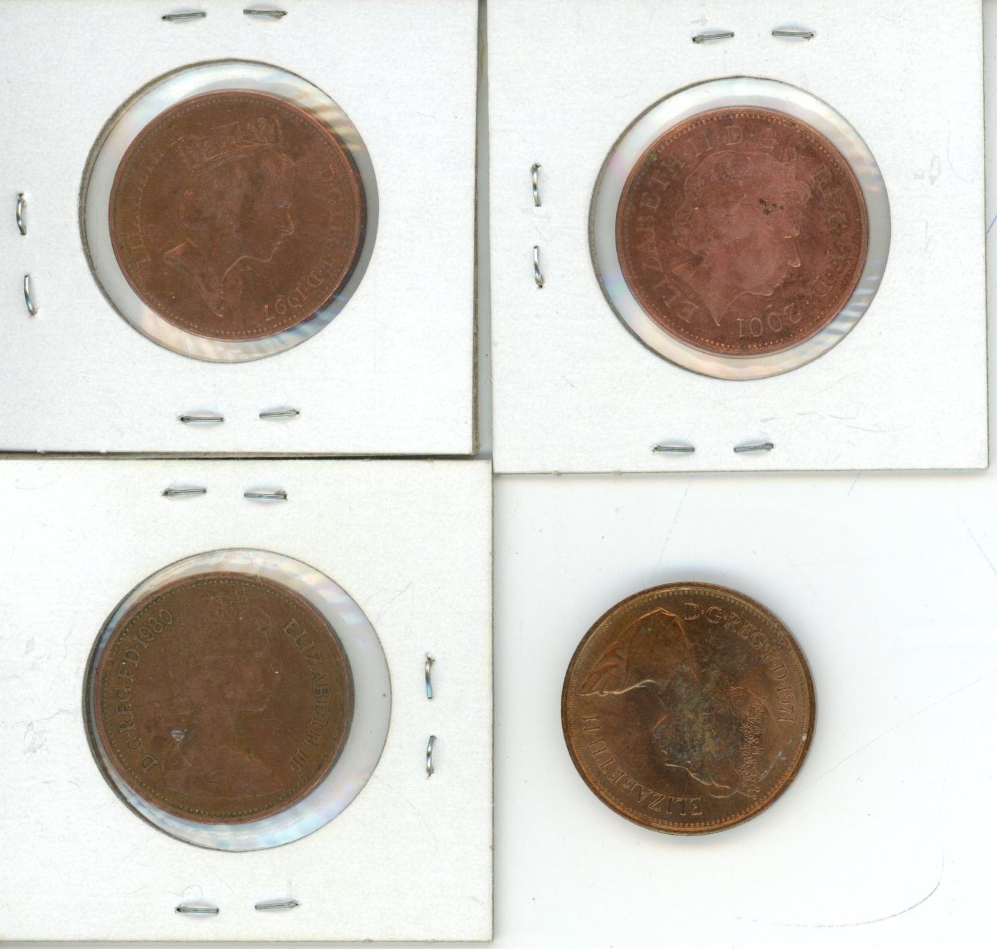Vintage 1971,1980,1997, and 2001 Elizabeth II New Pence Coins D.G REG.F. UK