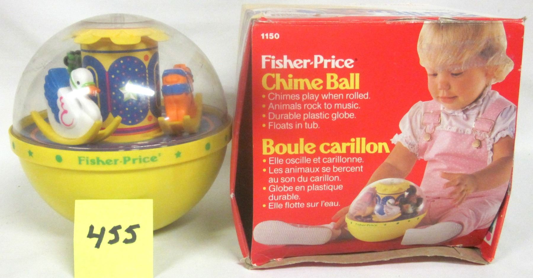 Vintage 1973 Fisher Price #1150 Floating Plastic Roly Poly Chime Ball w/ Original Box