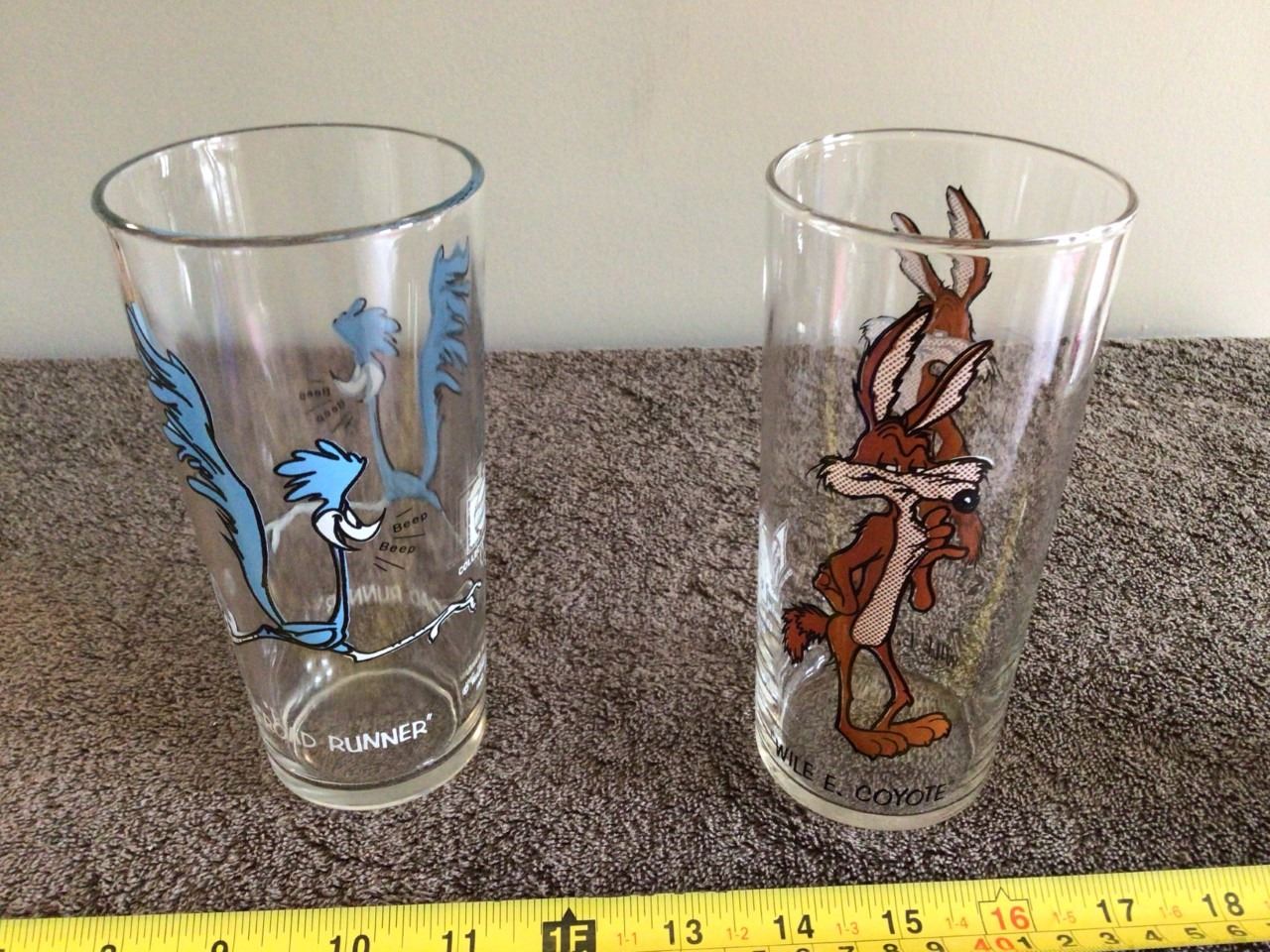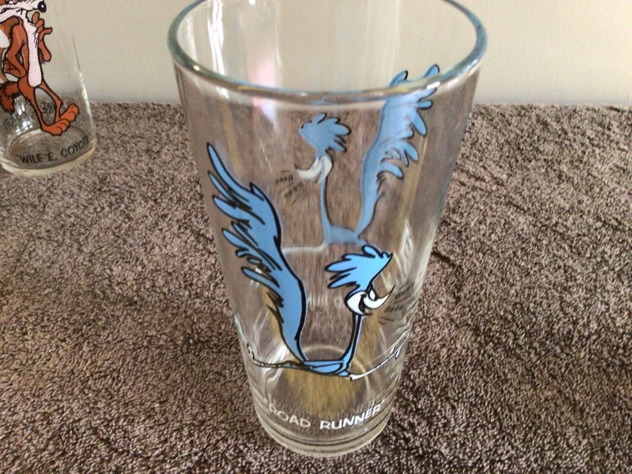 Vintage 1973 Pepsi Looney Tunes Road Runner and Wile E. Cyote water glasses. Like new