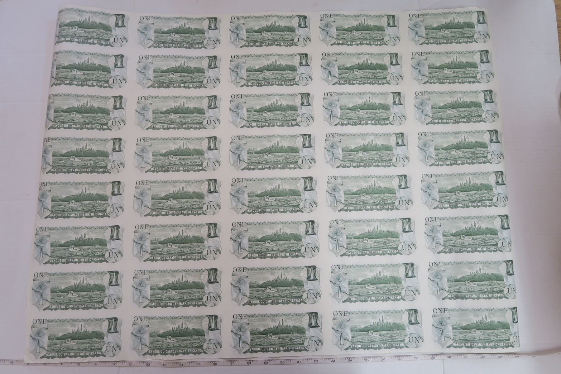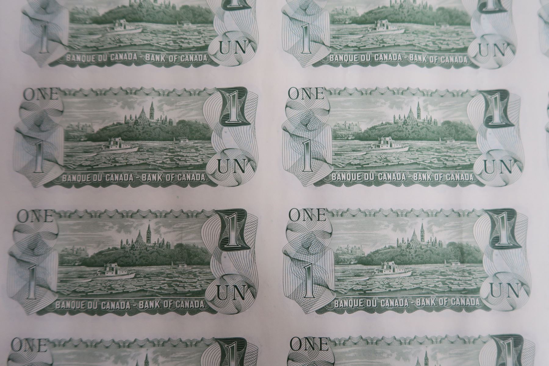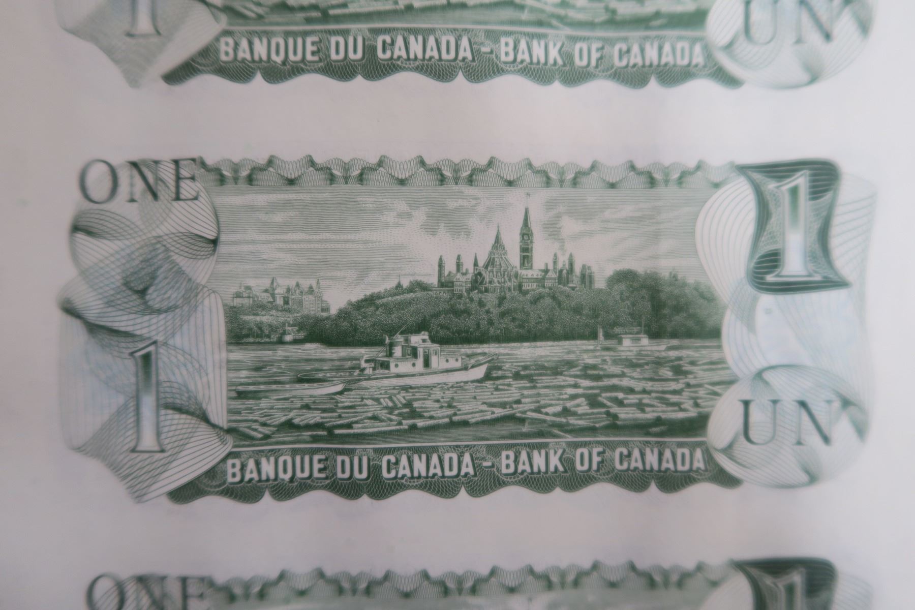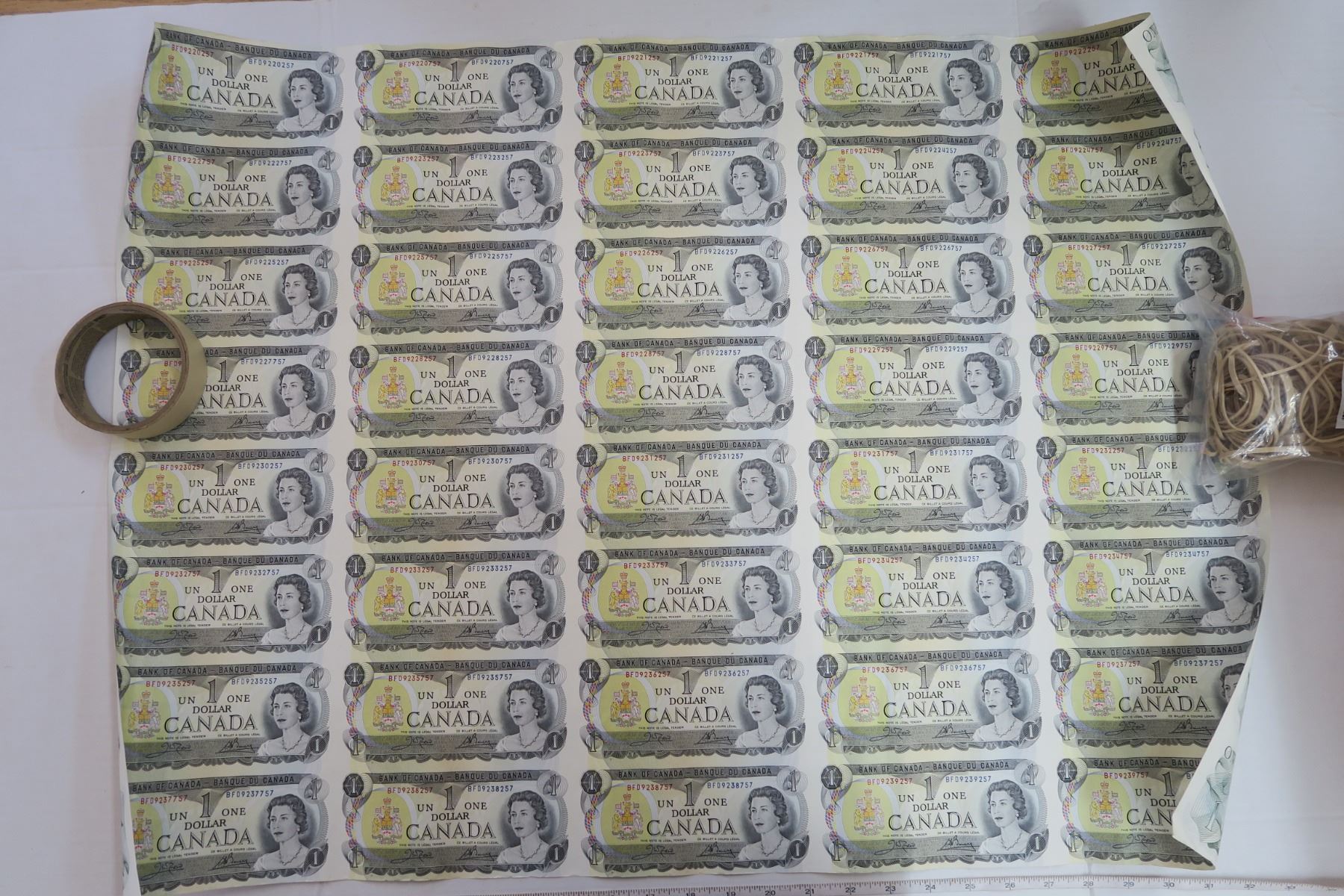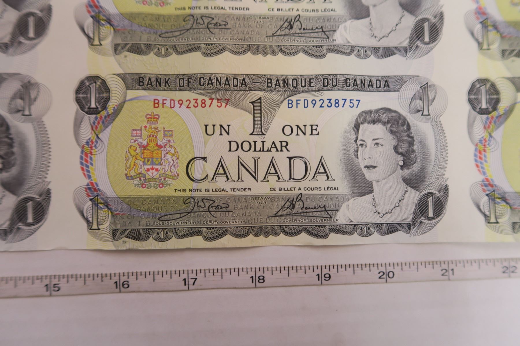 Vintage 1973 Uncut Sheet of Canadian $1 Bills