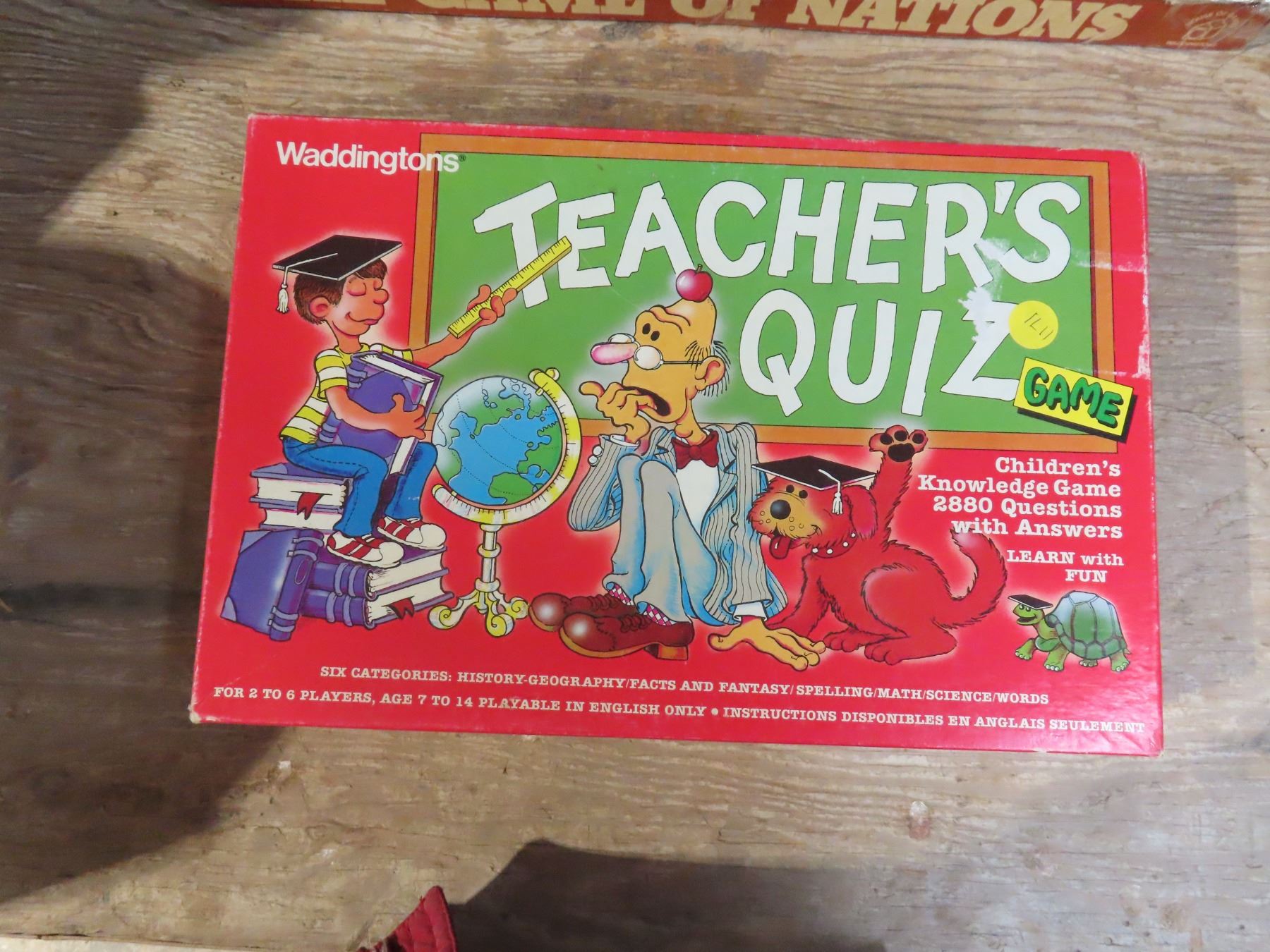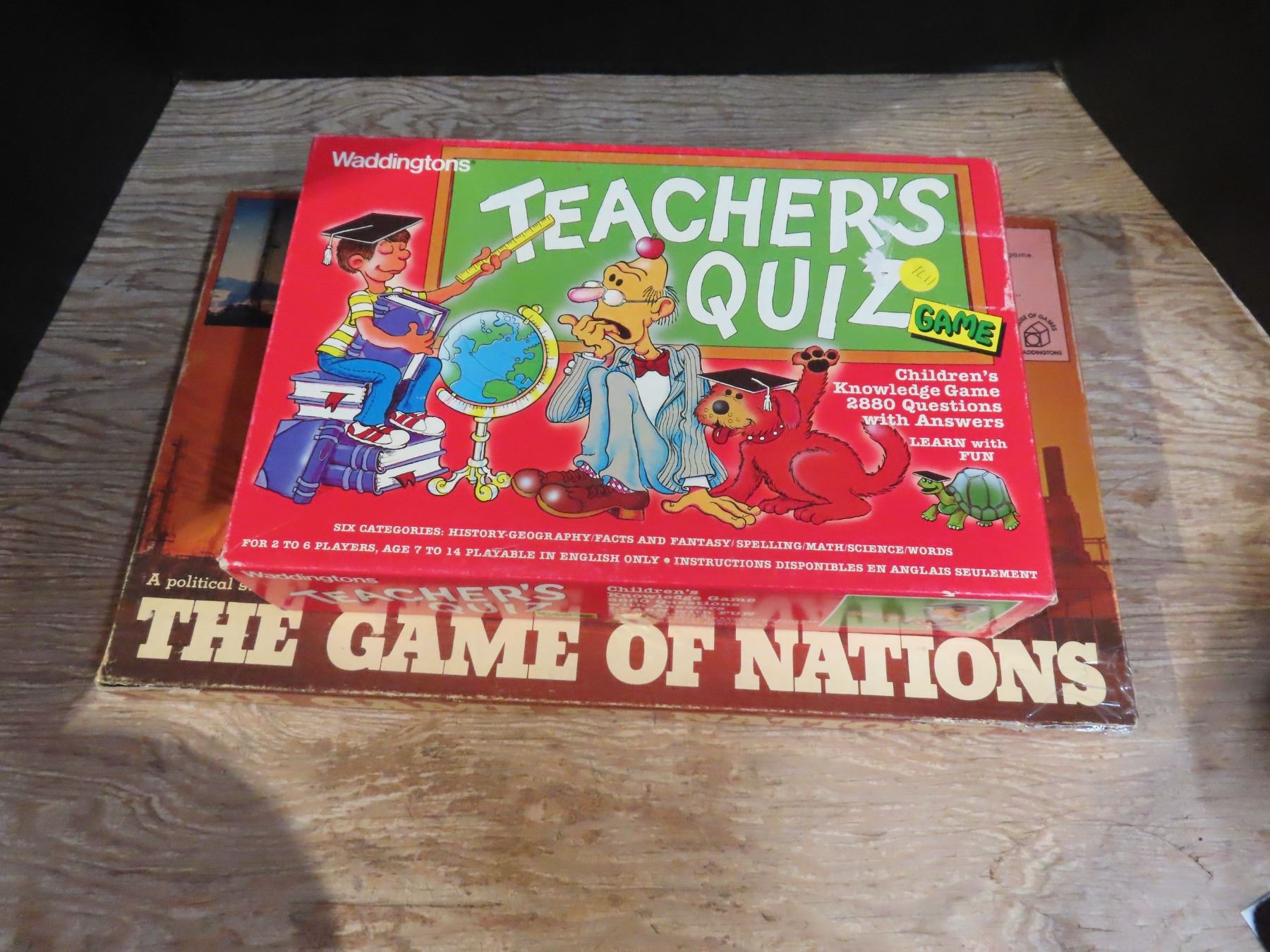 Vintage 1973 weddington game of nations and 1984 weddington teachers quiz family game