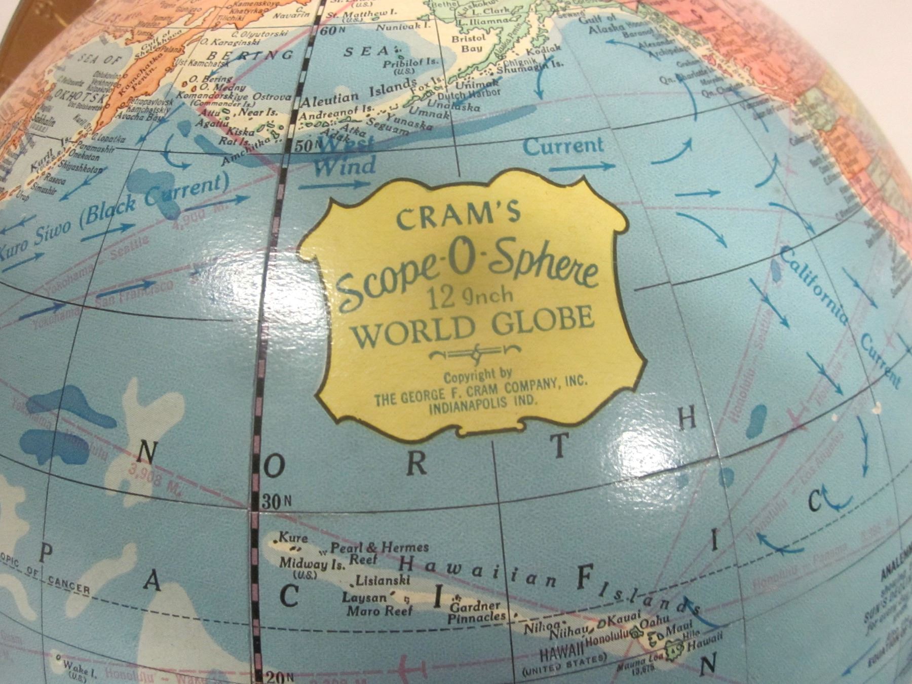 Vintage 1980's Cram's Scope-O-Sphere 12" Blue World Globe