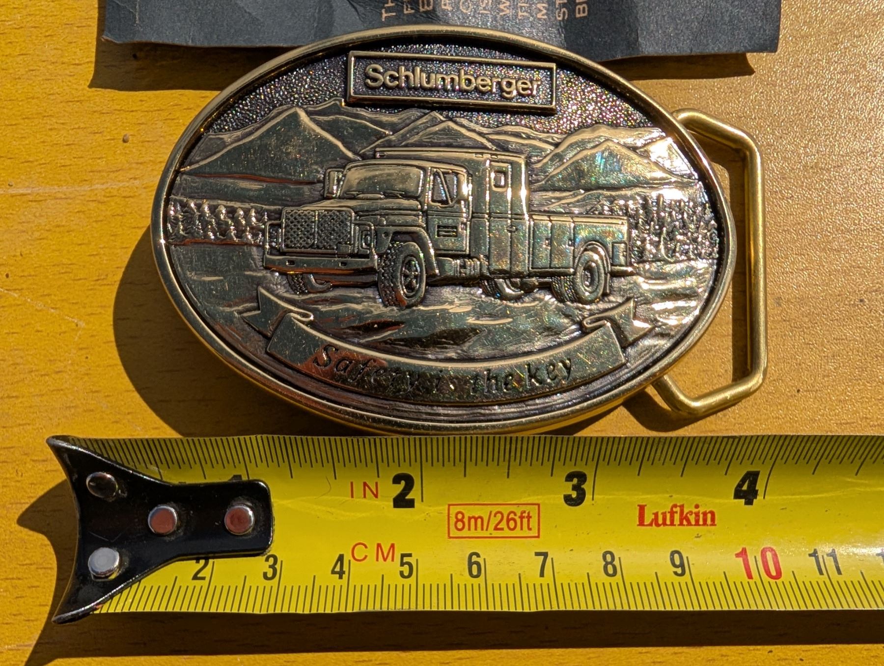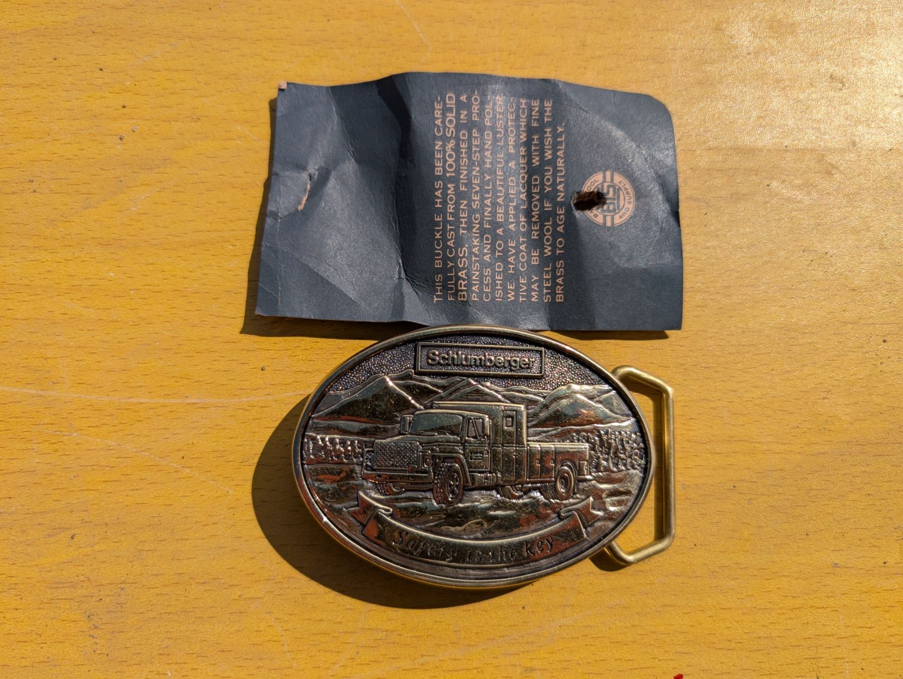 Vintage 1983 Schlumberger Belt buckle w/ Paper