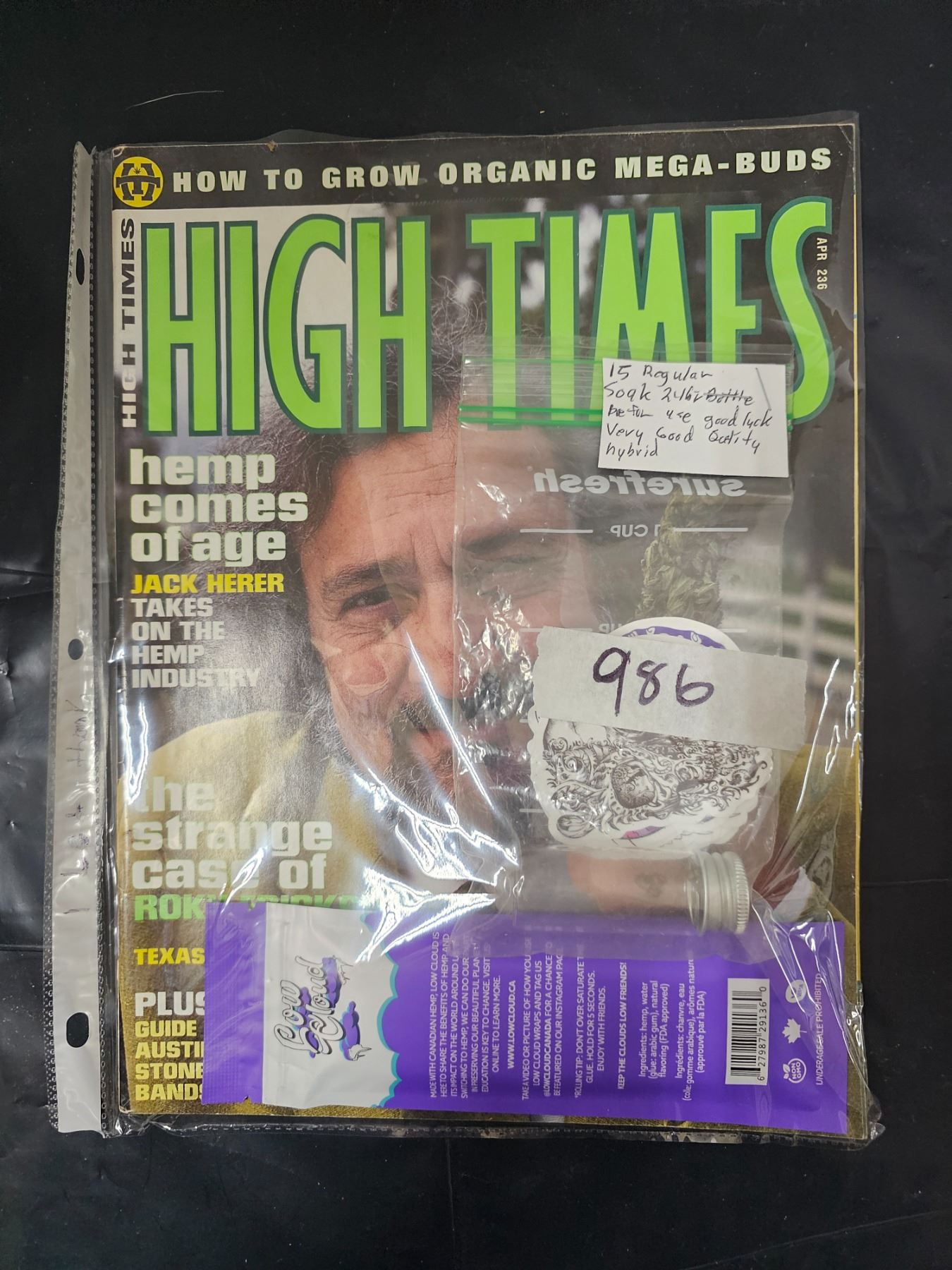 Vintage 1995 “High Times” Magazine w/ Hemp Wraps, Seeds, & Stickers