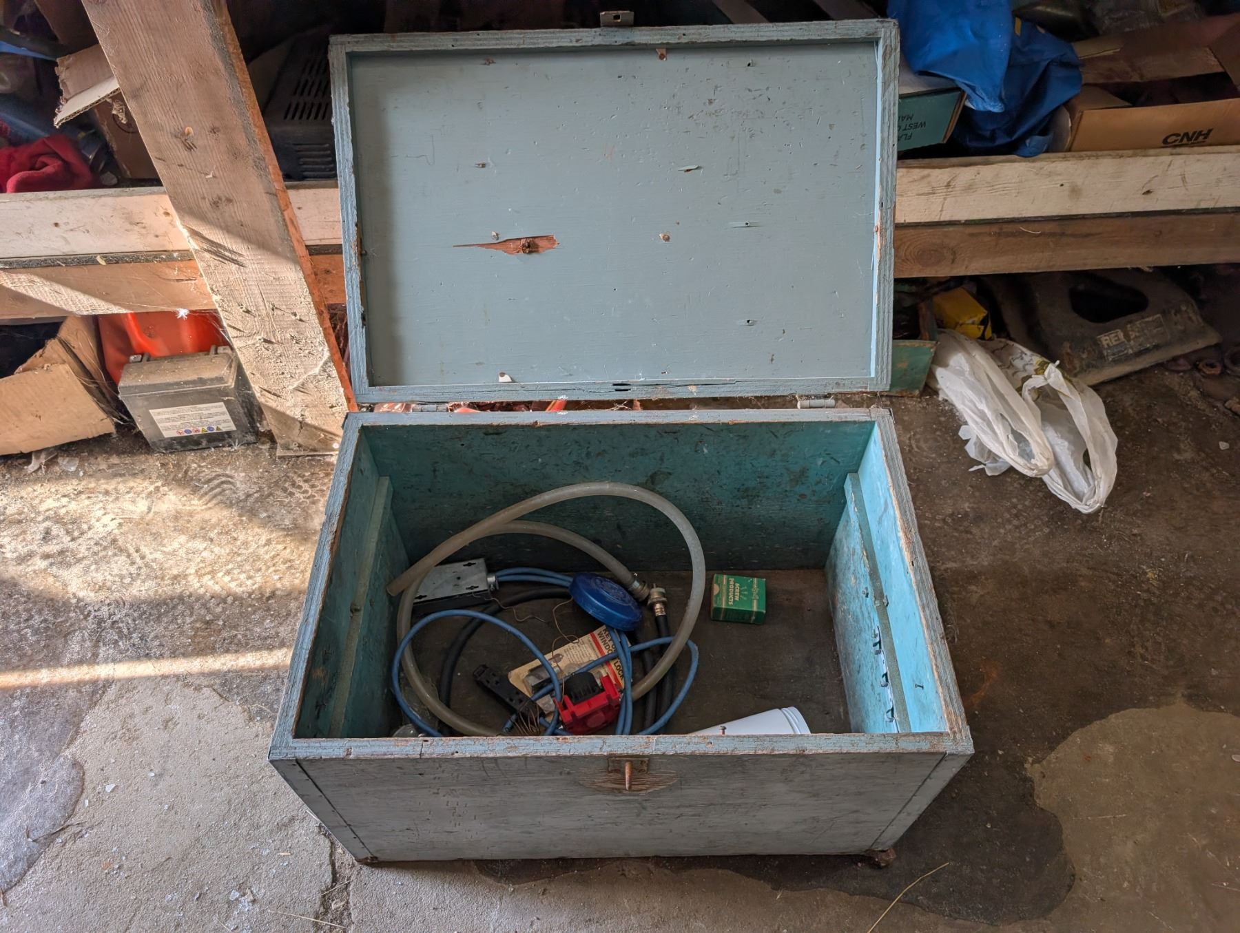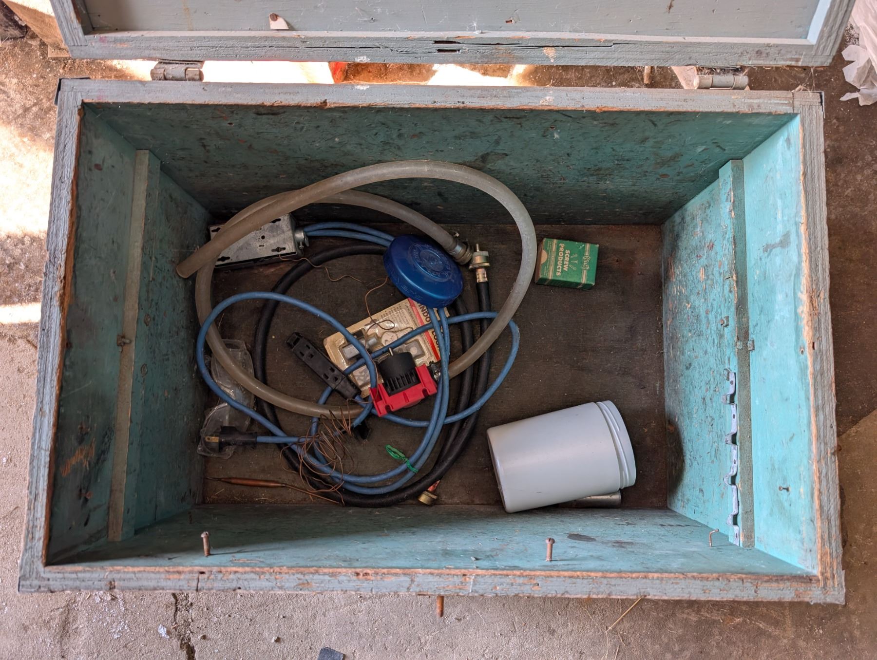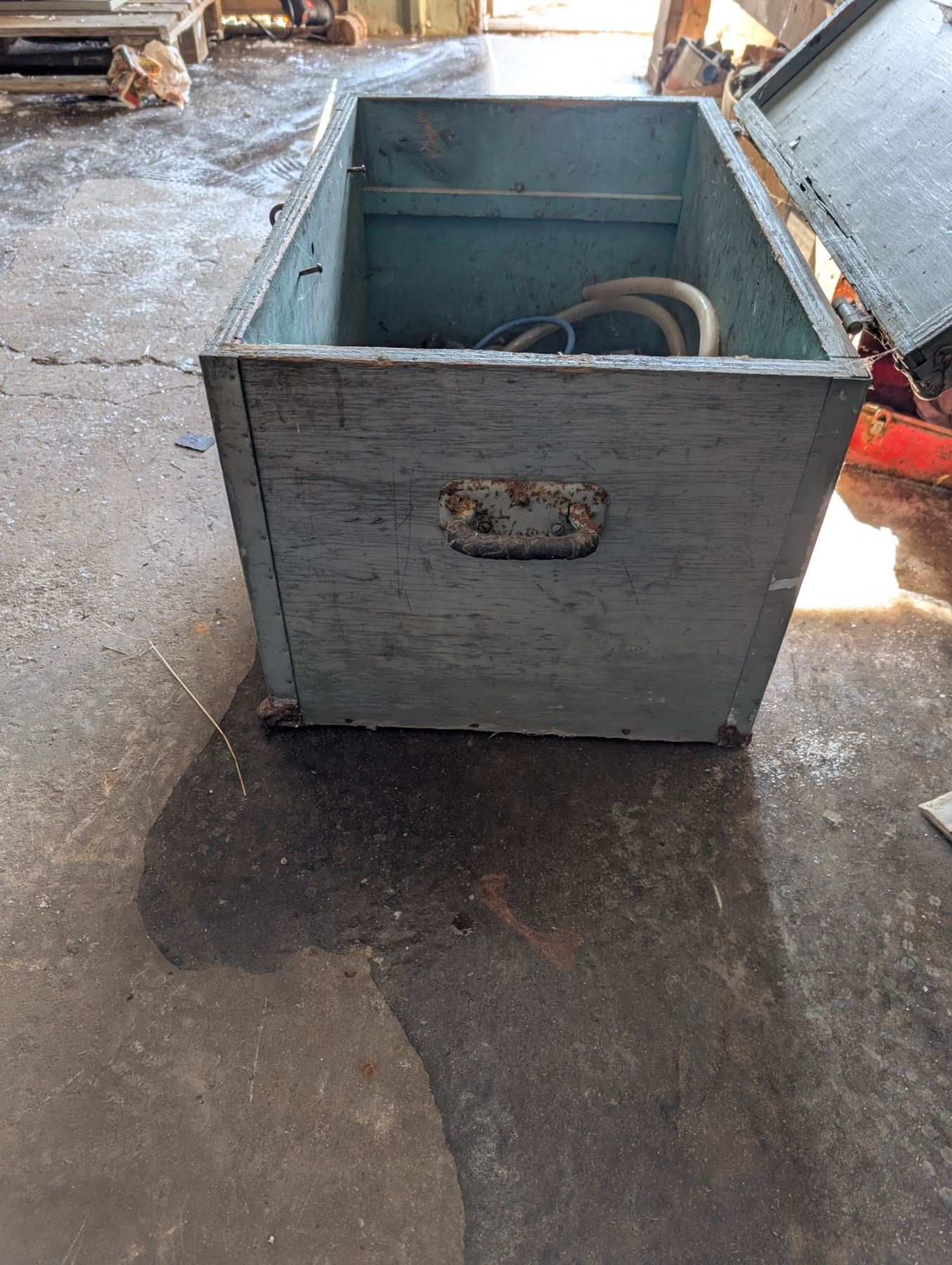 Vintage 2 Handle Wood Chest w/ misc. (16"x17"x26")