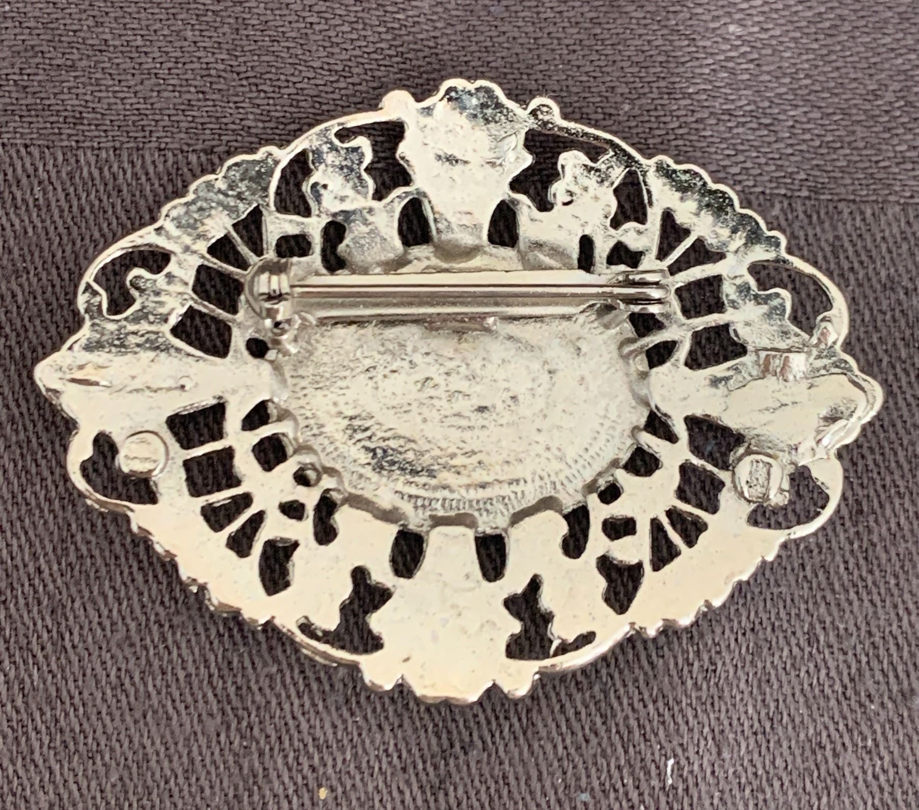Vintage 2" Wide Filigree & Black Resin Brooch