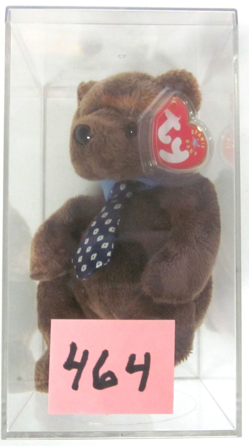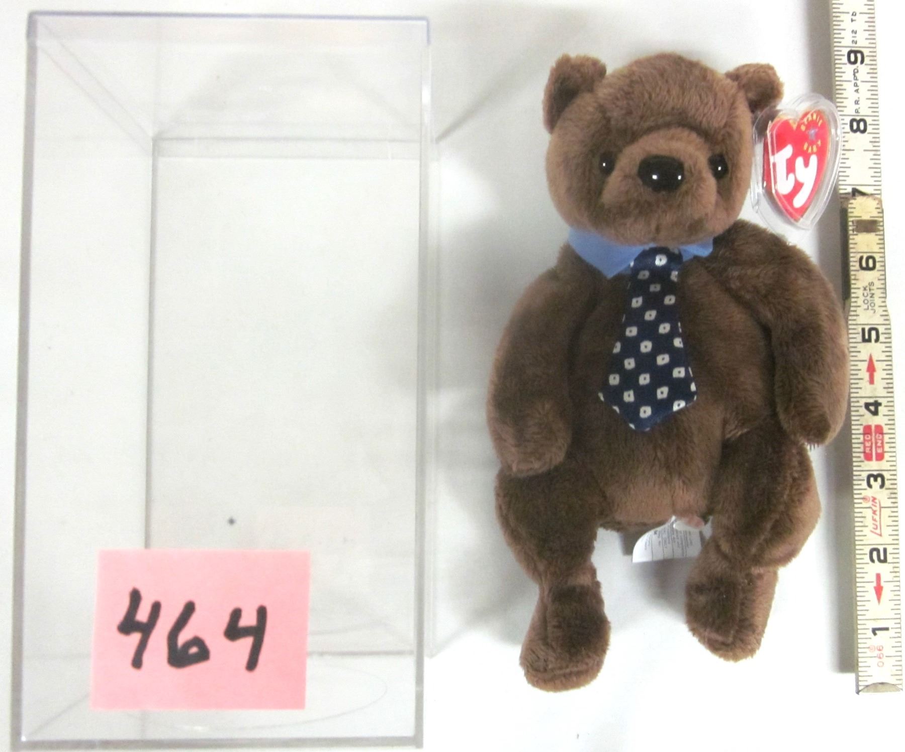 Vintage 2001 Ty Beanie Baby Bear “Hero” w/ Clear Hard Plastic Storage Case