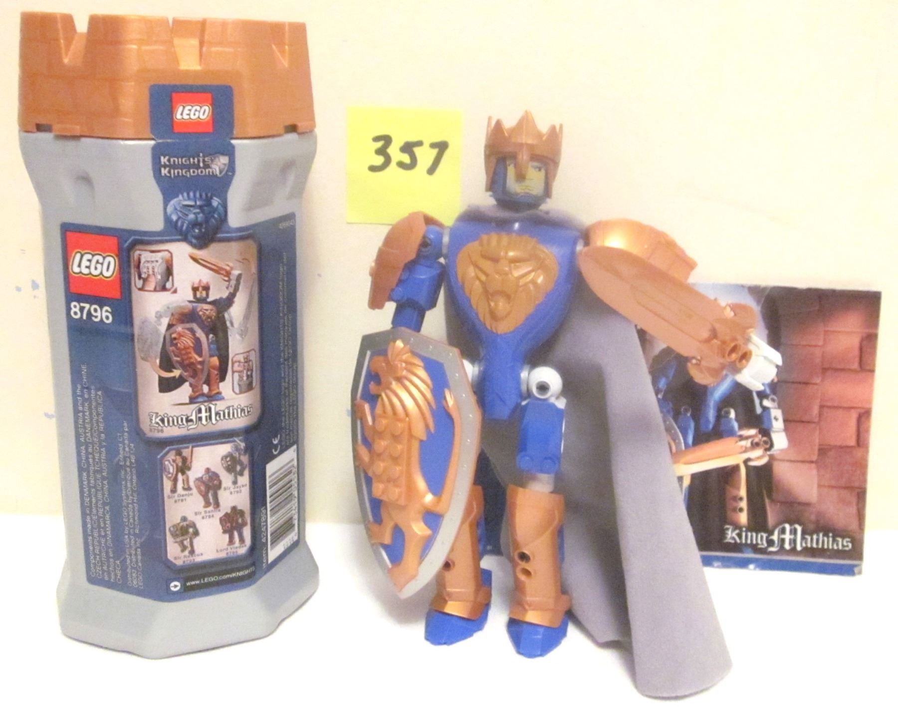 Vintage 2005 Lego #8796 "King Mathias" w/Canister + Cape (Knight's Kingdom II)