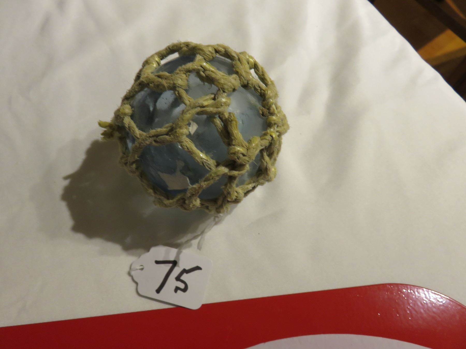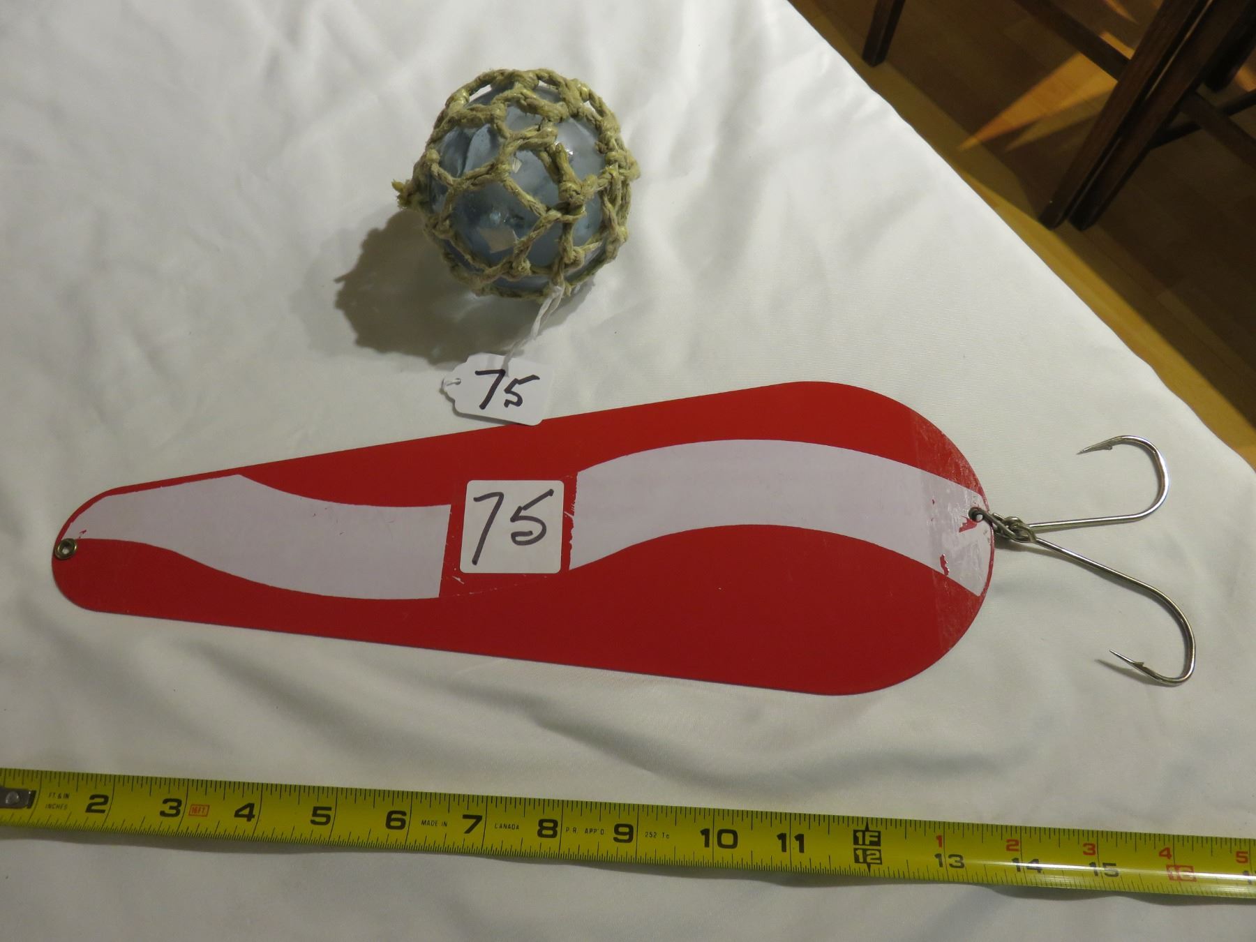 Vintage 4" Japanese glass fish net ball, 14" fish hook