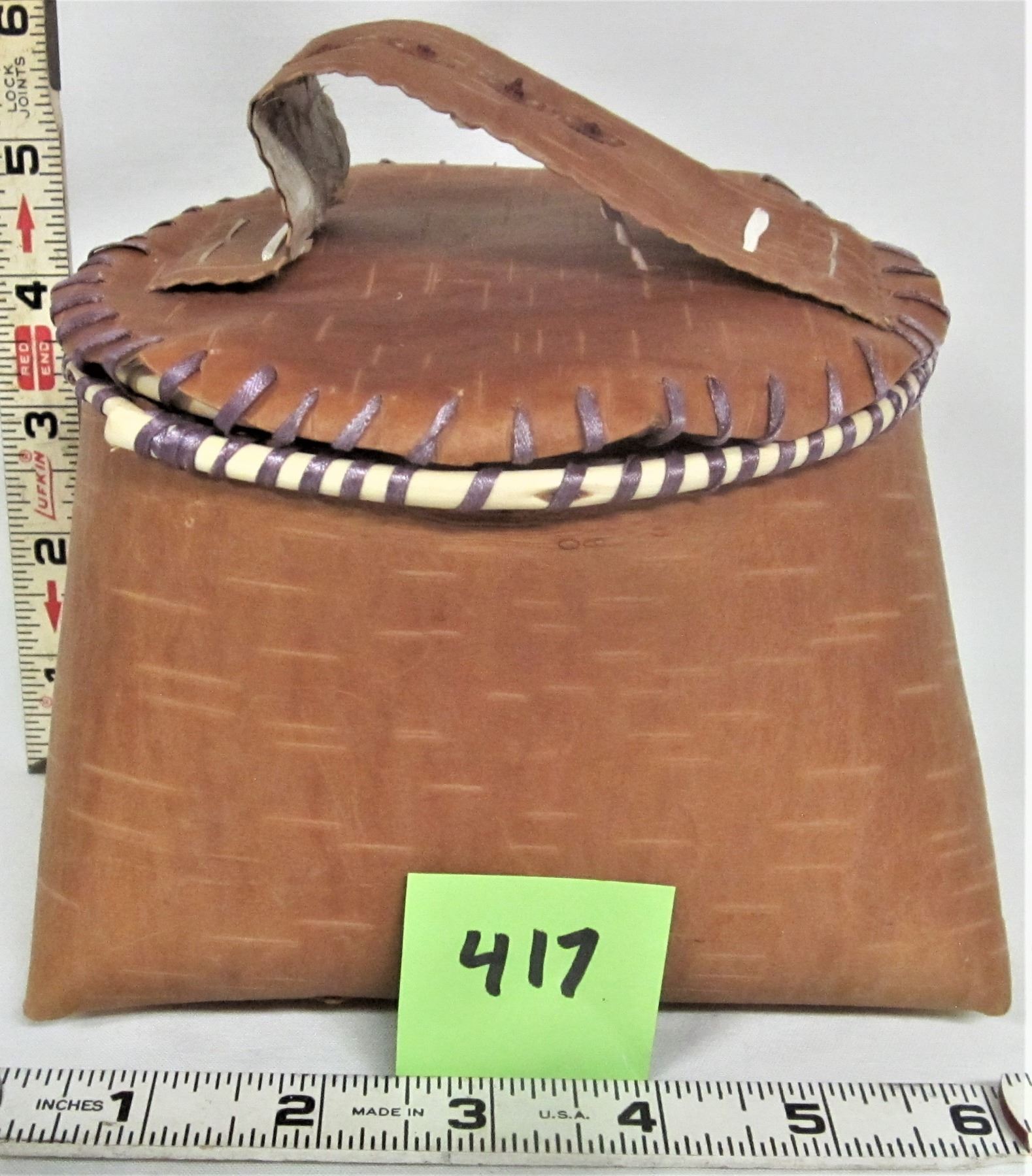 Vintage 6" X 4 1/2" Birch Bark Basket / Lid