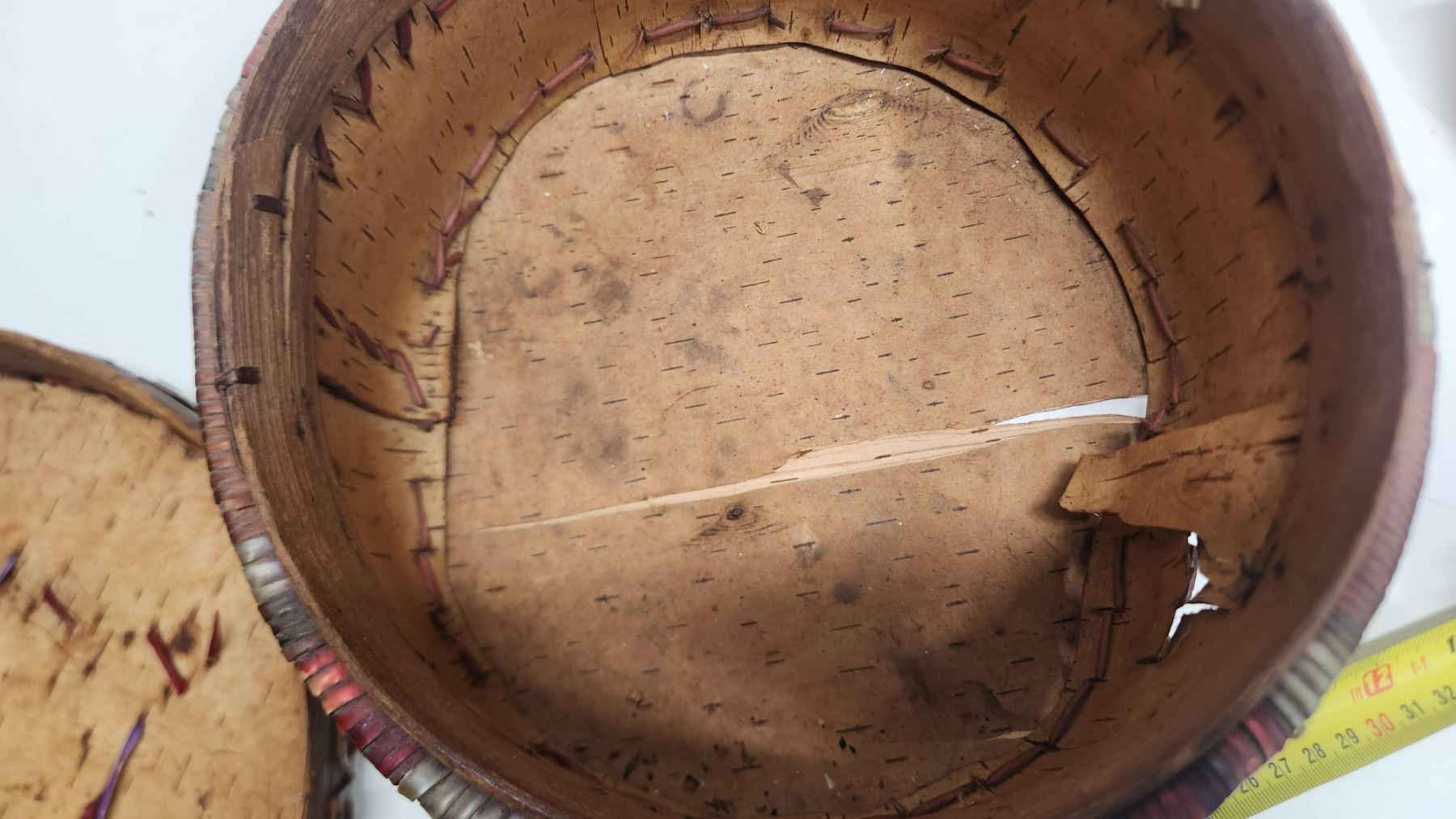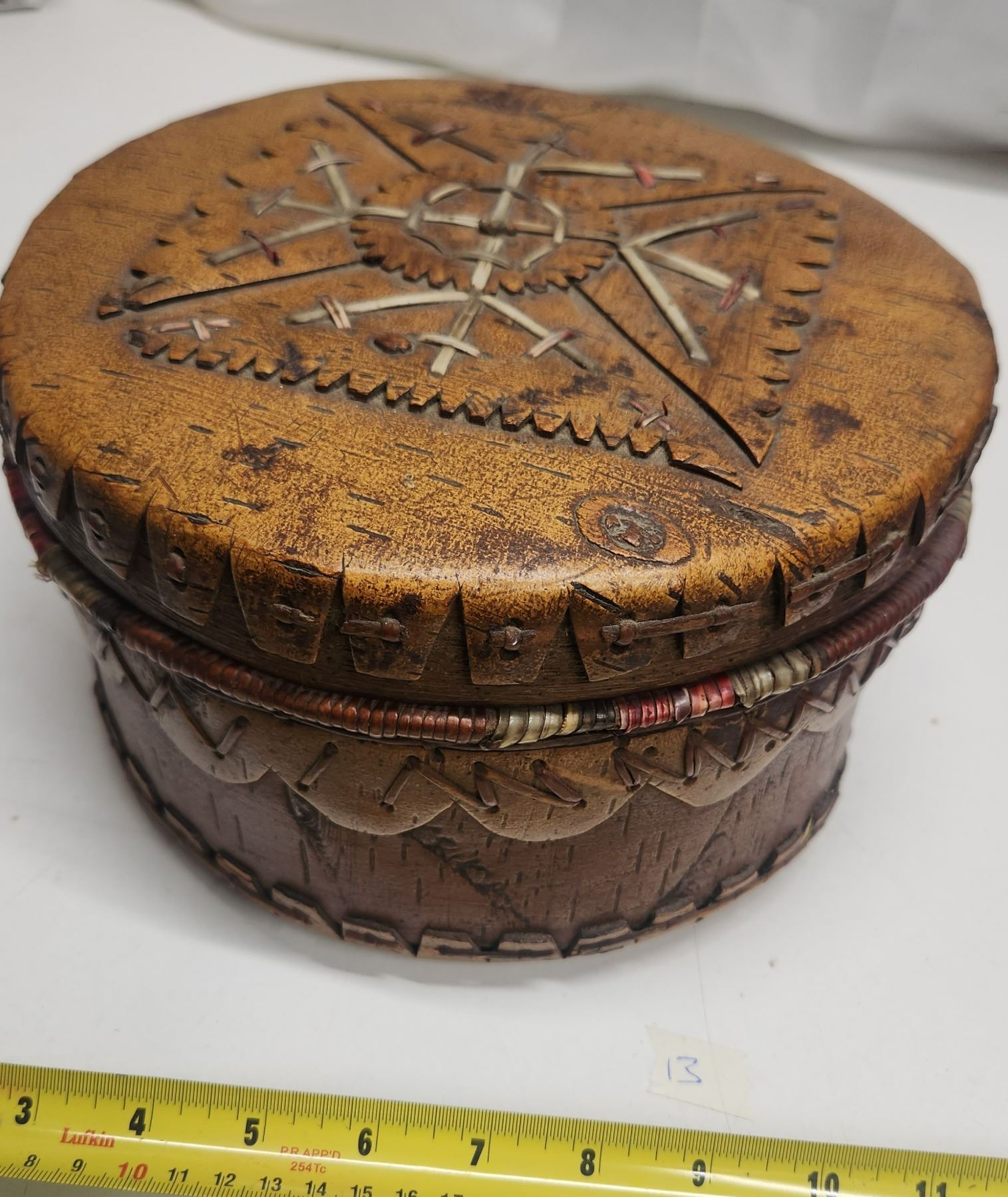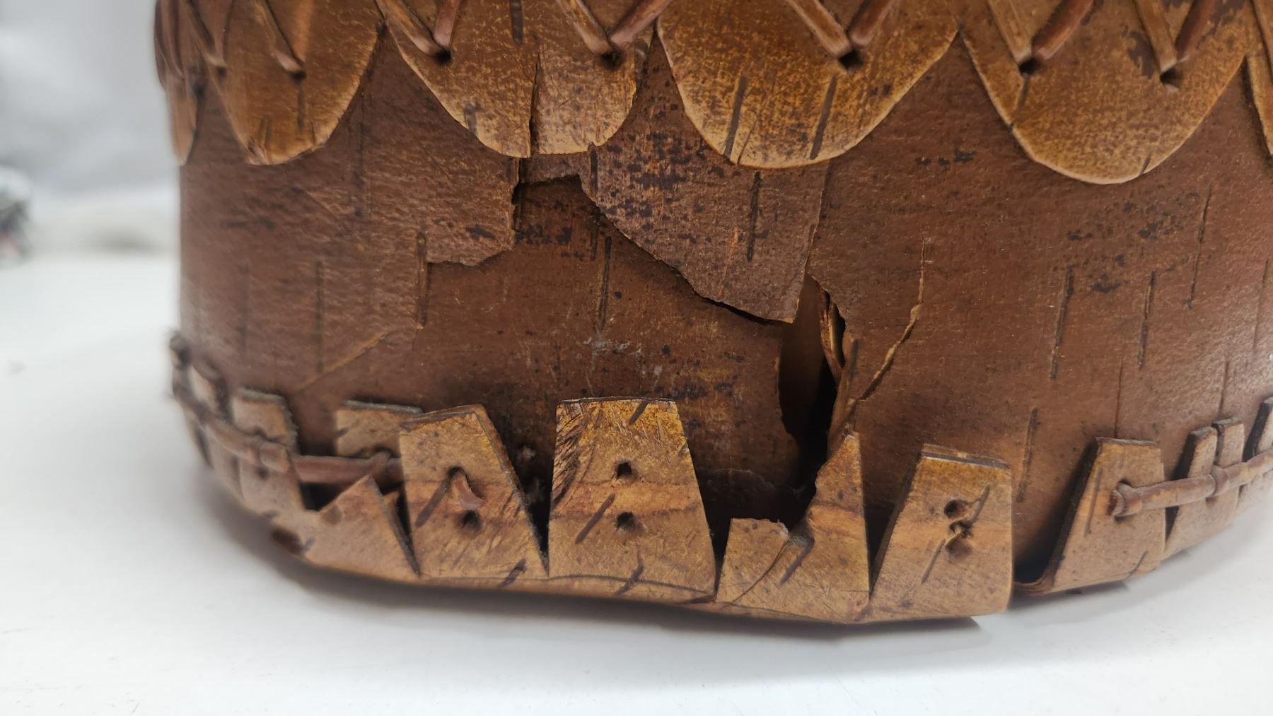 Vintage 9" x5.5" Birch Bark Basket (damaged) Early 1900s