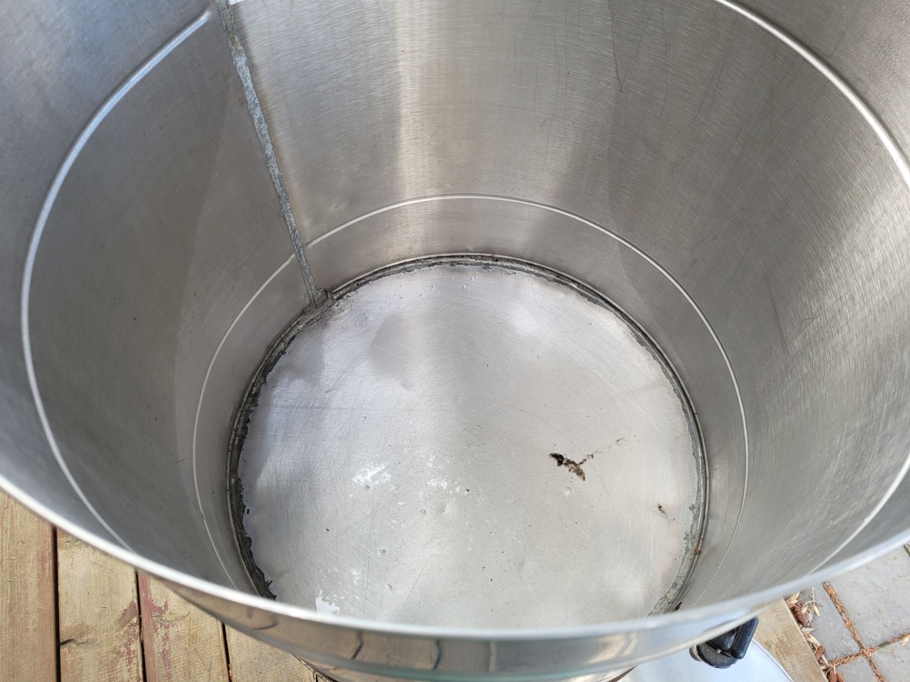 Vintage A&W Root Beer large stainless steel mixing container/ dispenser on metal stand.