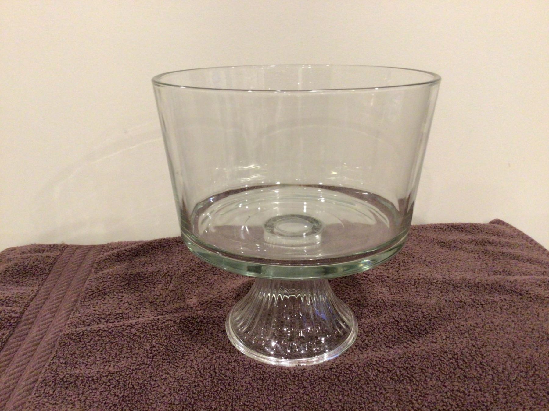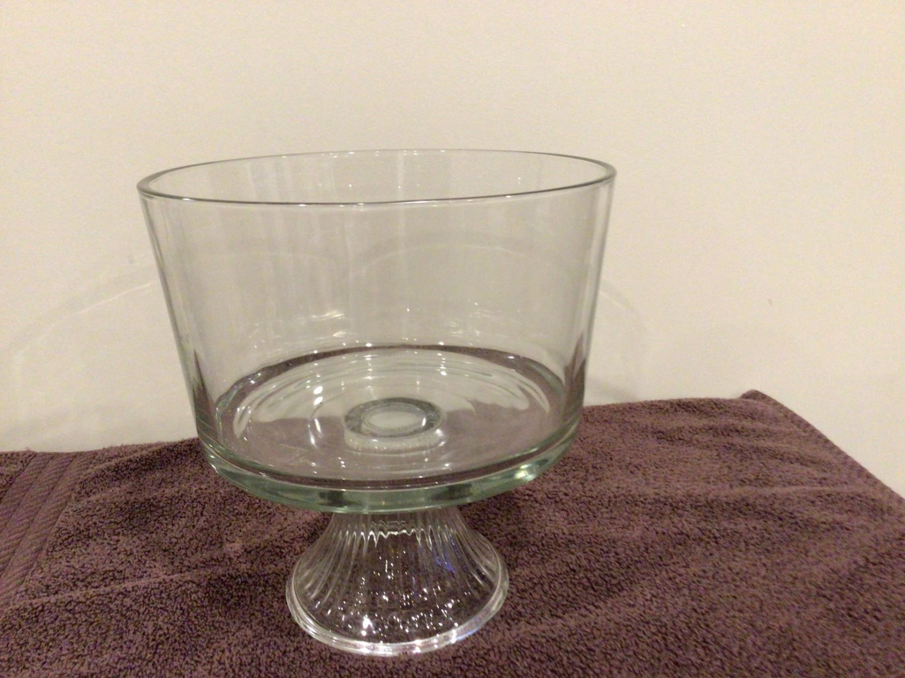 Vintage Anchor Hocking pedestal trifle bowl. Clear glass. 8" diameter, 9" tall.