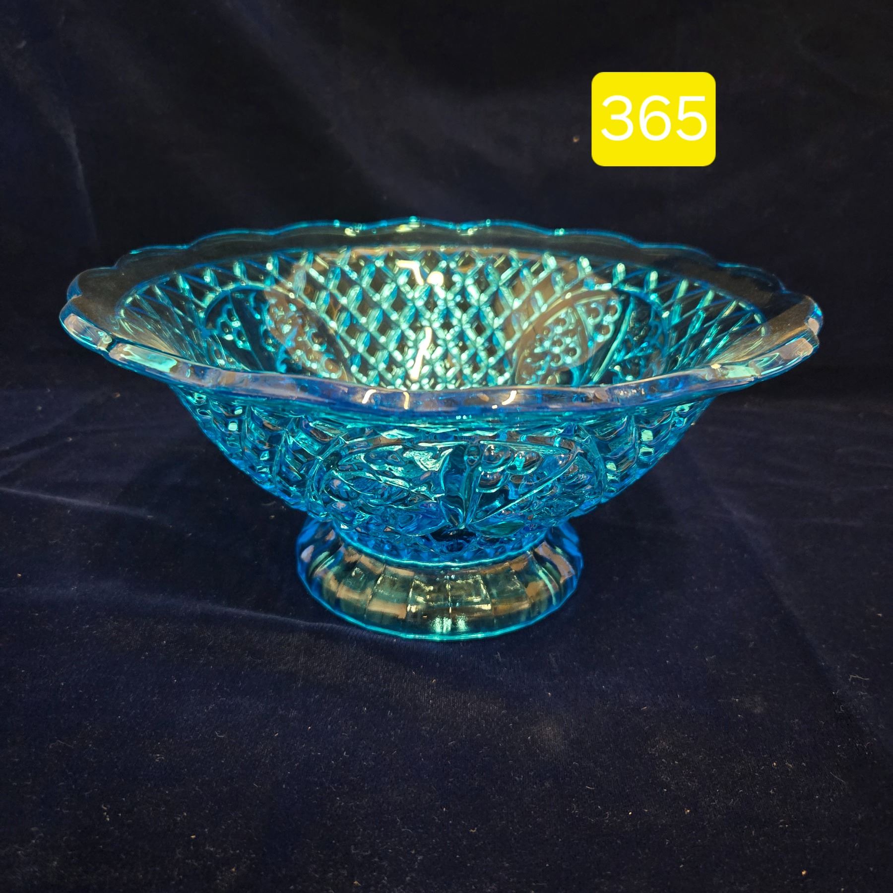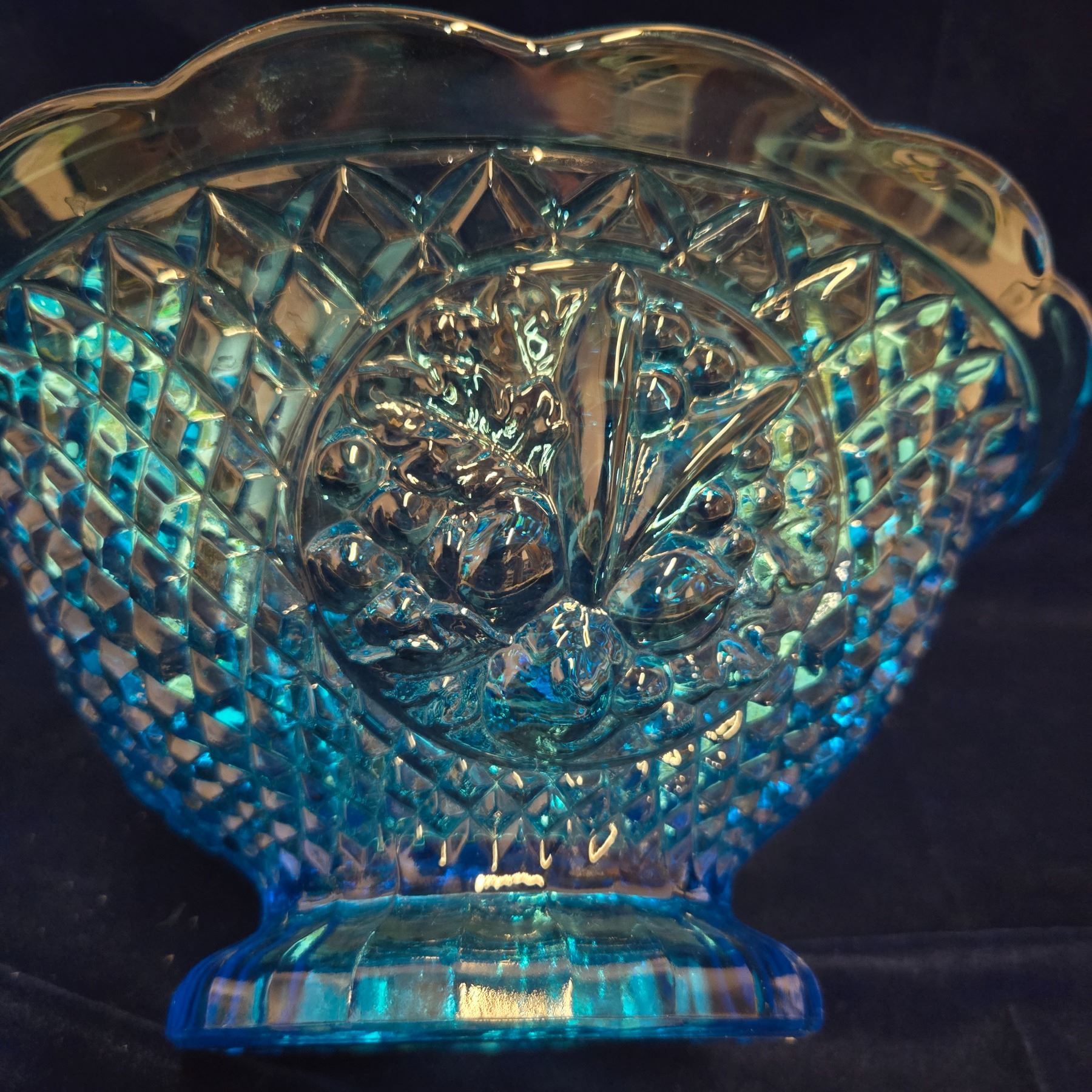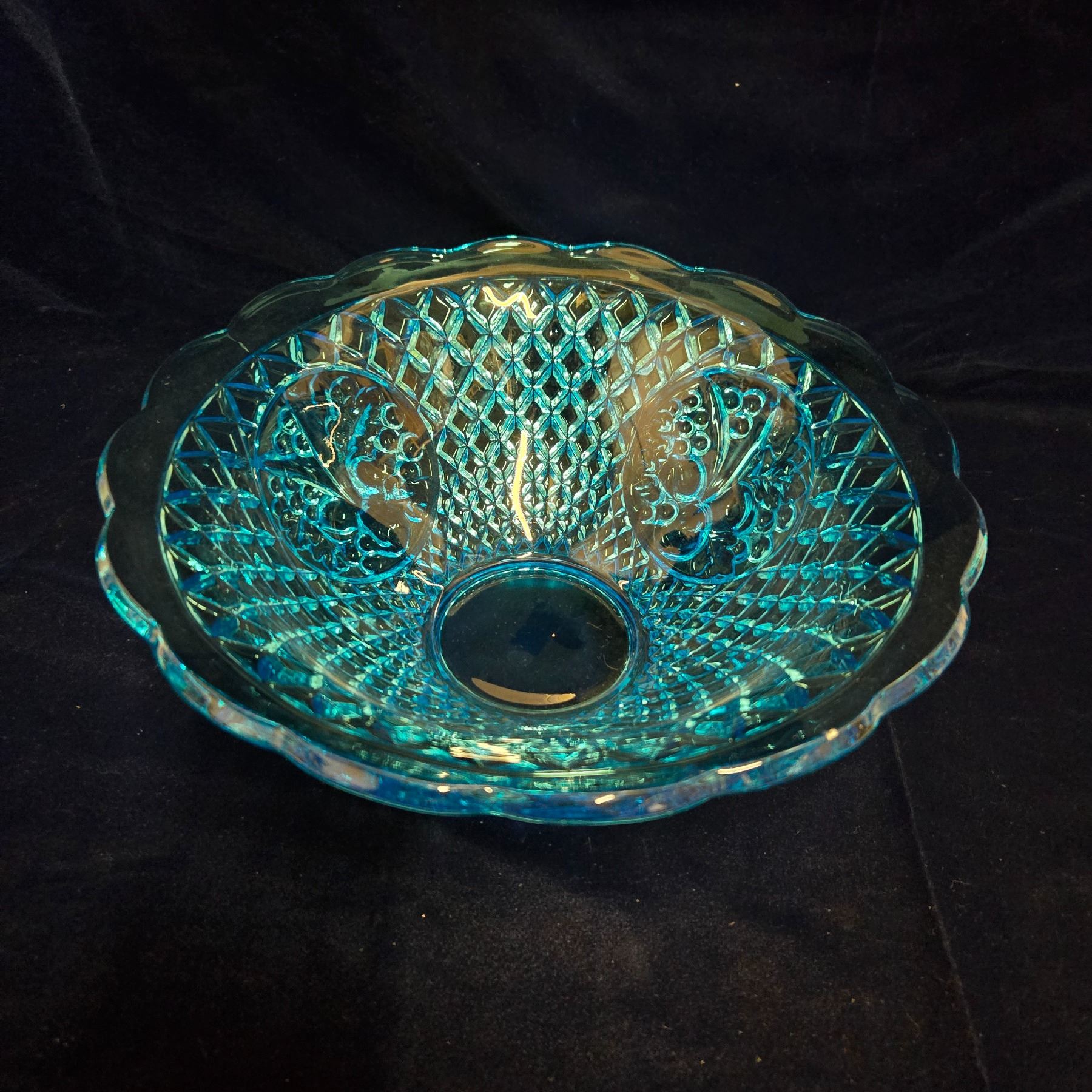 Vintage Aqua Blue Waffle Panel Glass Bowl 10" across