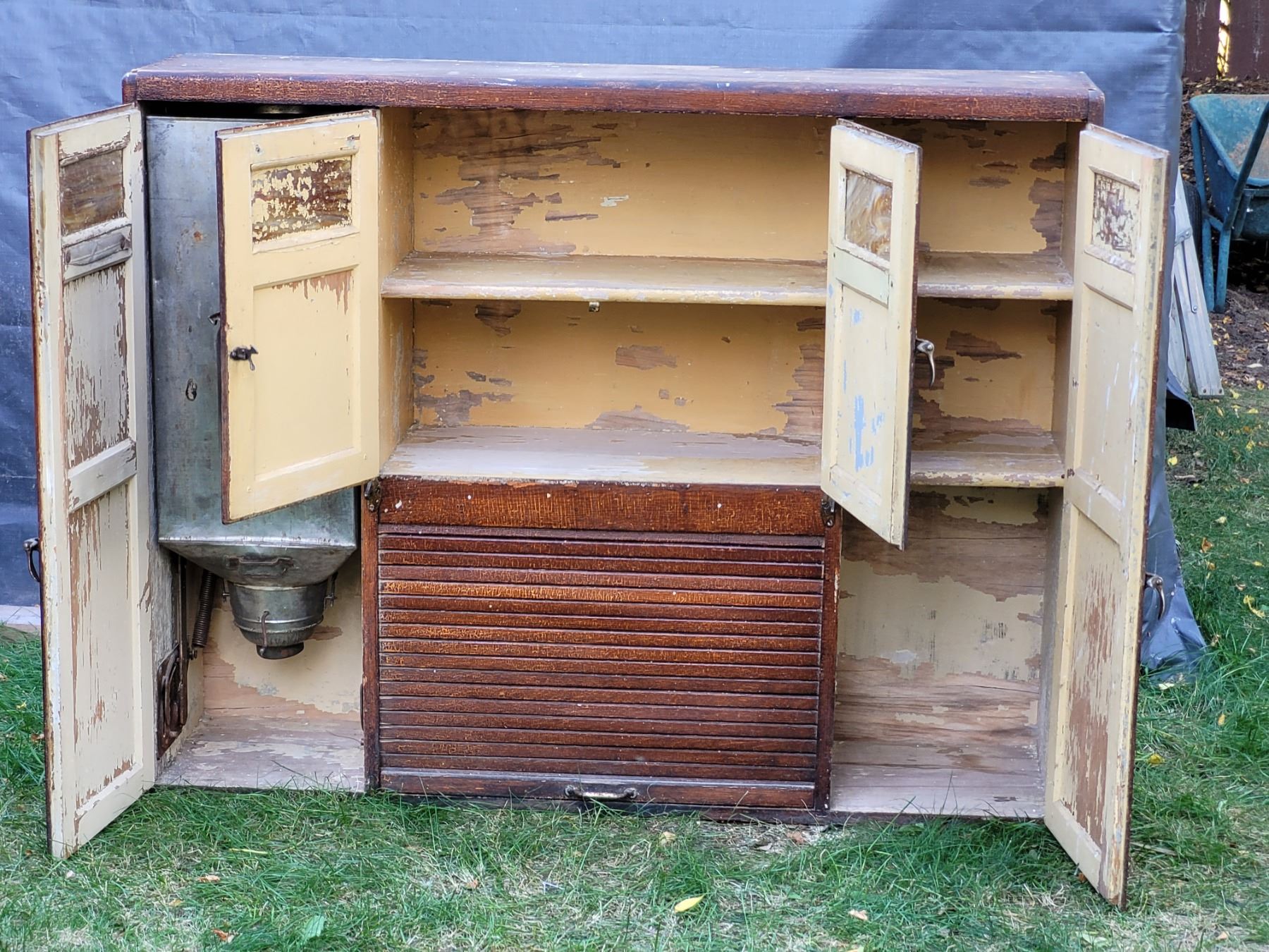 Vintage Bakers Hutch. 37.5” high X 47” wide X12” deep