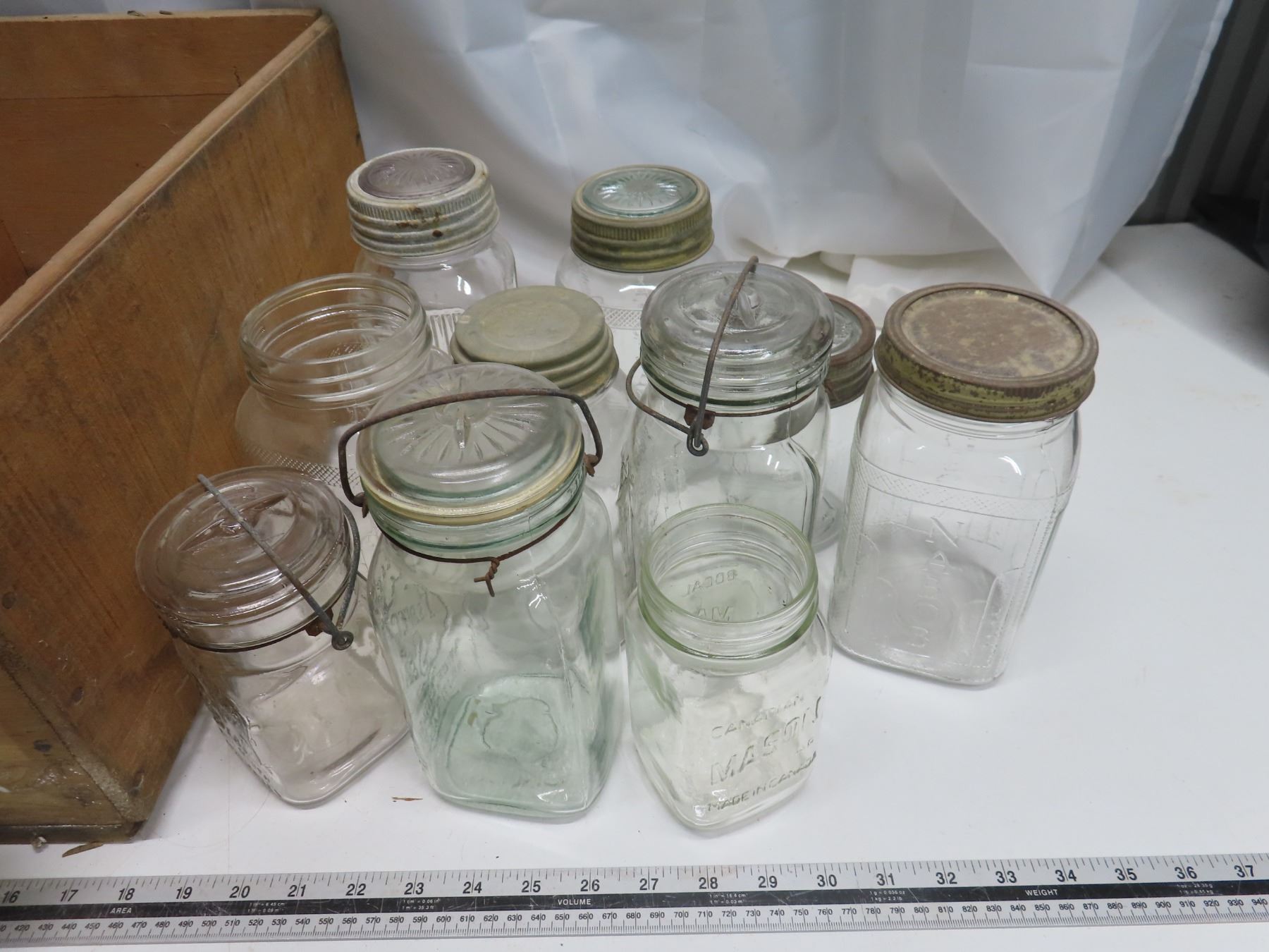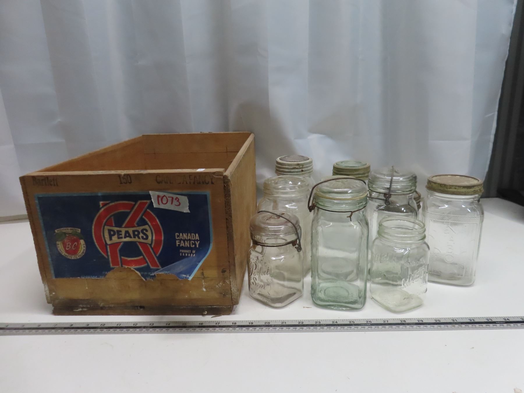 Vintage Bartlett Pear Crate w/ Lot of Jars