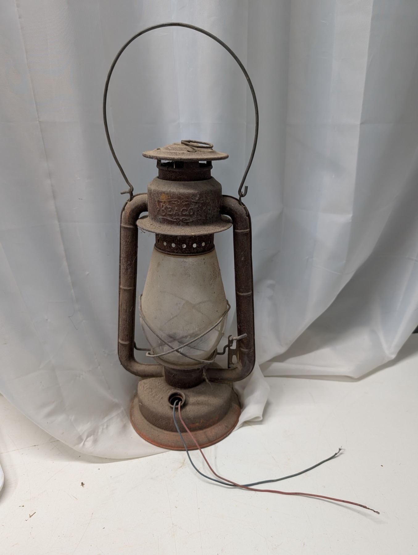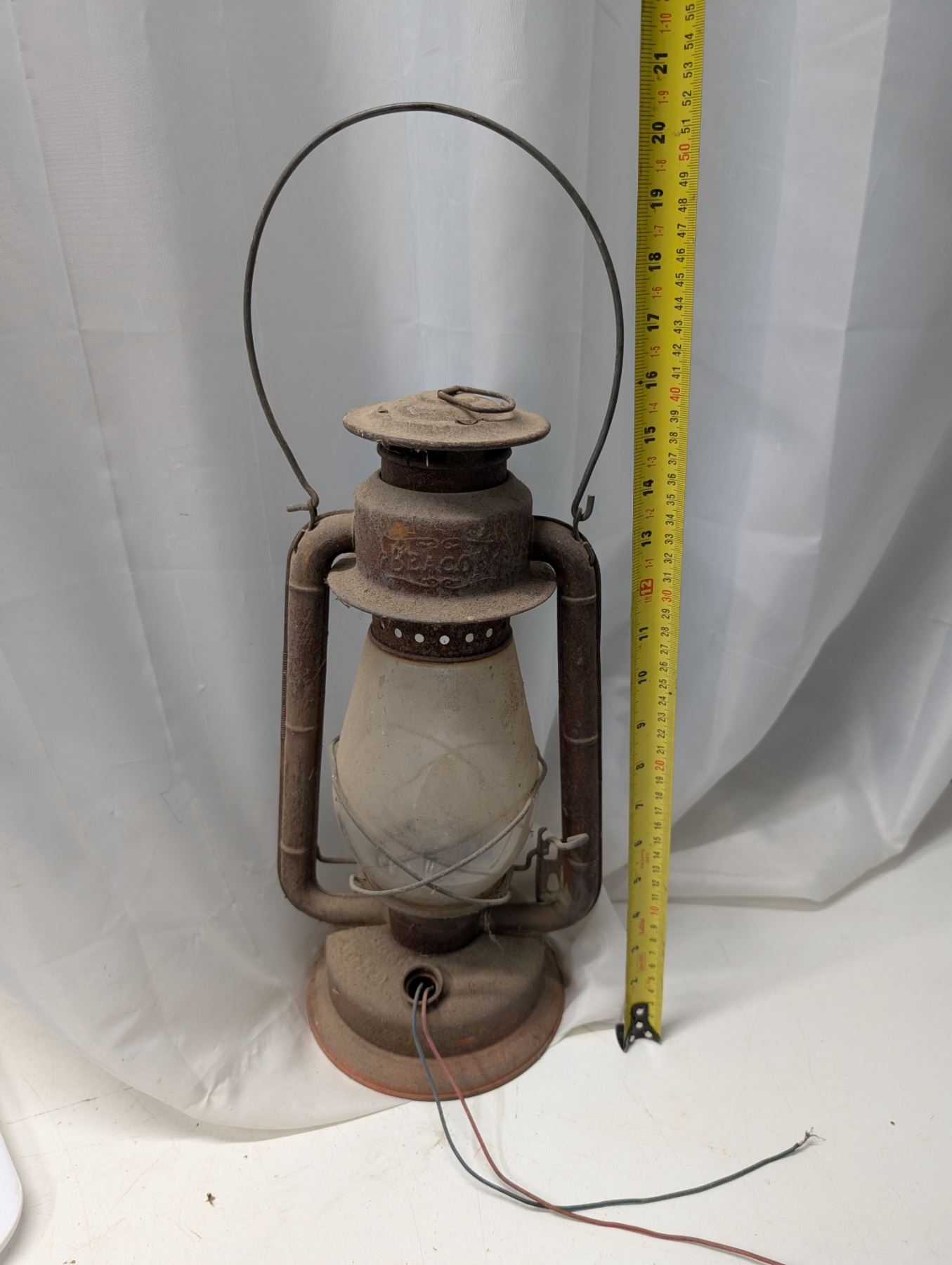 Vintage Beacon Lantern Modified w/ Wires and Bulb (Not Tested)