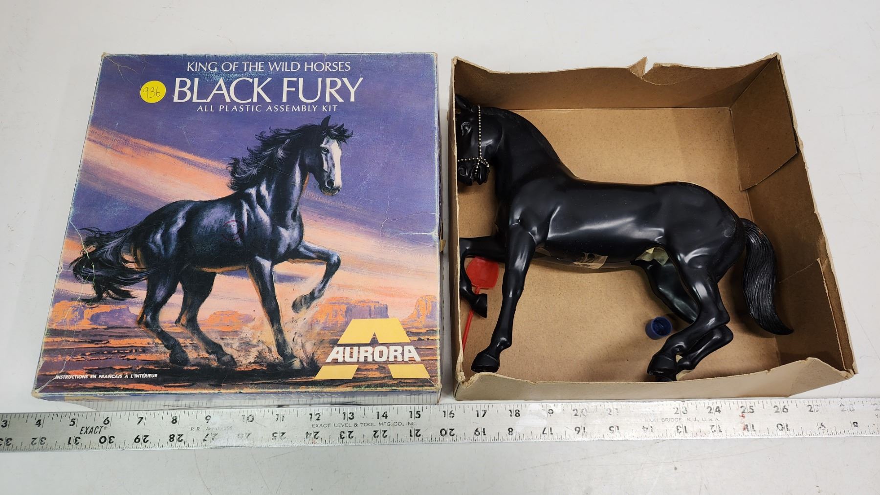 Vintage "Black Fury" plastic model horse kit - assembled, in original box