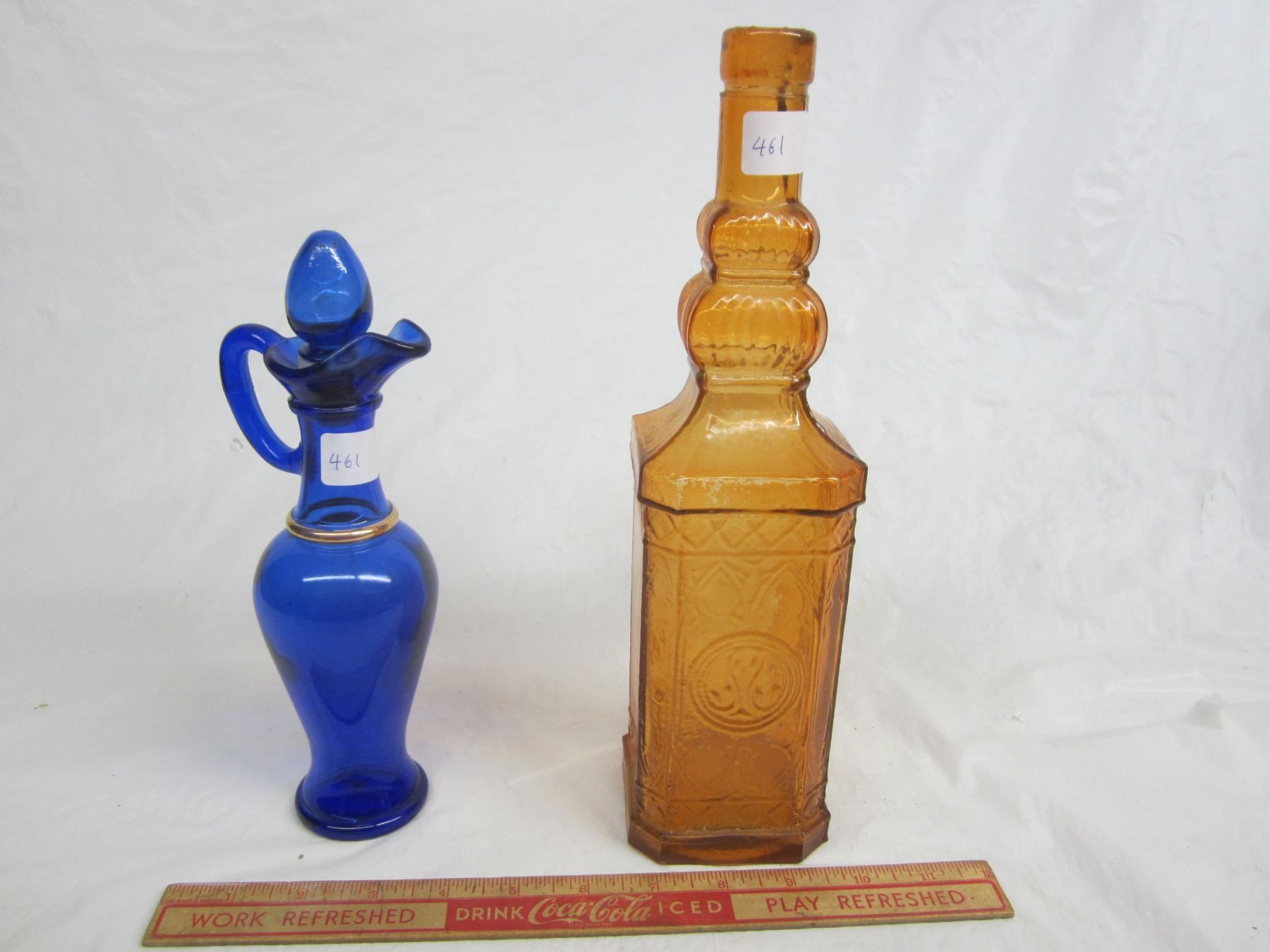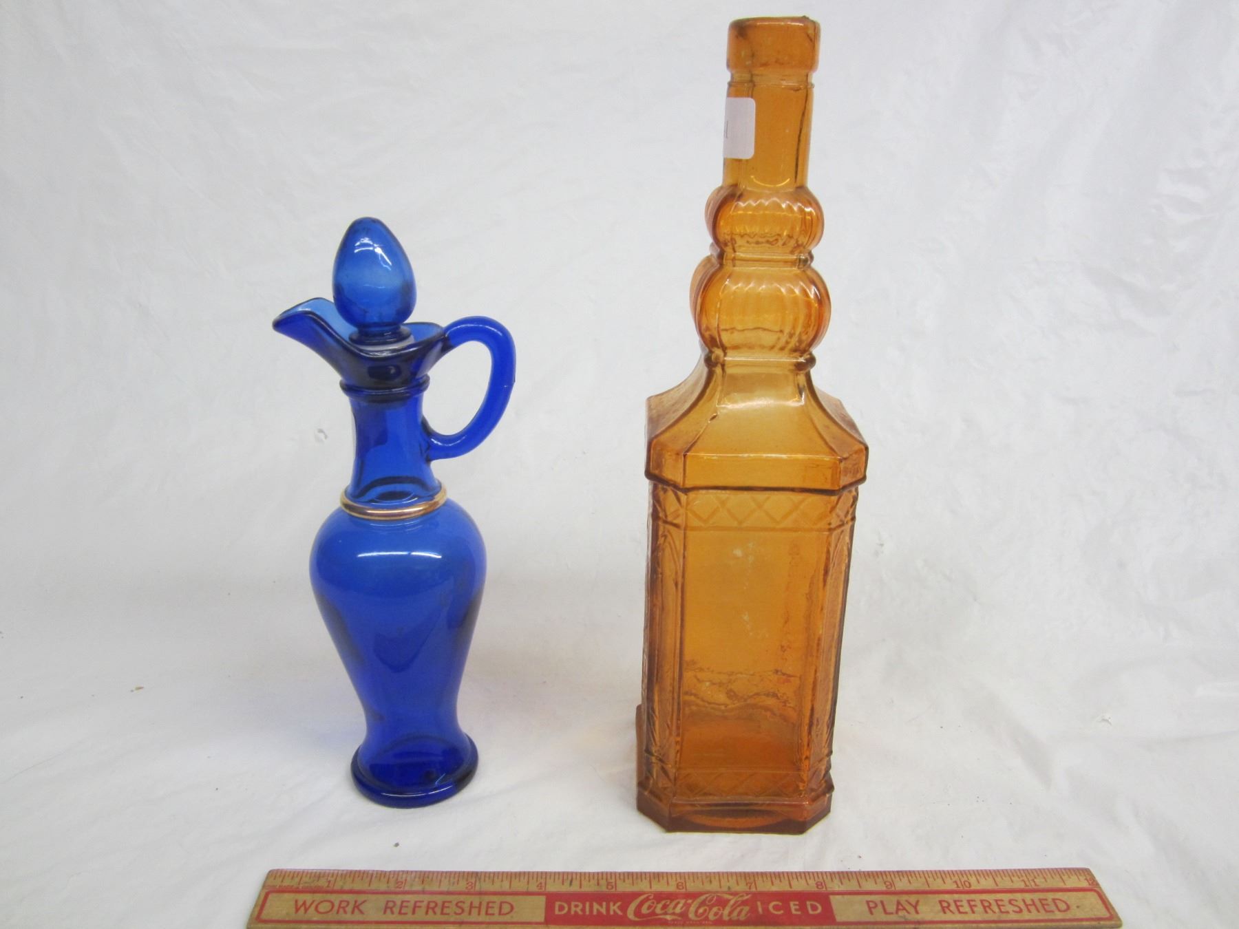 Vintage Blue Vinegar Cruet and Orange colored bottle