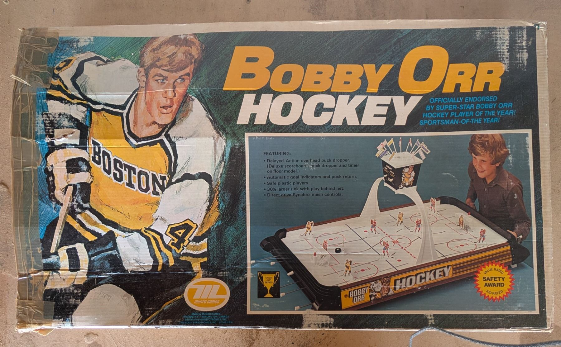 Vintage Bobby Orr Hockey Gold Cup Series Hockey Table w/ Original Box and Players and Etc. Parts