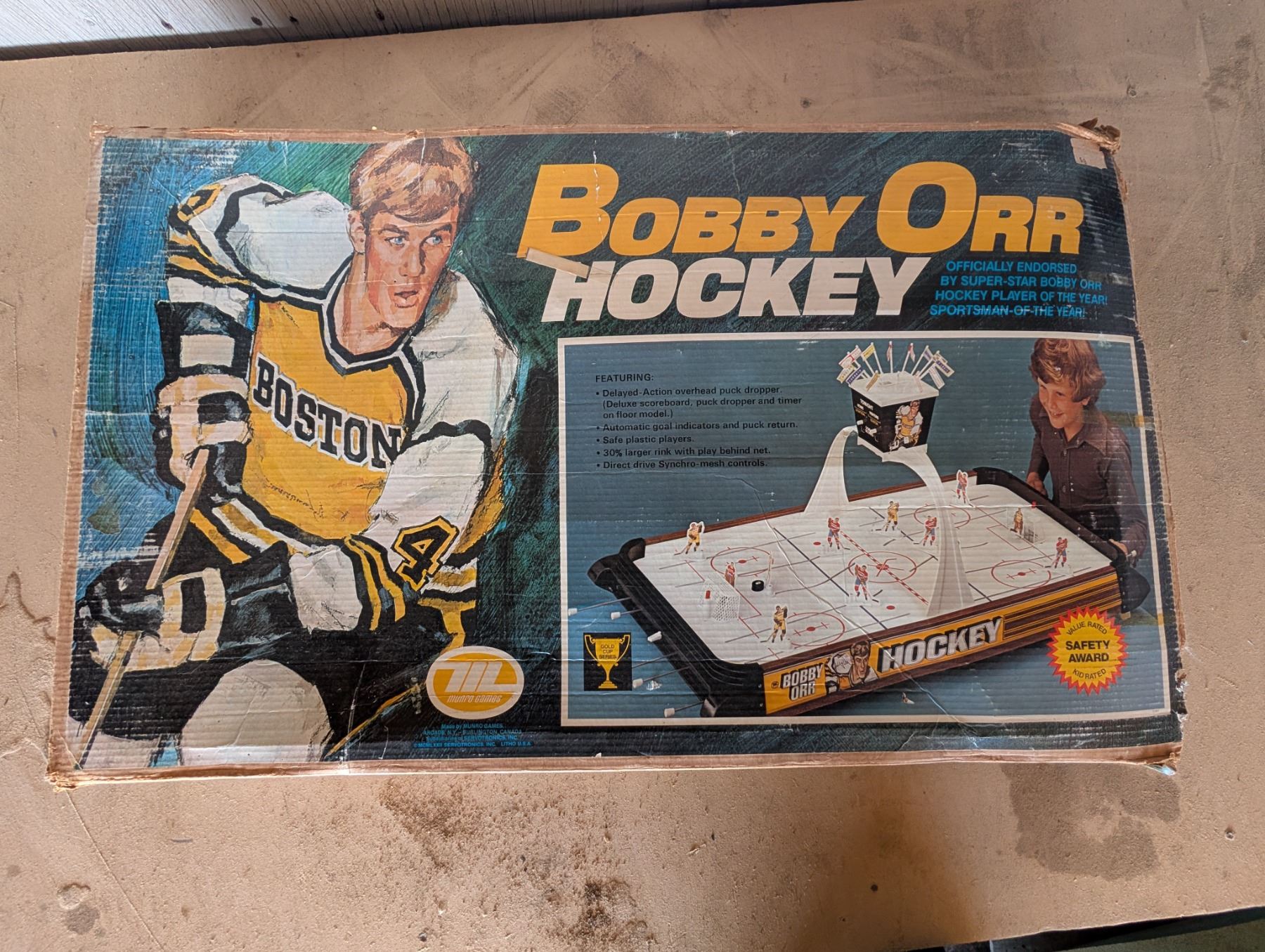 Vintage Bobby Orr Hockey Gold Cup Series Hockey Table w/ Original Box and Players and Etc. Parts