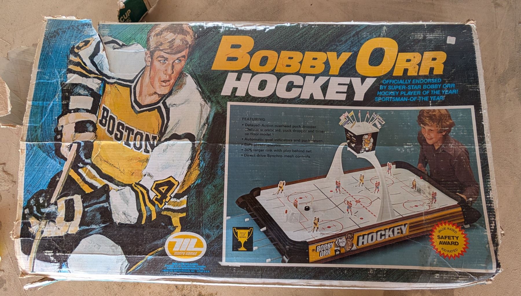 Vintage Bobby Orr Hockey Gold Cup Series Hockey Table w/ Original Box and Players and Etc. Parts