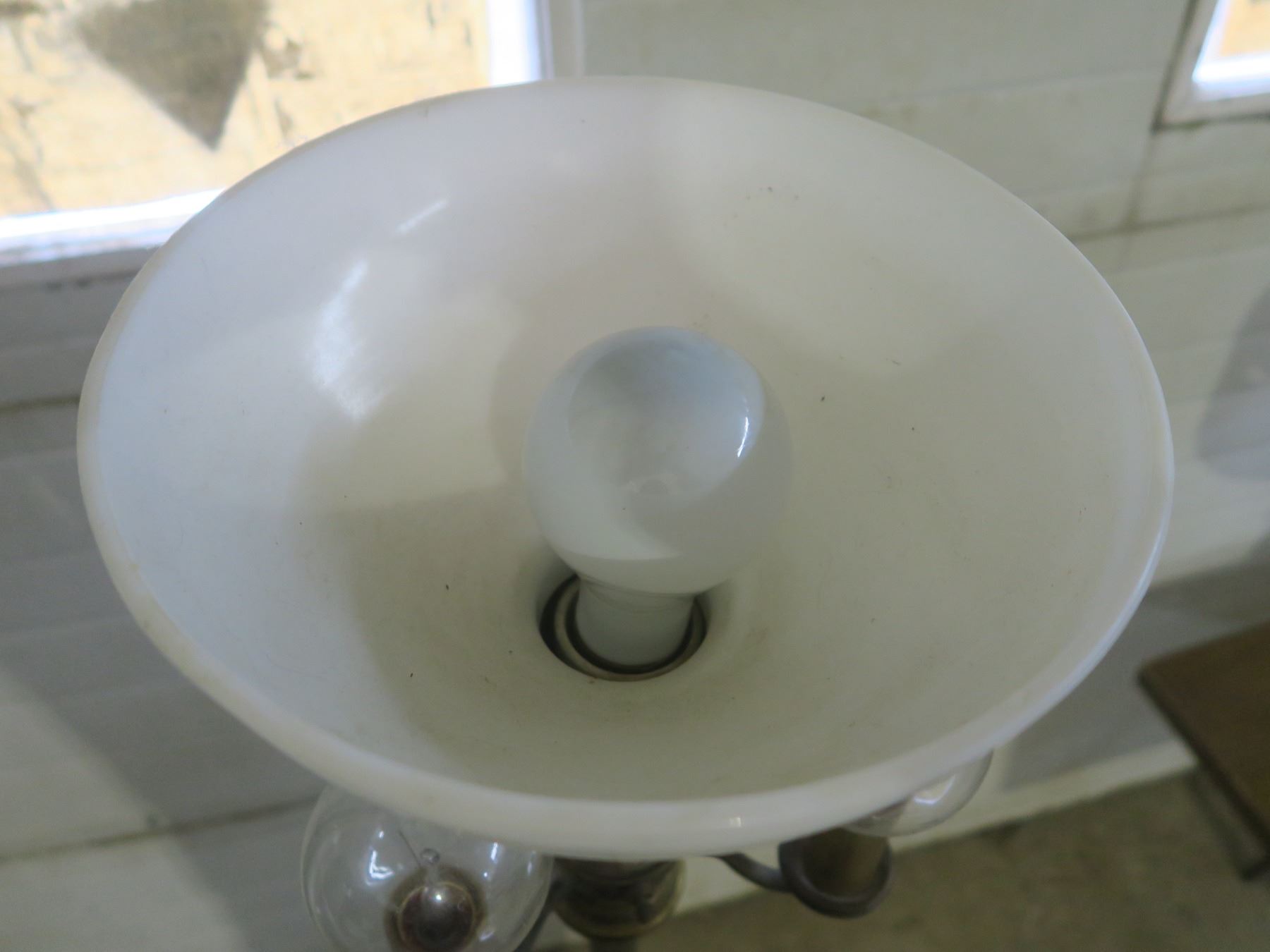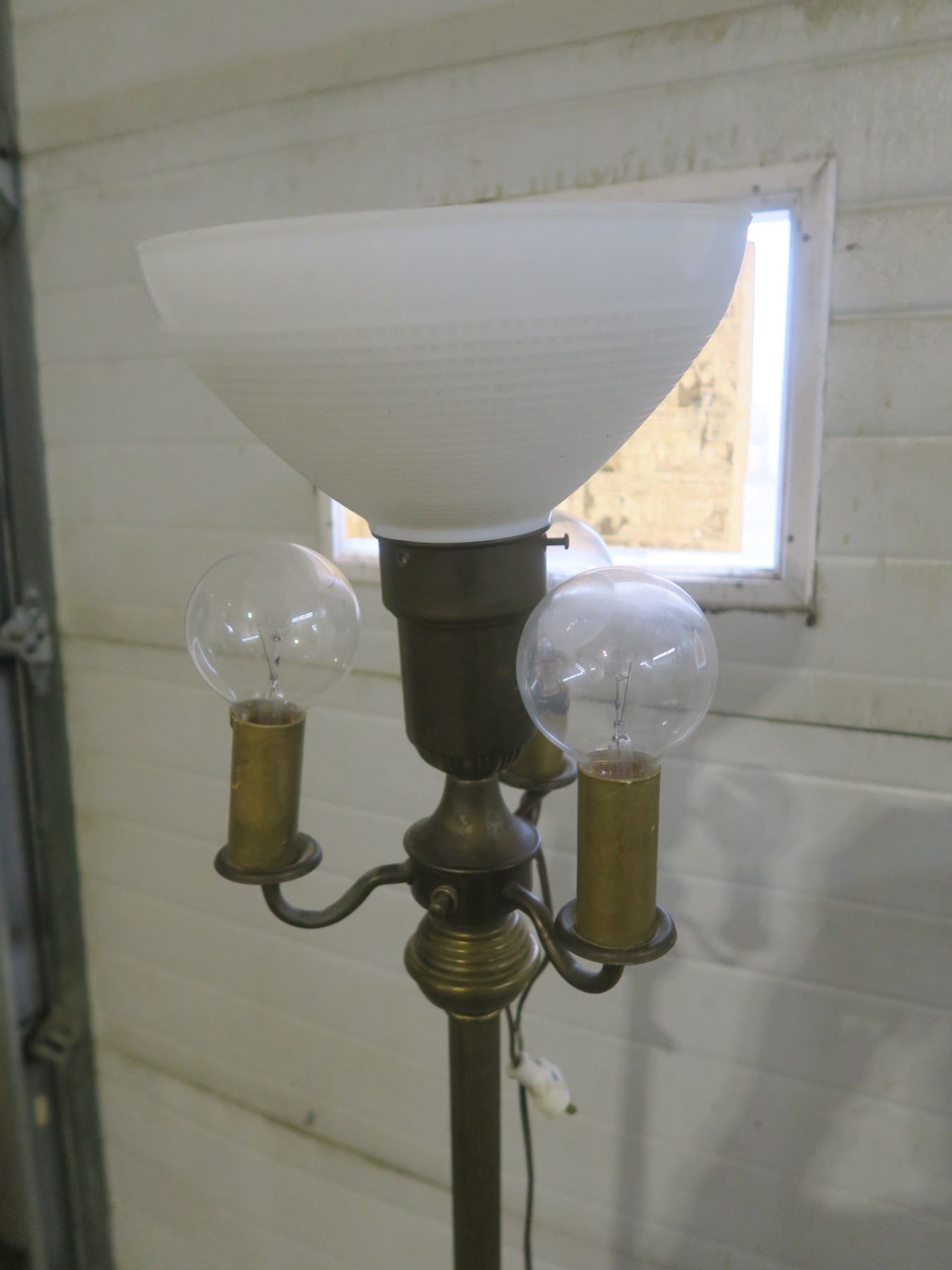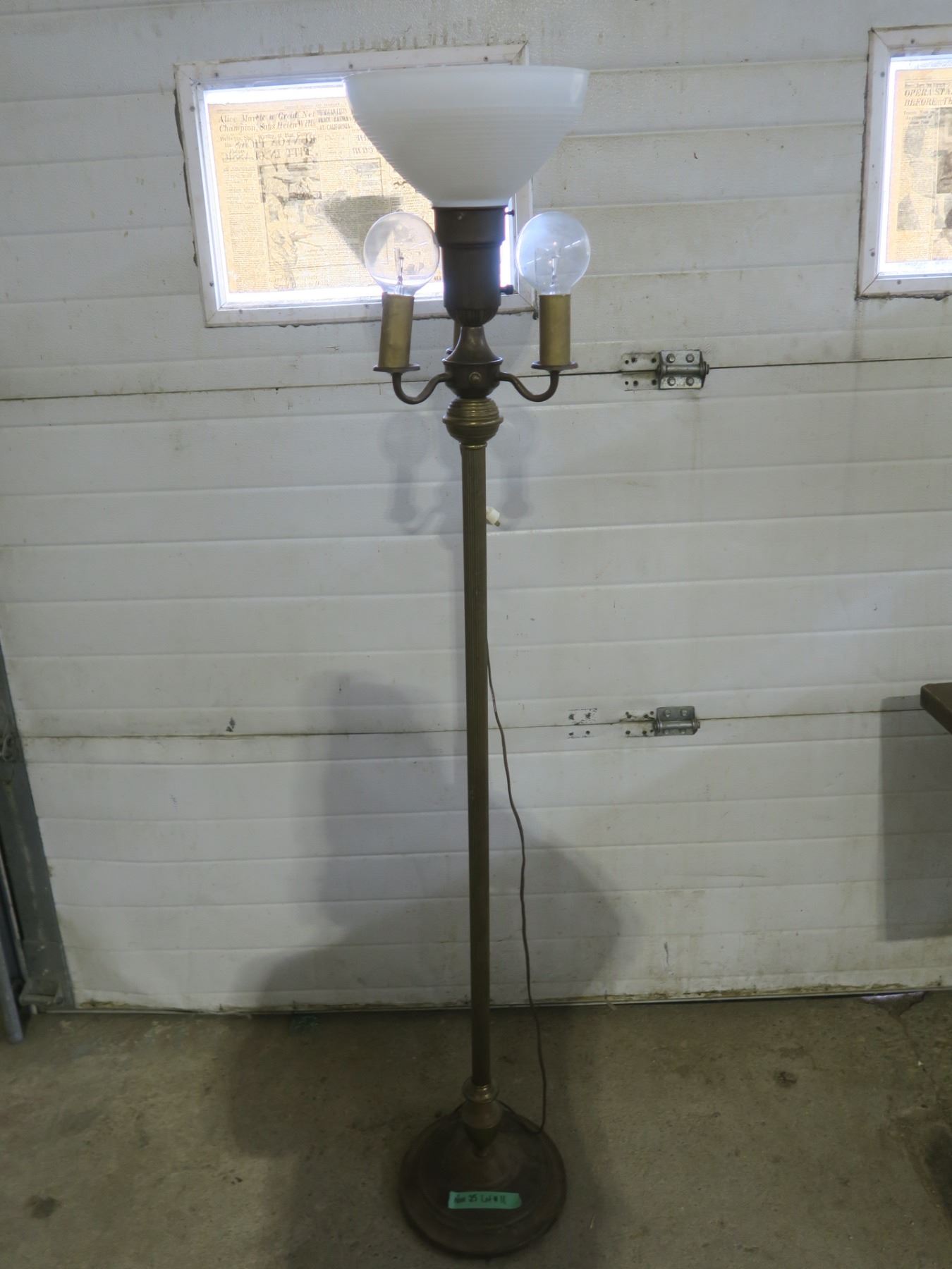Vintage Brass Floor Lamp with Milk Glass Shade – 62 inches tall