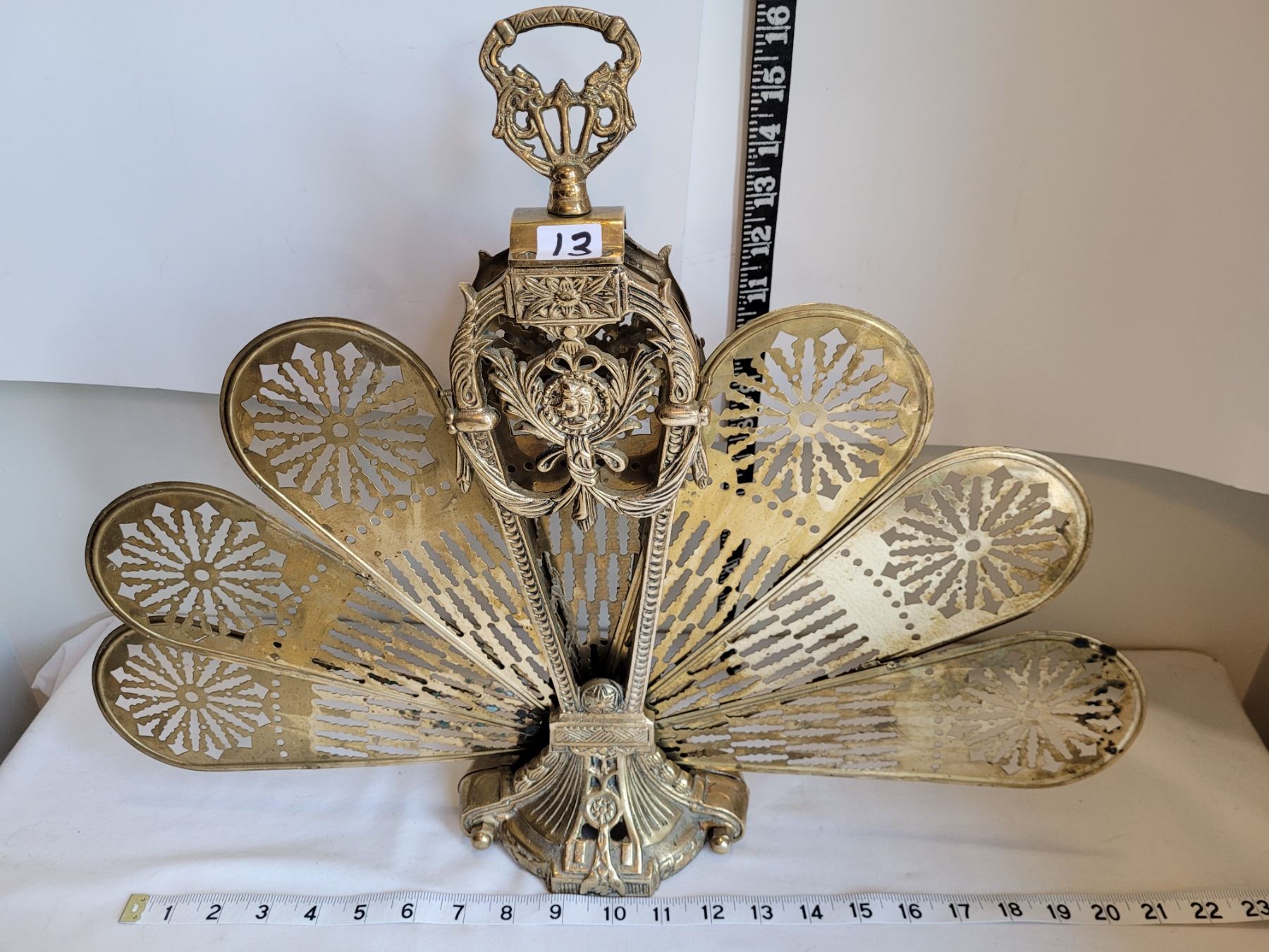 Vintage Brass Peacock fan fireplace screen.