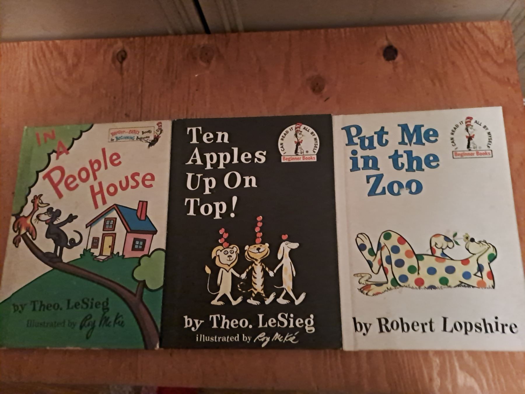 Vintage Bright and Early Books, In A People House,1972, and Ten Apples Up On Top, 1961, by Theo. LeSieg, and Put Me in the Zoo, by Robert Lopshire, 1980