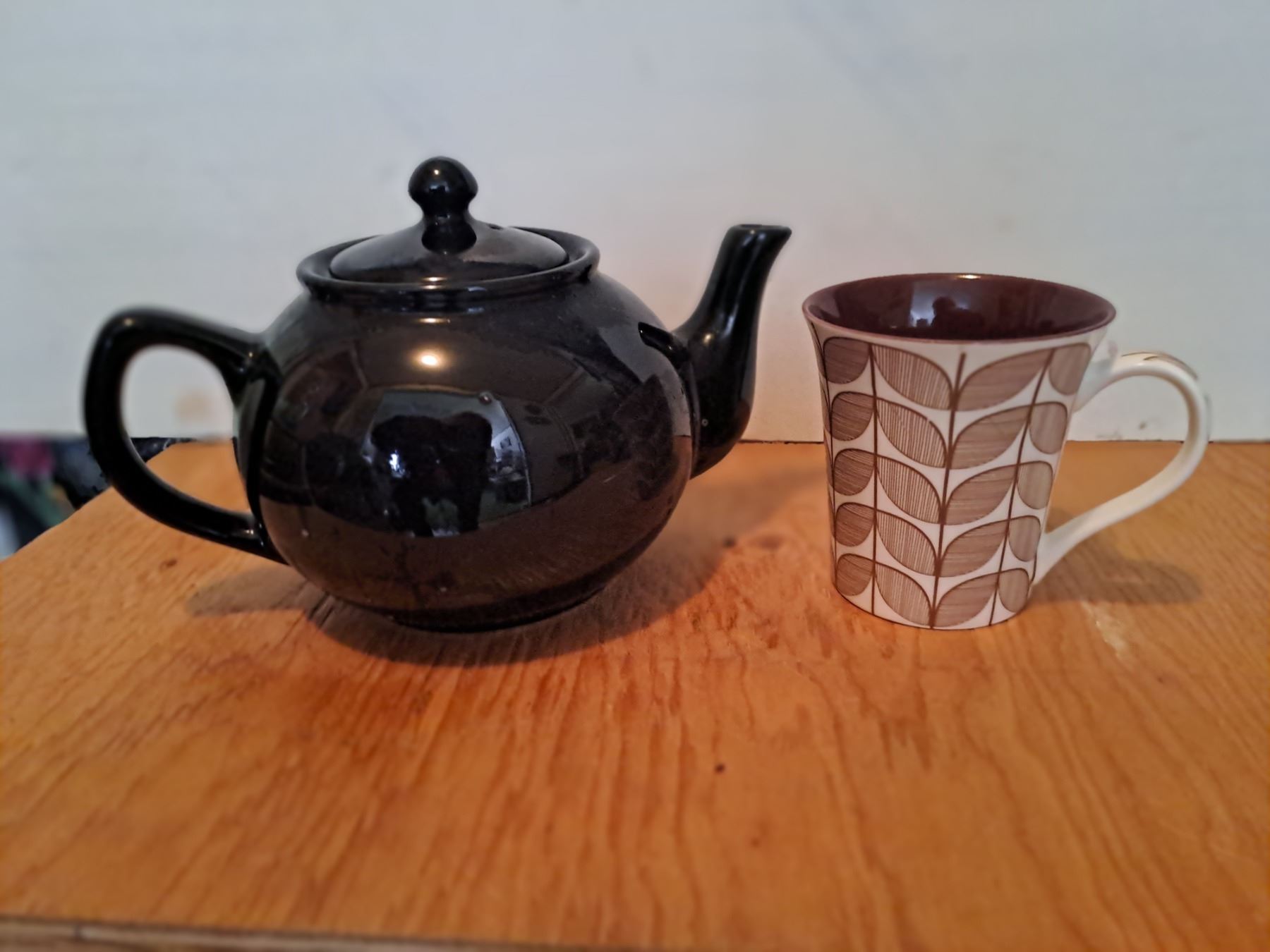 Vintage Brown Ceramic Tea Pot and Godiva Chocolate Belgium Est Coffee Mug