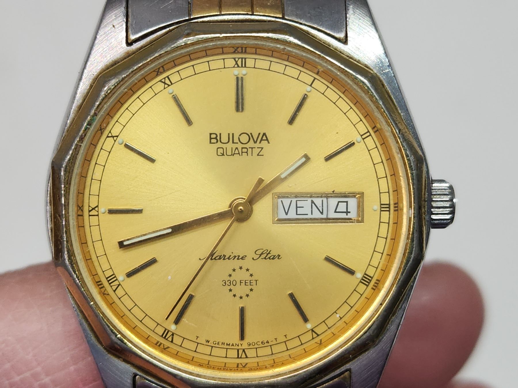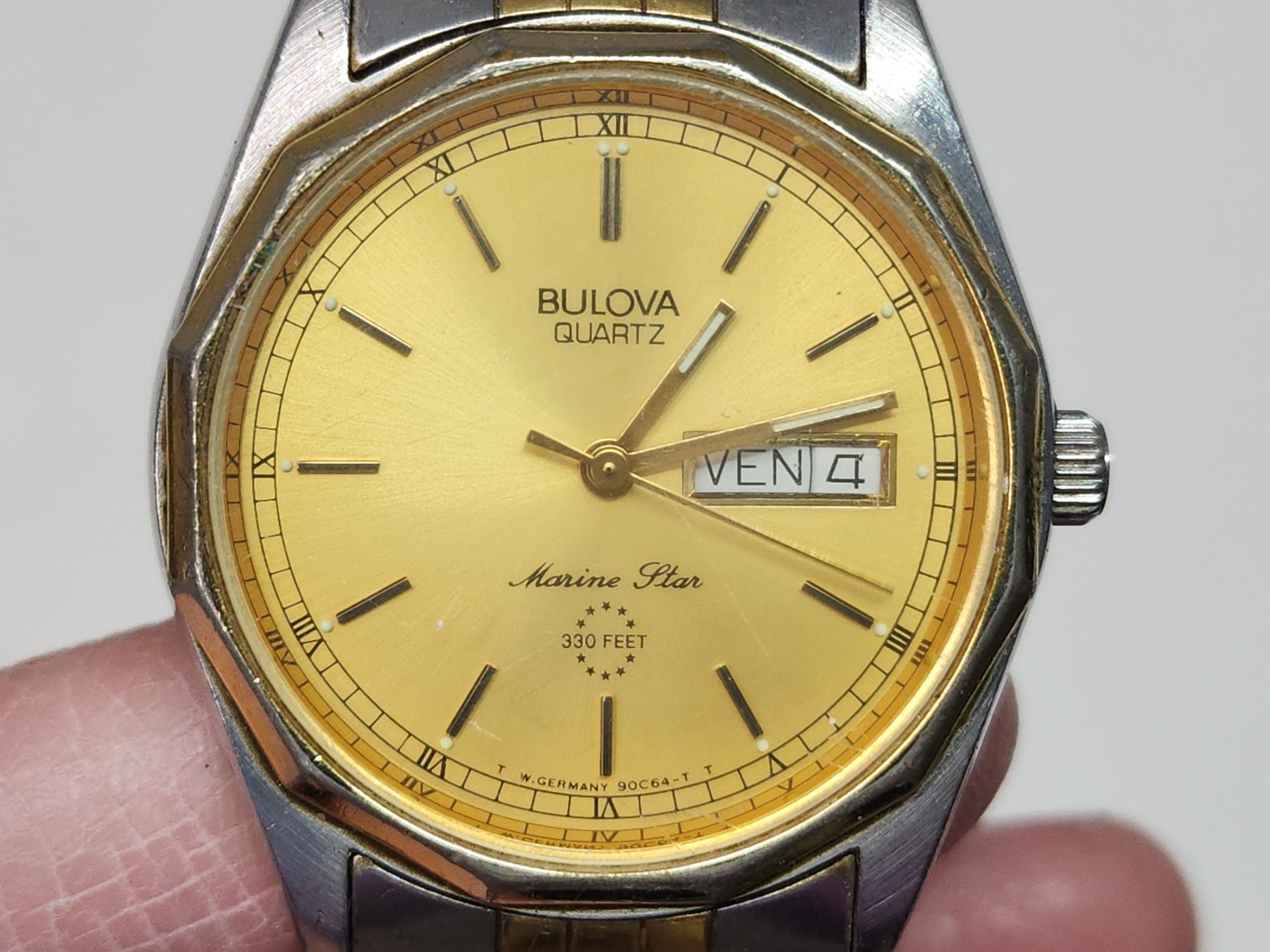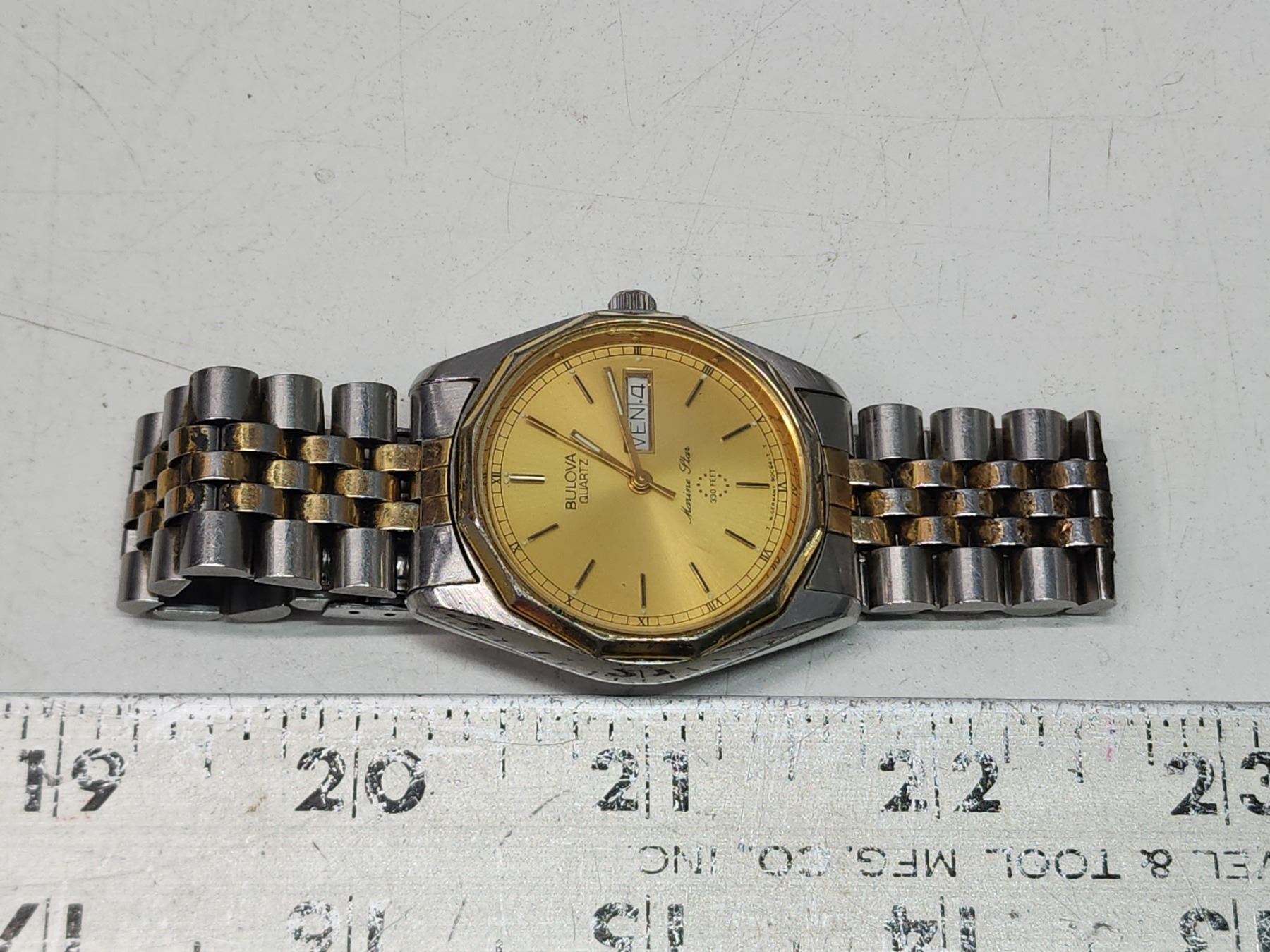 Vintage "Bulova" Marine Star, quartz wrist watch. Day/date, new battery - runs
