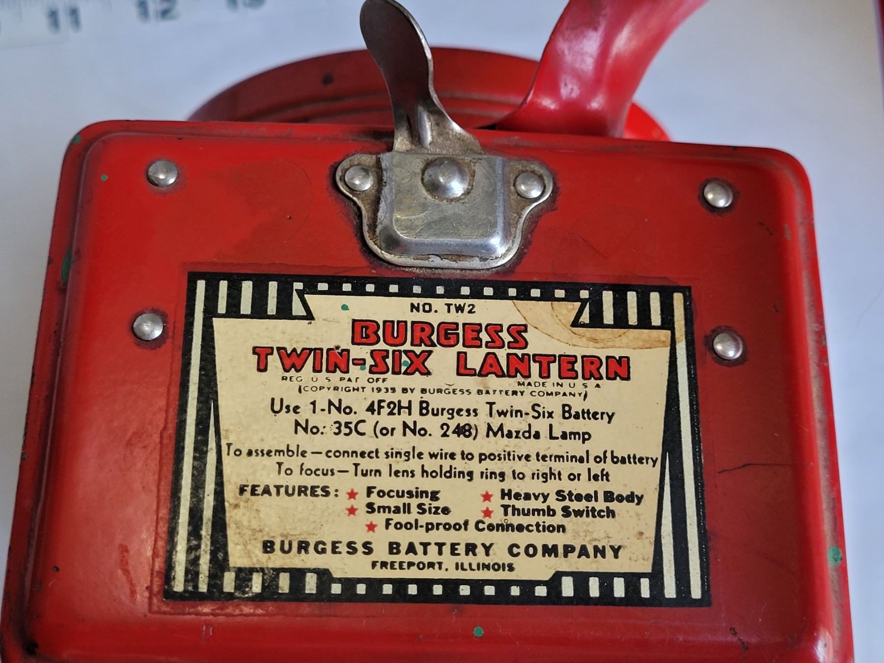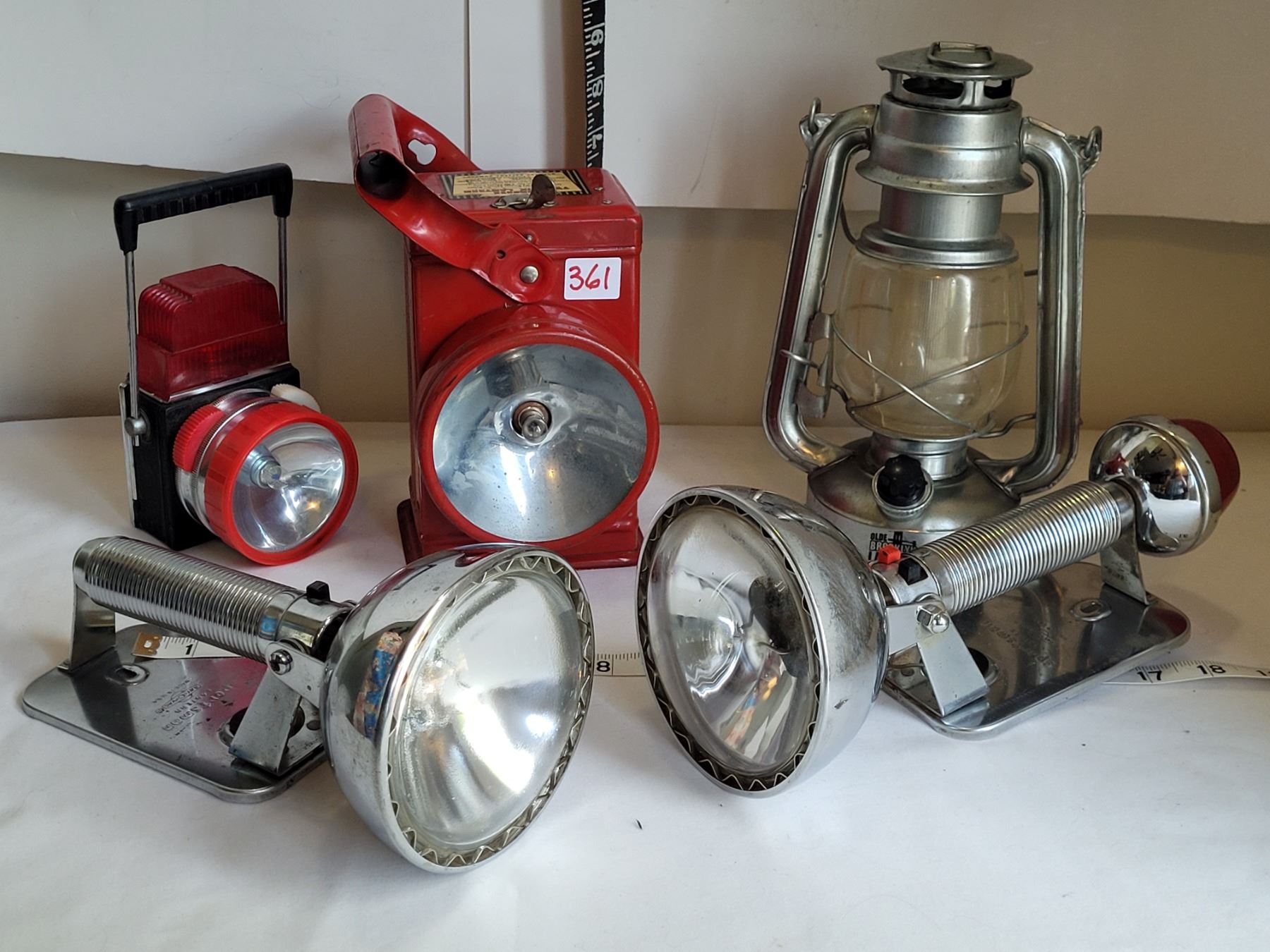 Vintage Burgess twin-six lantern & other battery lamps, including Sportsman Ray-O-Vac.