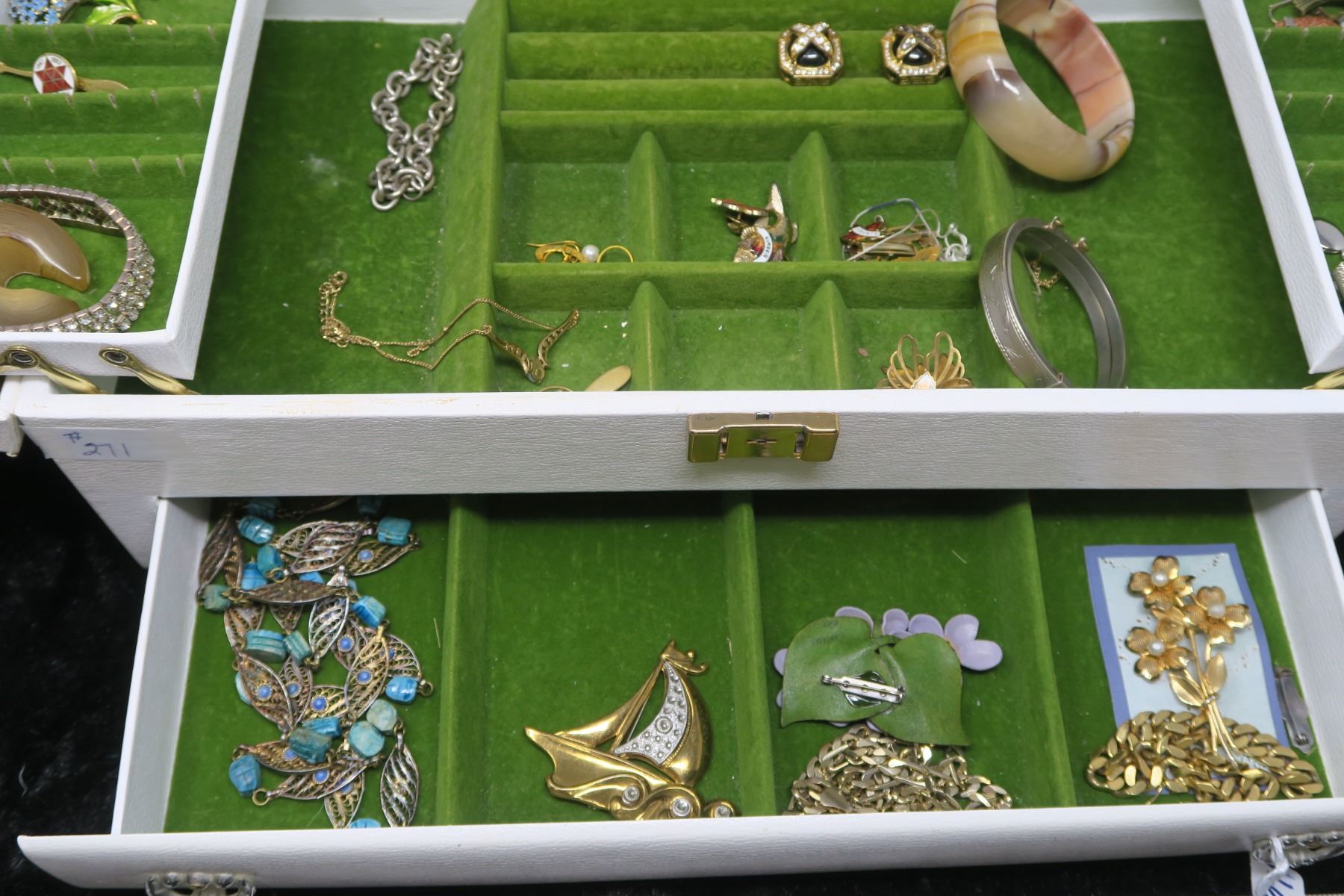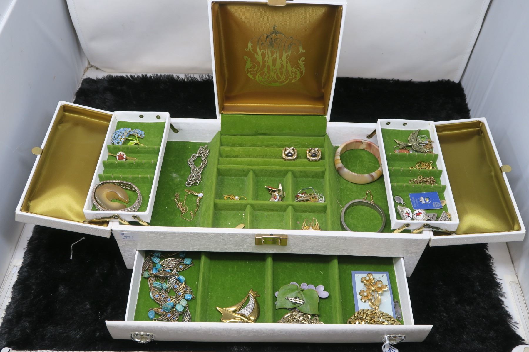 Vintage Buxton jewellery box and contents
