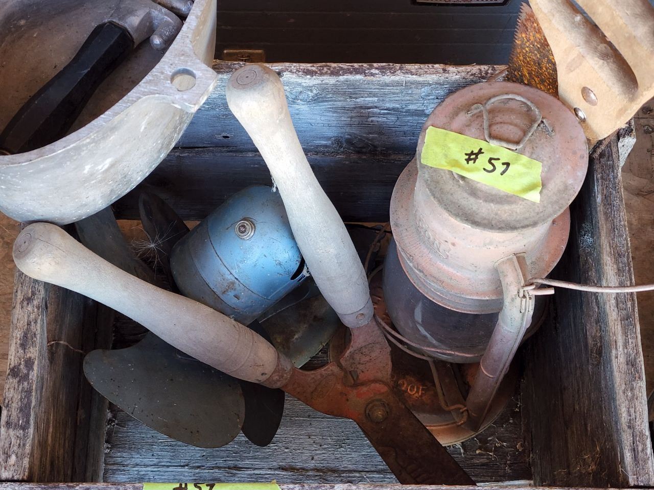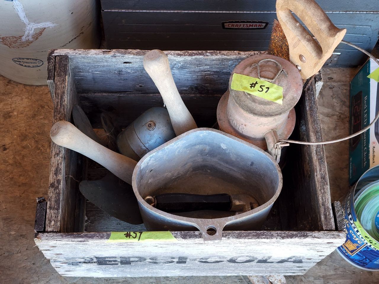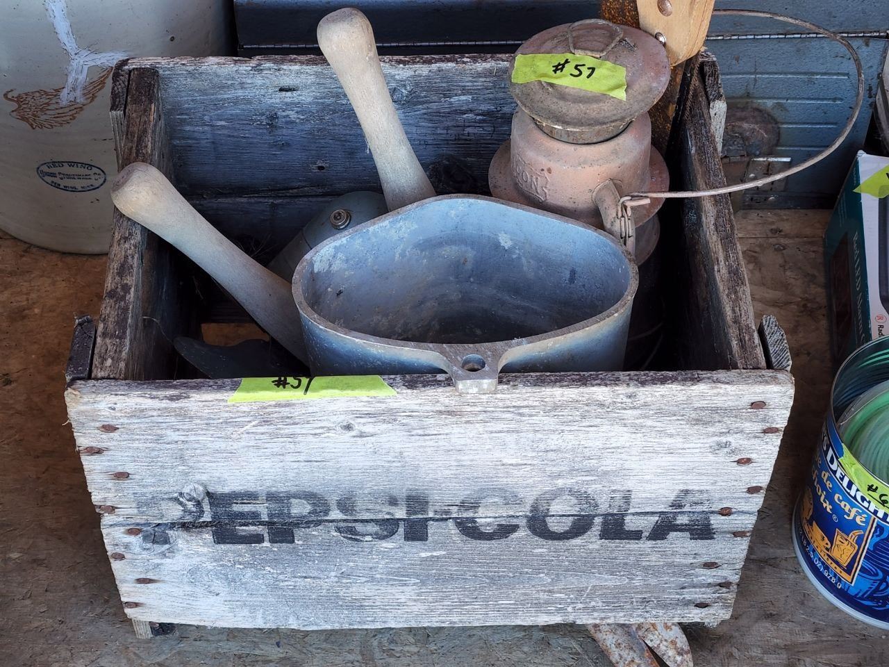 Vintage Camping Supplies, Fan, Tools and Pepsi Box