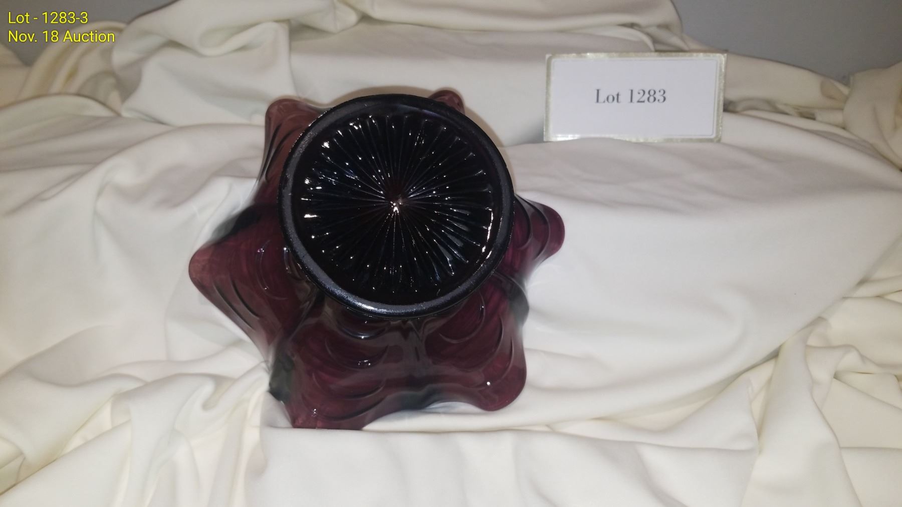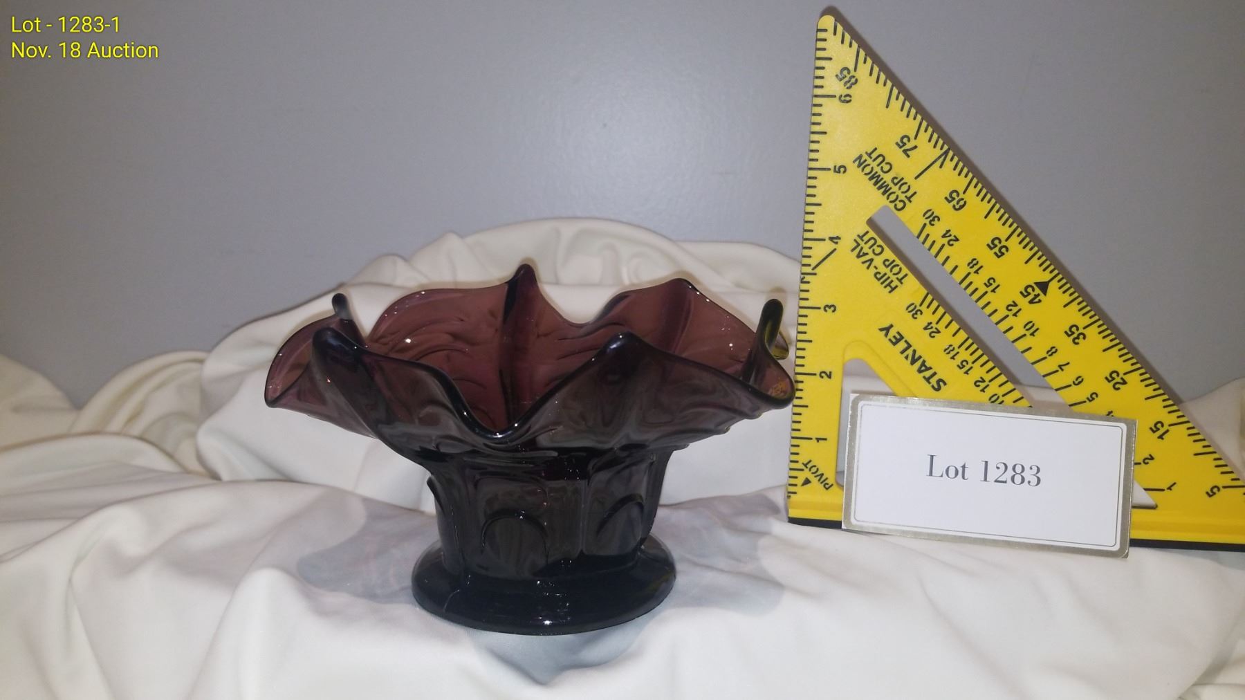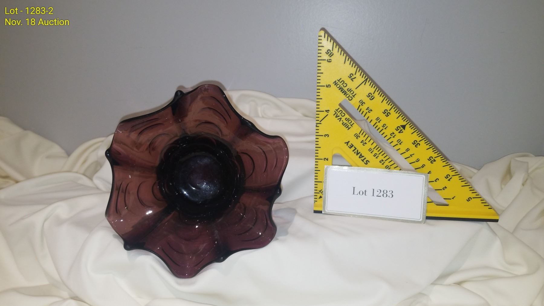 Vintage Candy Dish Purple Glass 3-1/2" high x 6" round.