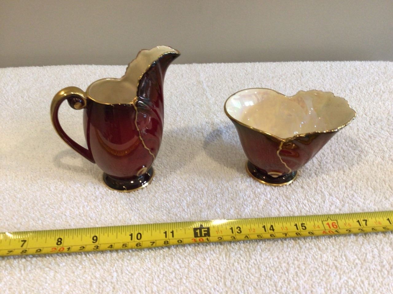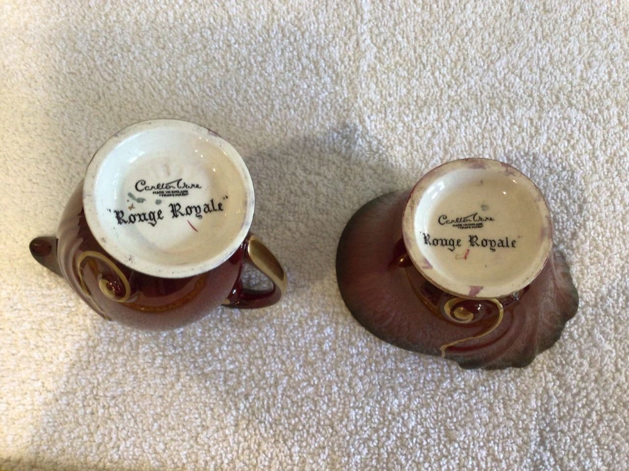 Vintage Carlton Ware Rouge Royale crean & sugar ste. England, handpainted. EXC condition