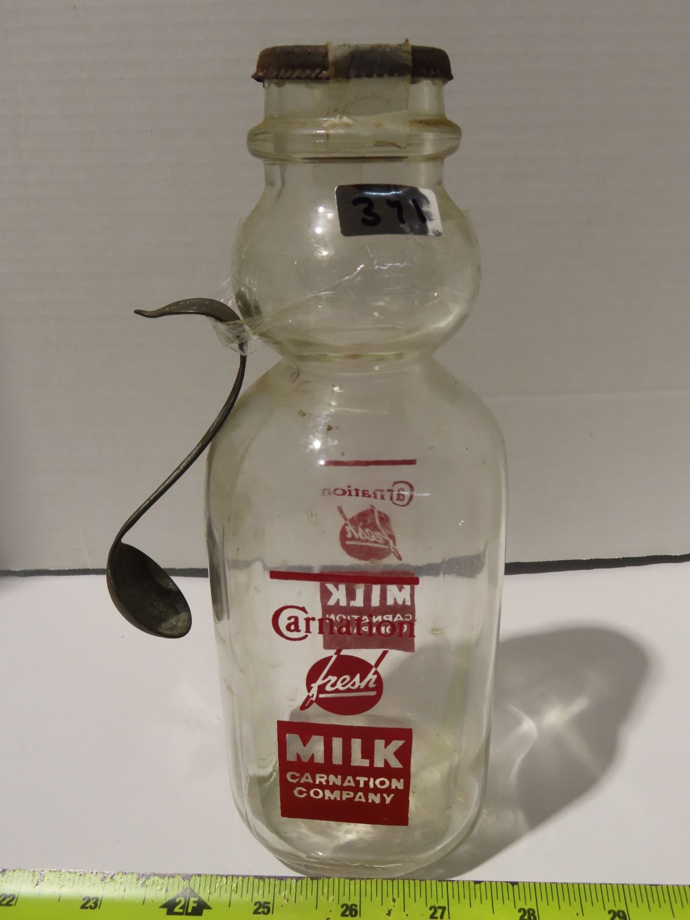 Vintage Carnation Diary Cream top Milk bottle metal top with cream top spoon