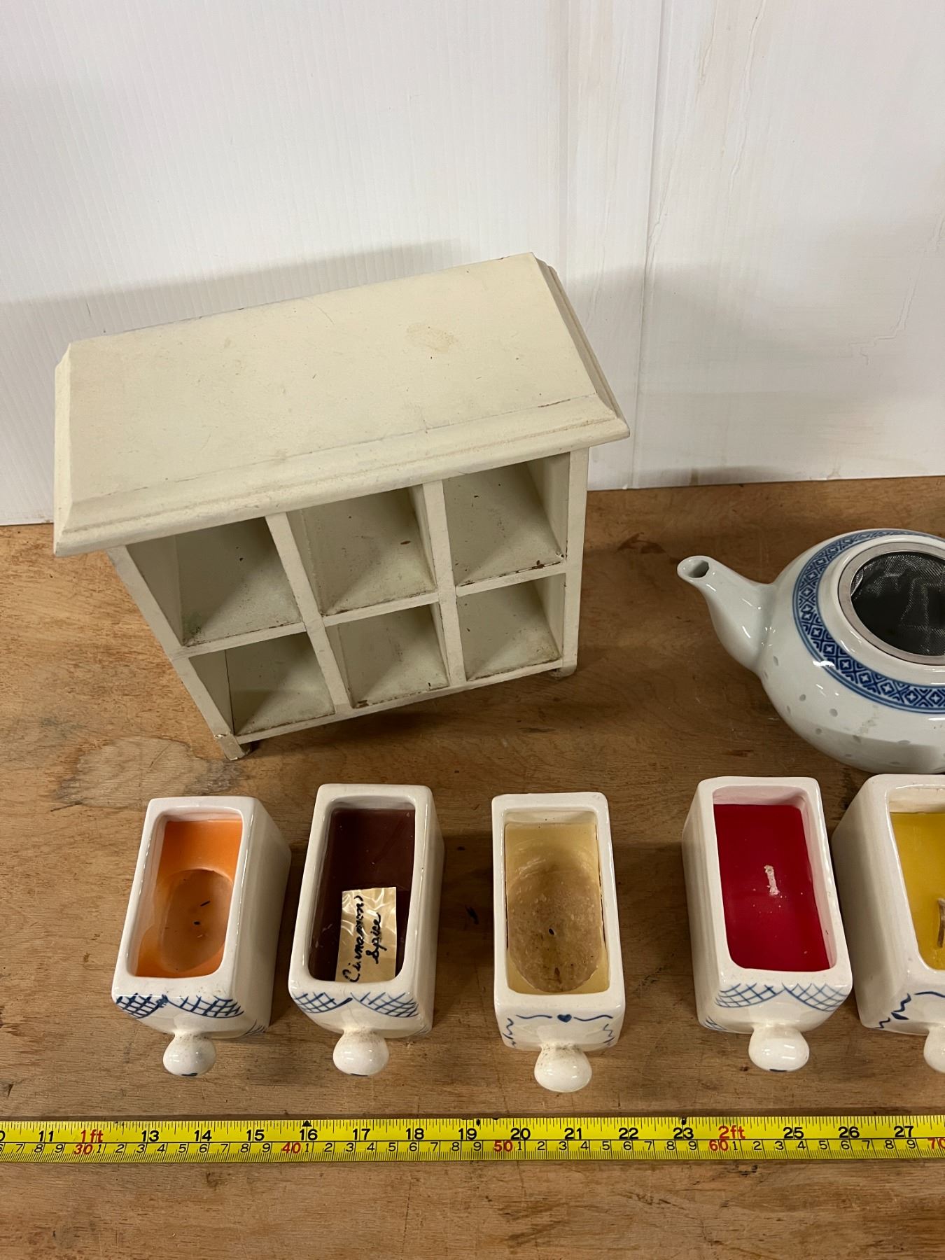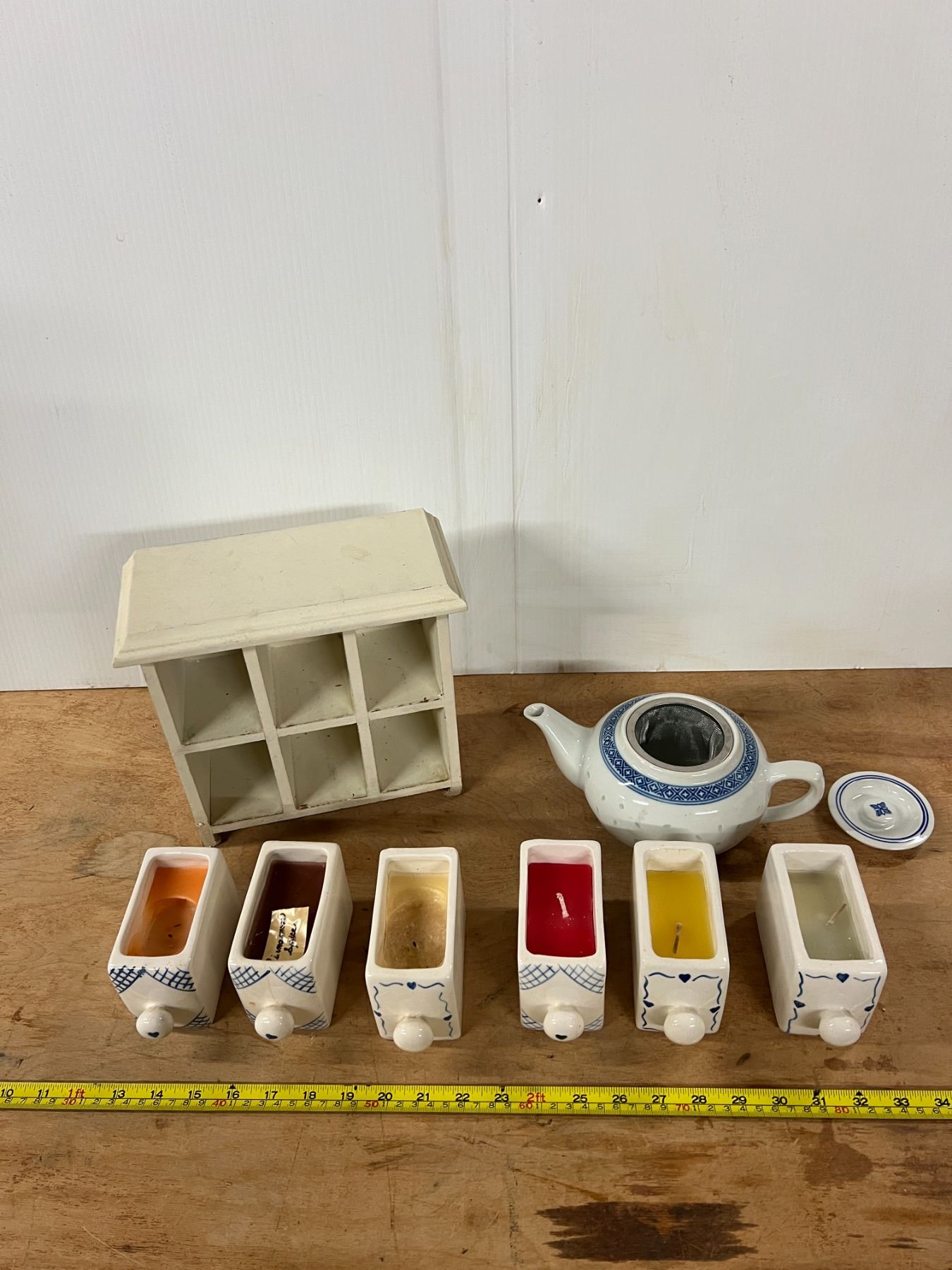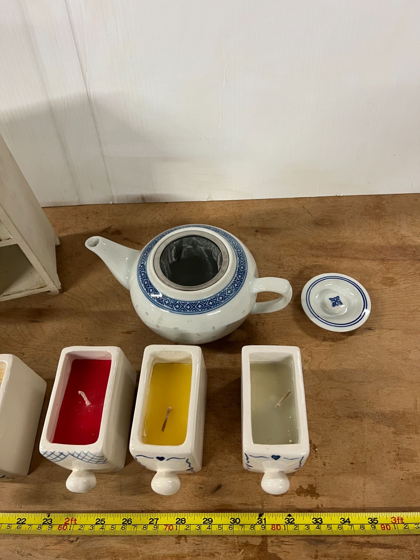 Vintage Ceramic Candle Holders and Porcelain Teapot