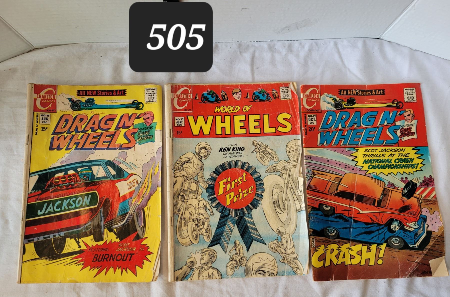 Vintage Charlton comics. Drag n Wheels & World of Wheels.