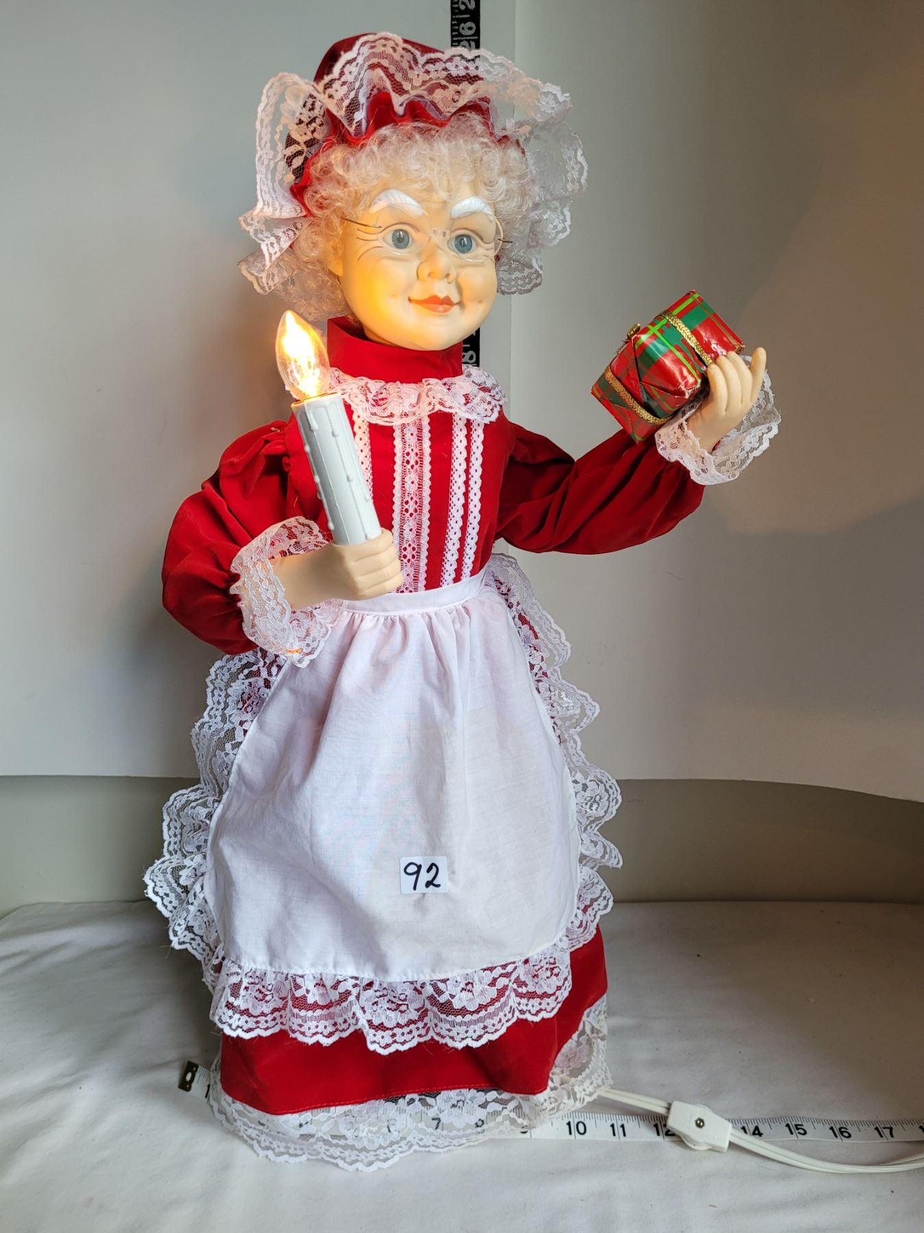 Vintage Christmas musical Grandma. Lighted candle, moving head & arms, 23” high. Music volume on /off switch, all working.