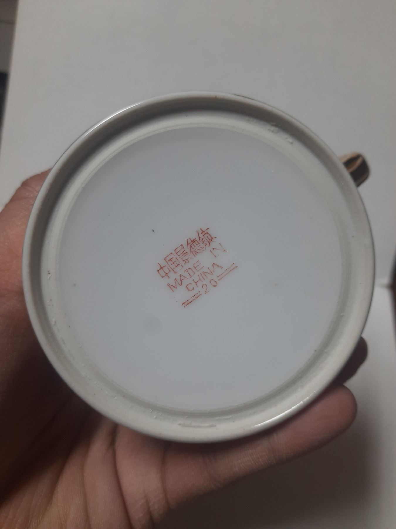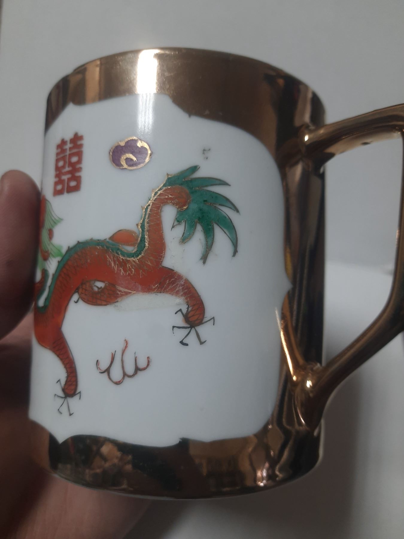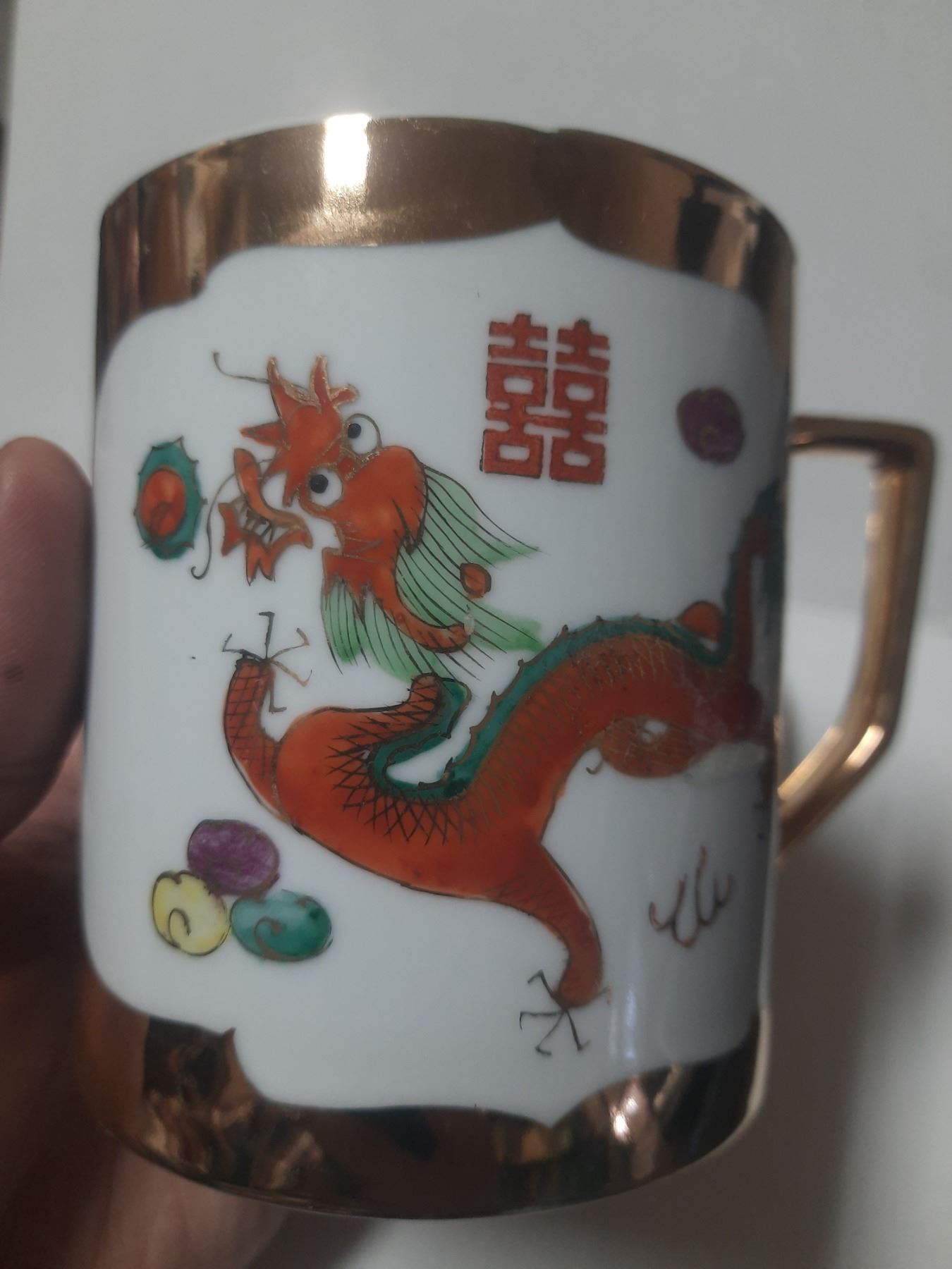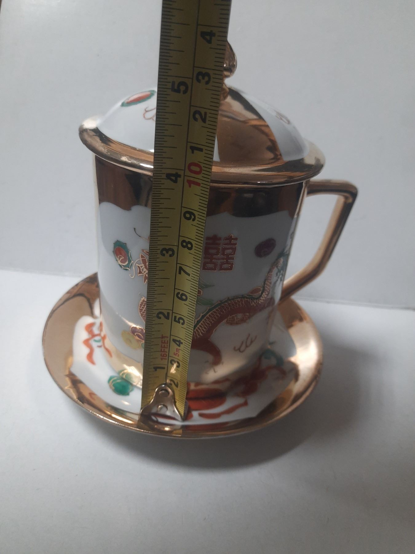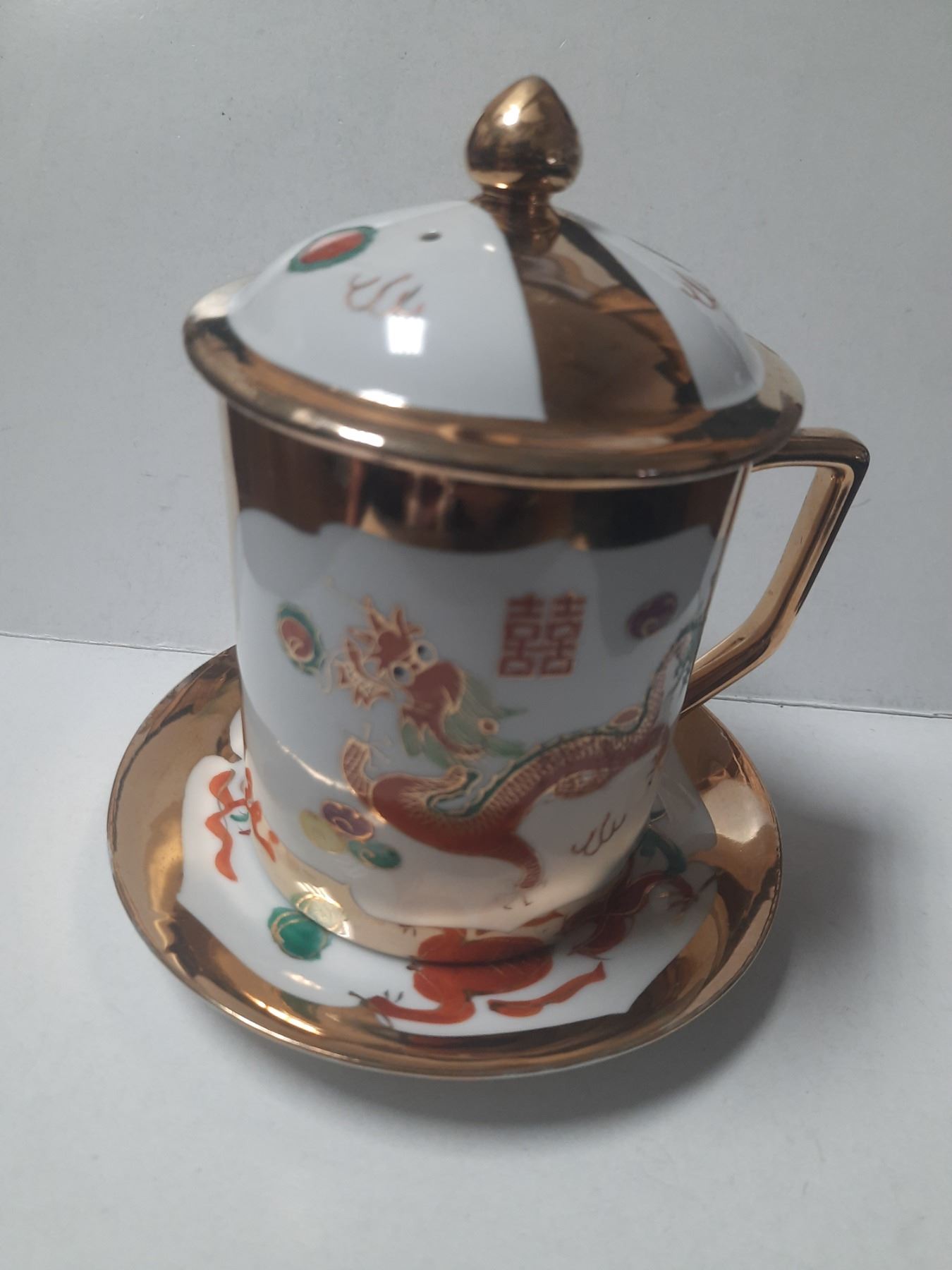 Vintage Chuinese Porcelain Tea Mug with Lid and Saucer.