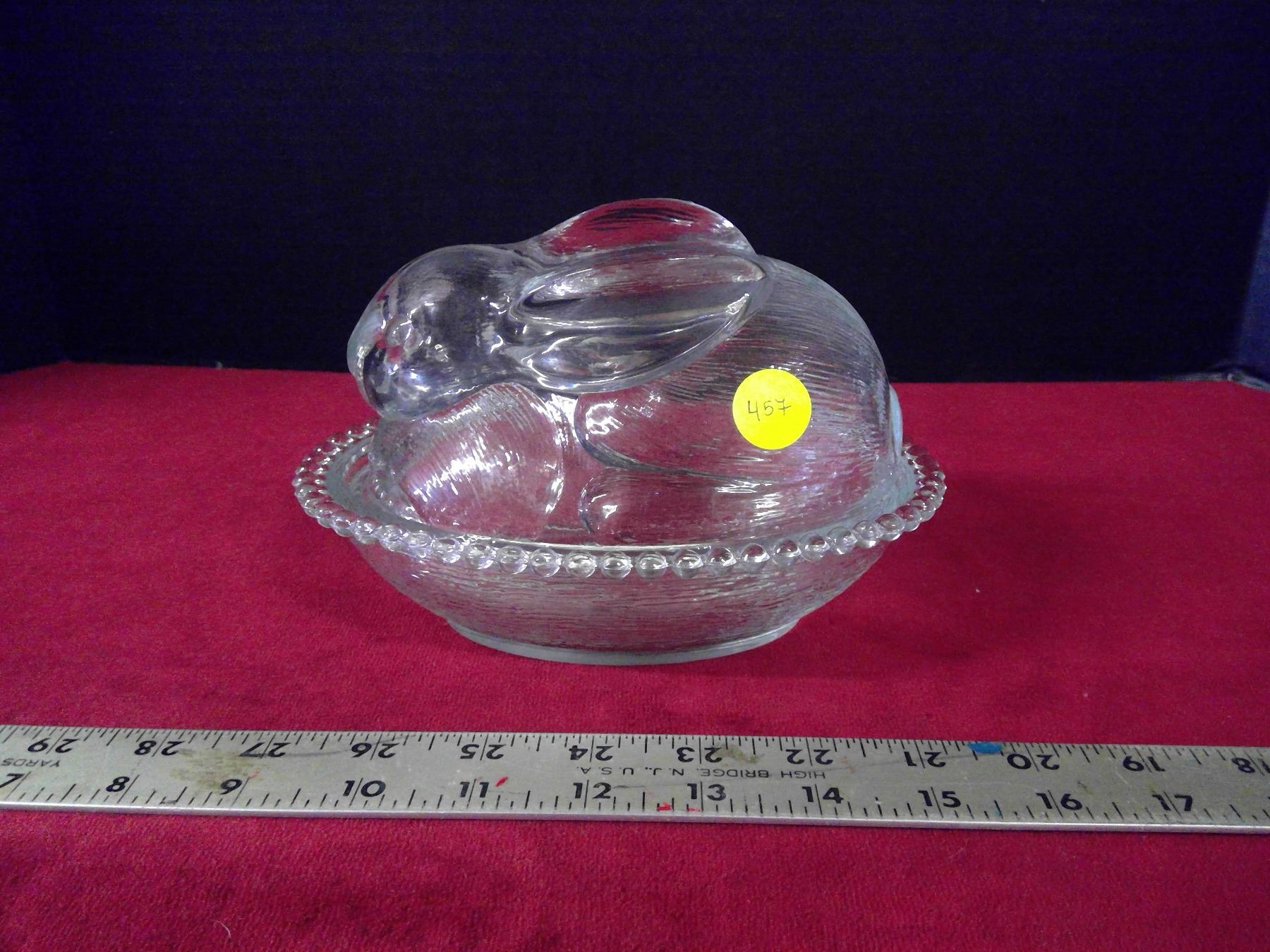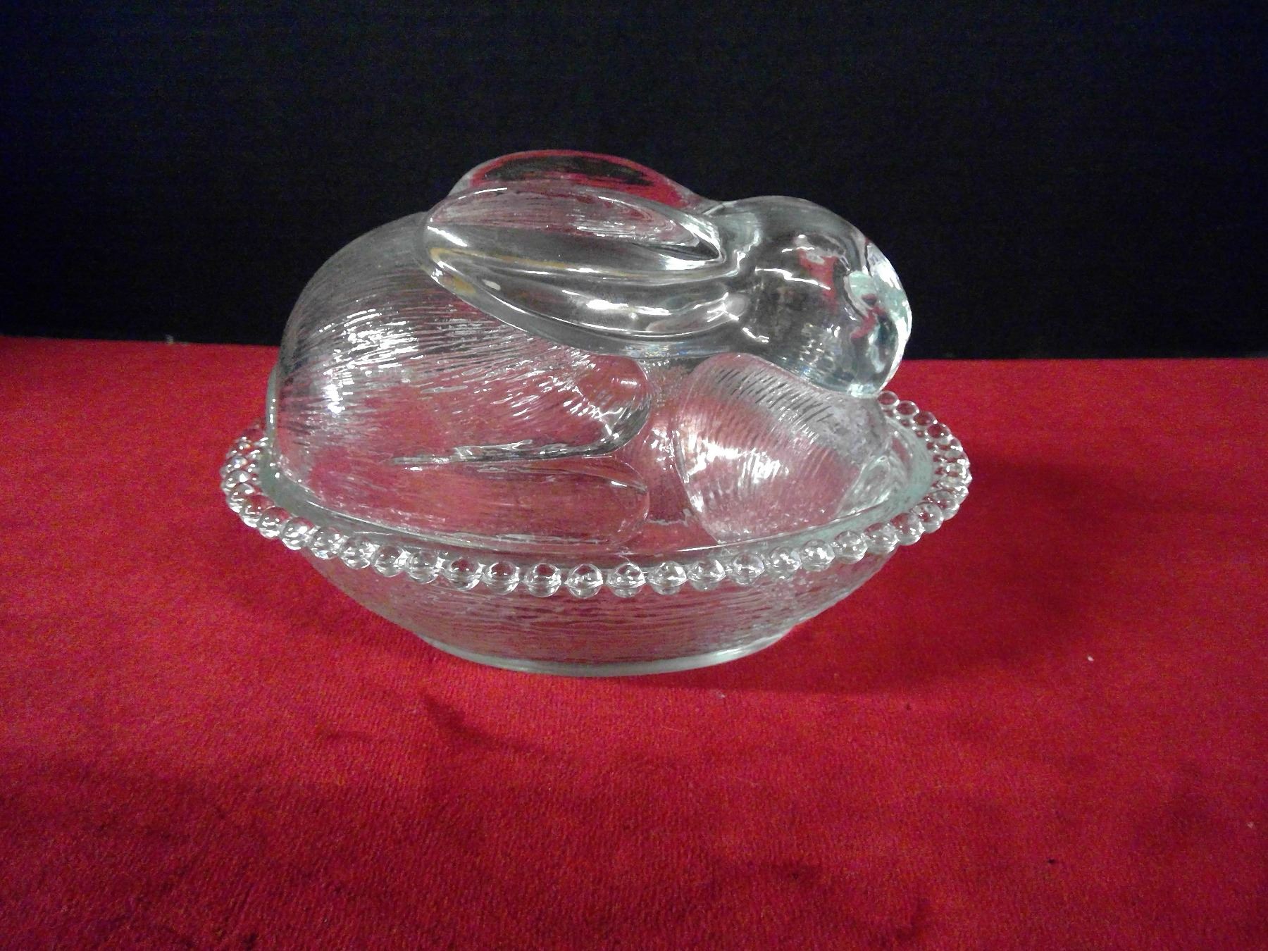 Vintage Clear Glass Bunny Rabbit Egg Dish