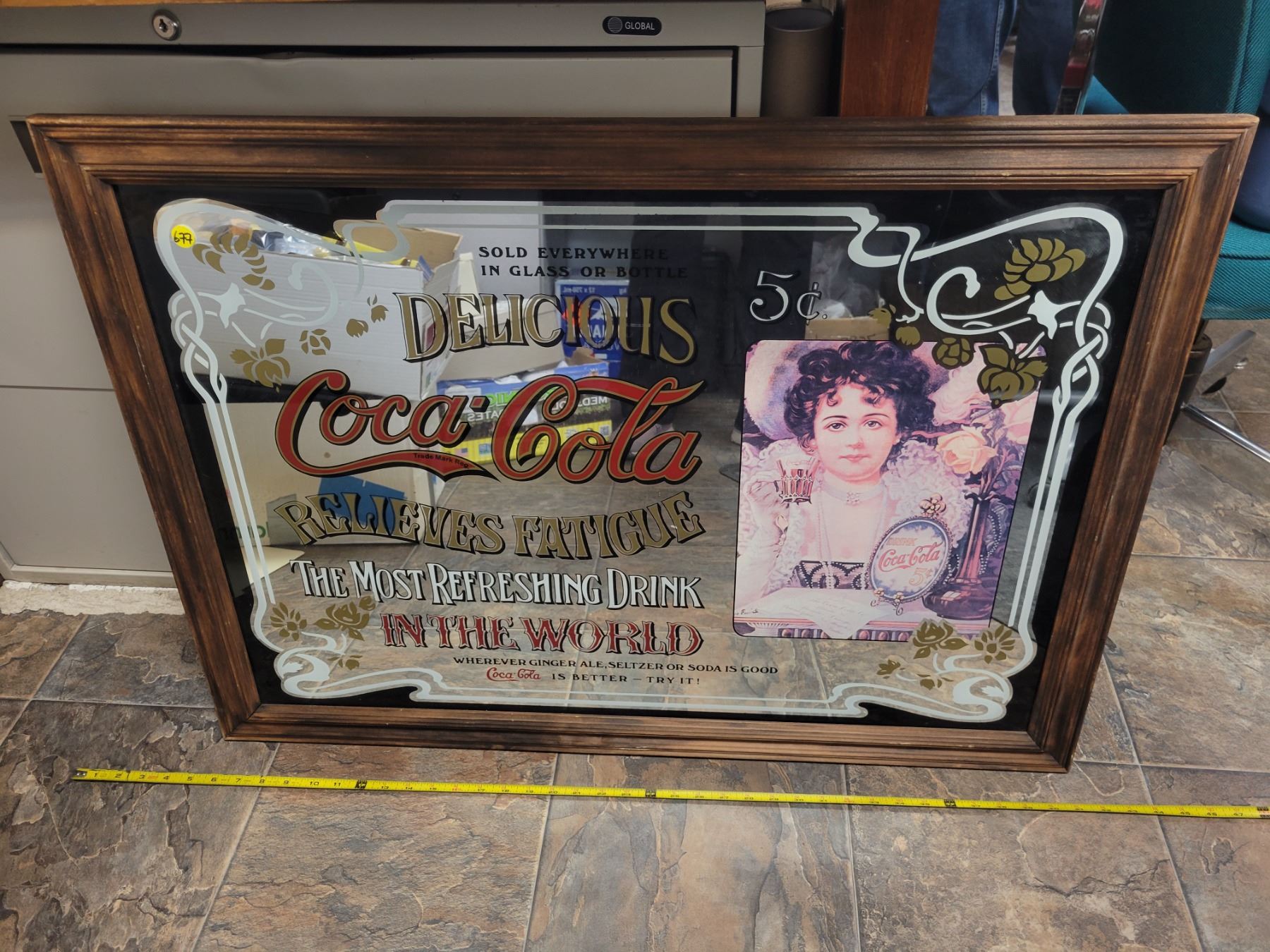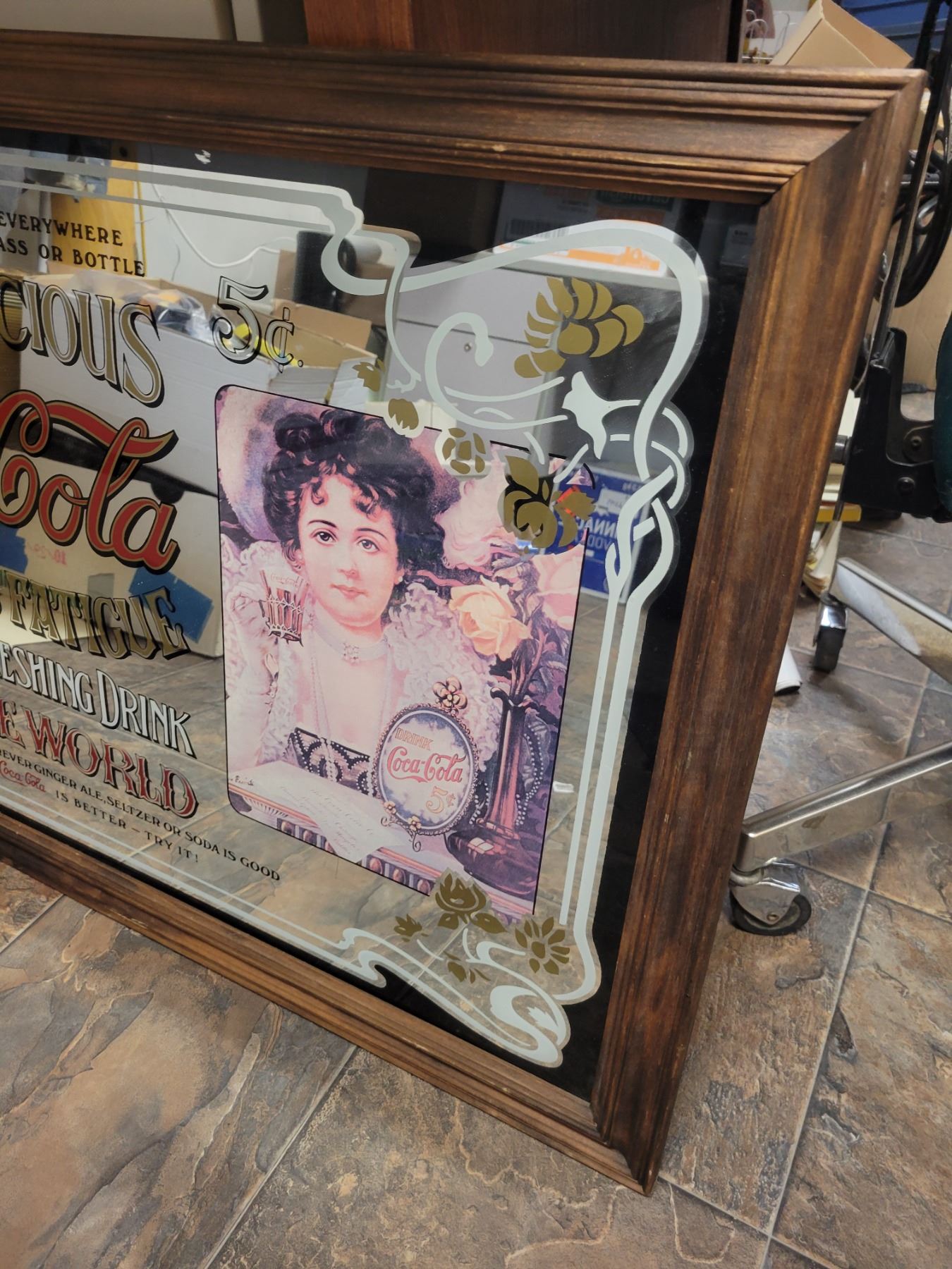 Vintage Coca-Cola sign 35.5" X 25.5", mirrored, wood frame