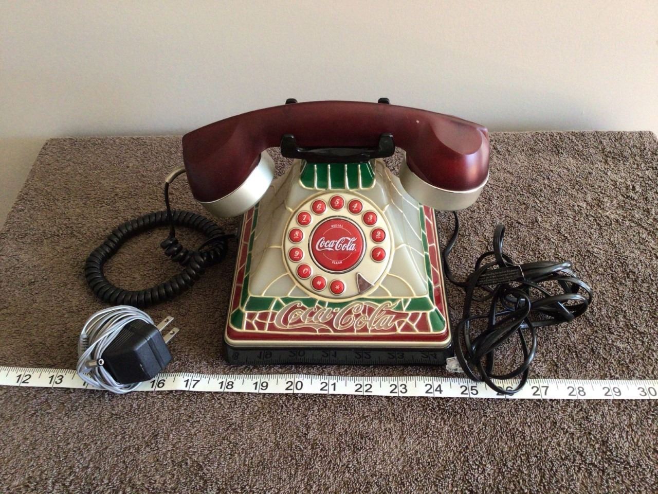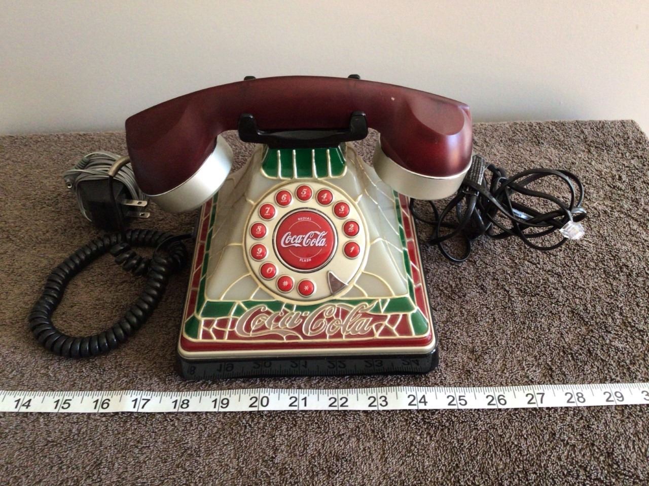 Vintage Coca Cola stained galss look telephone, works - 2 photos
