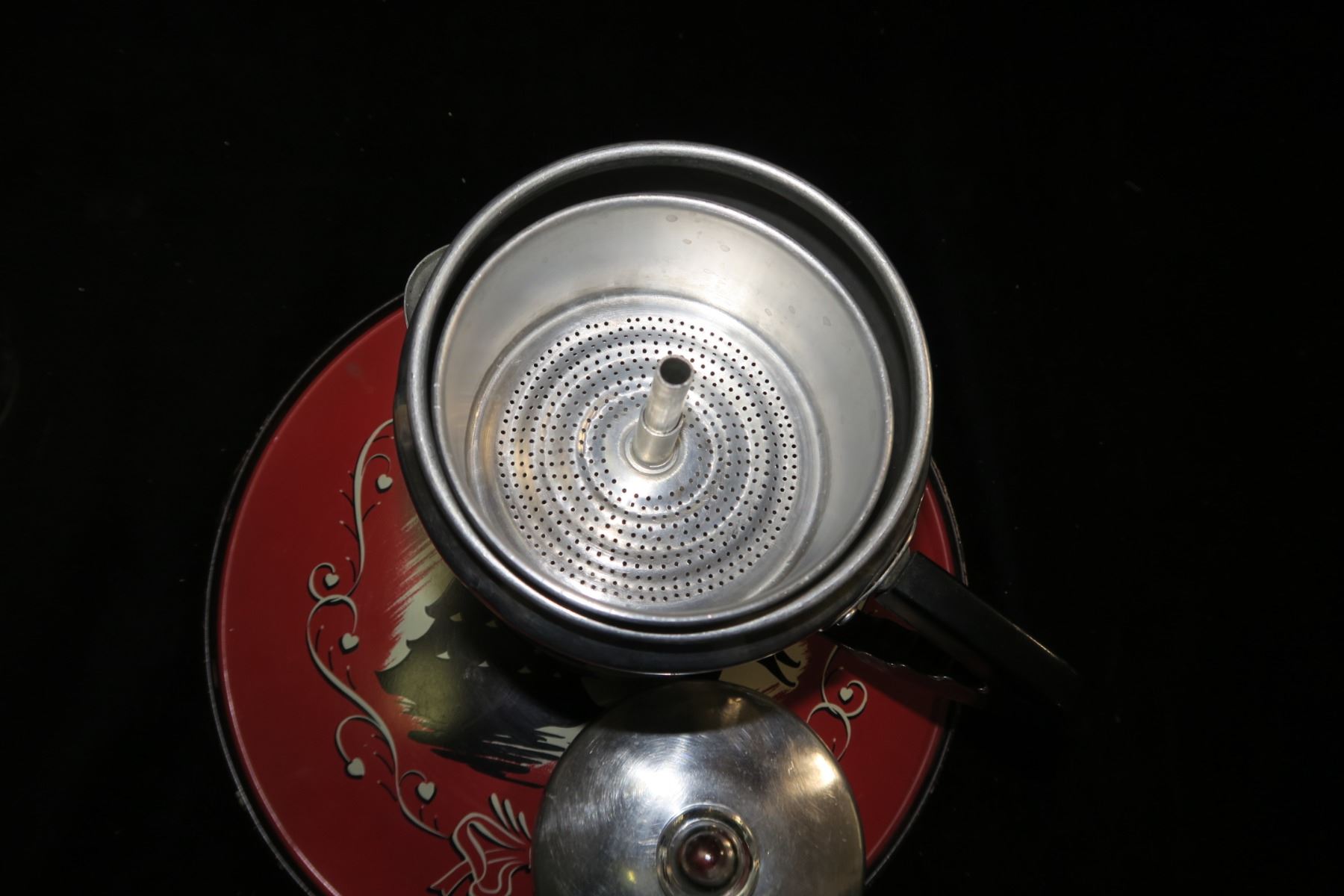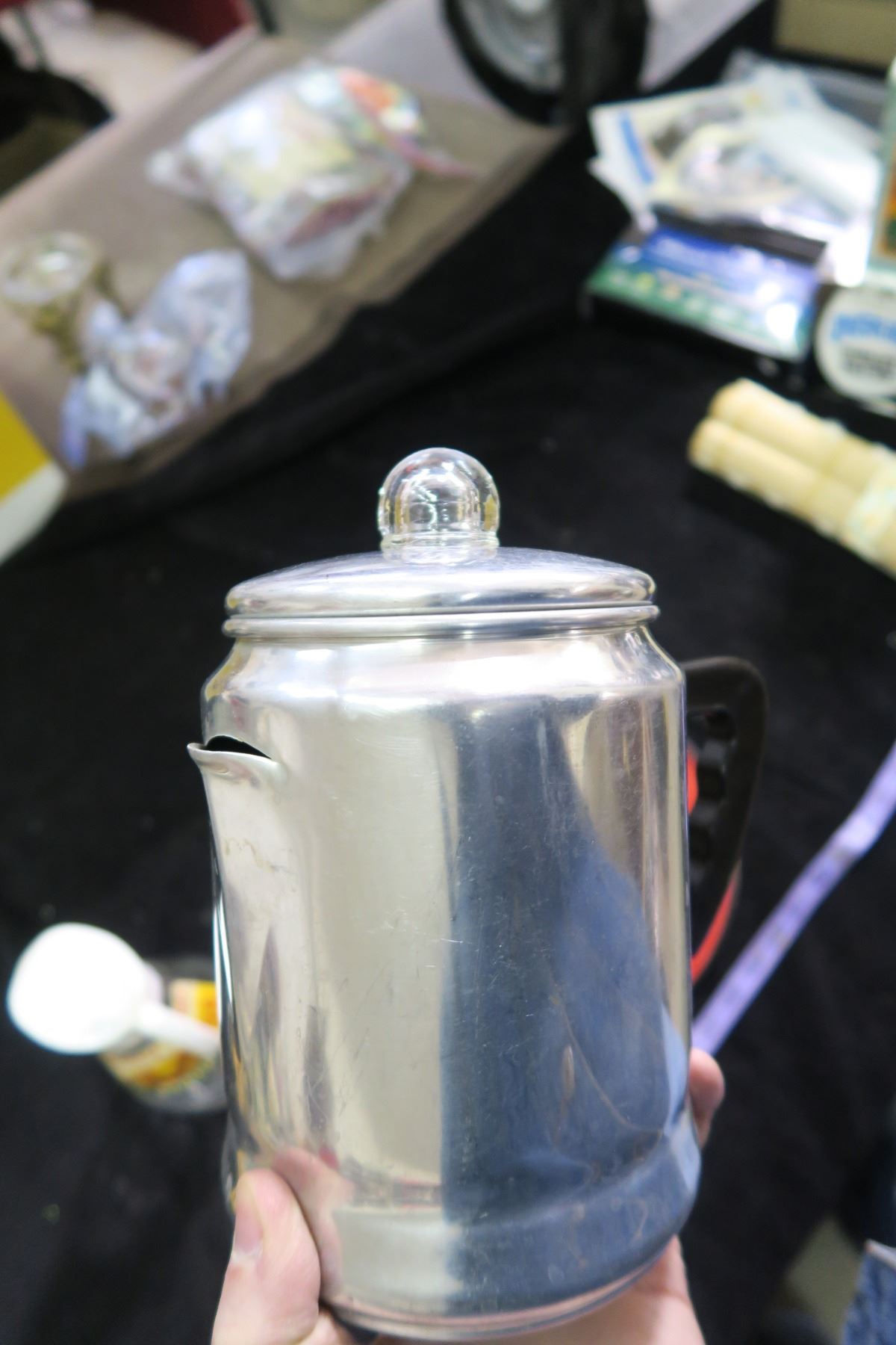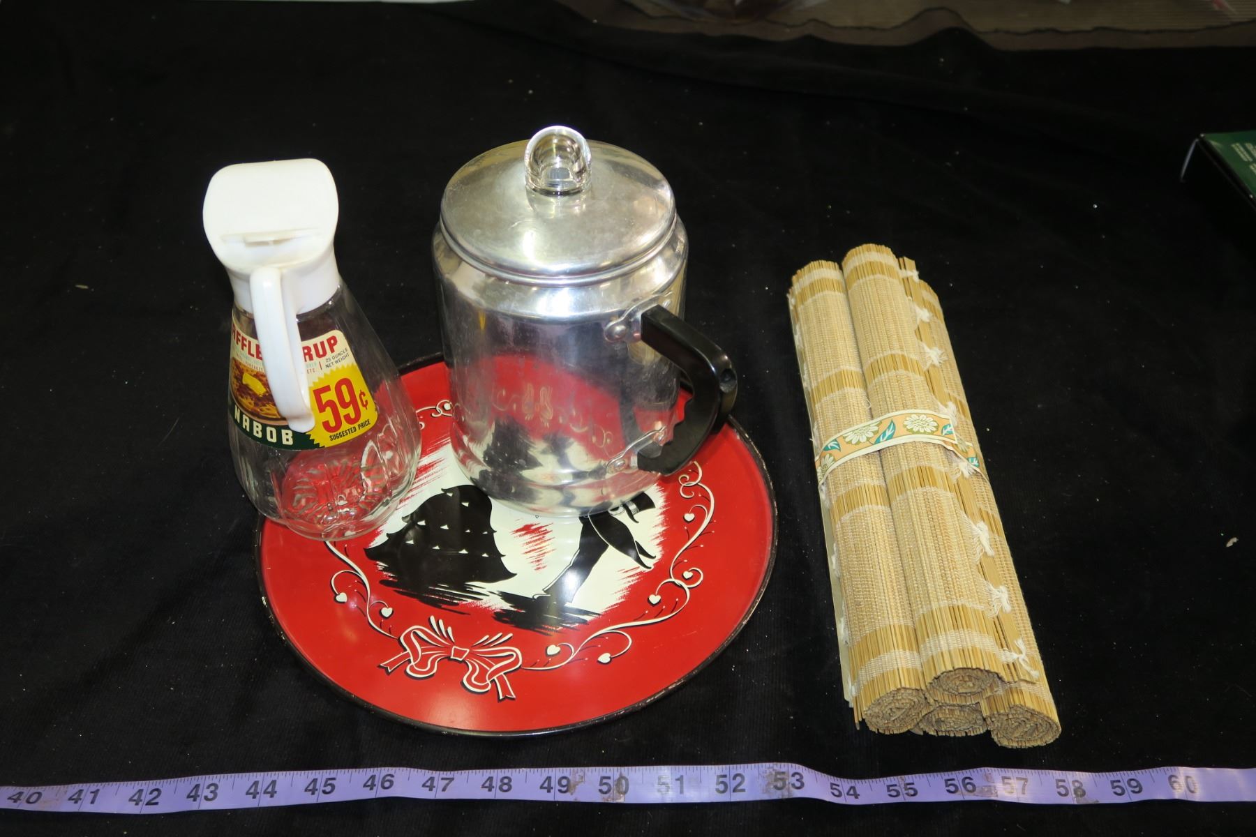 Vintage Coffee Maker, Serving Tray, Nabob Syrup Jar, Wood Mats