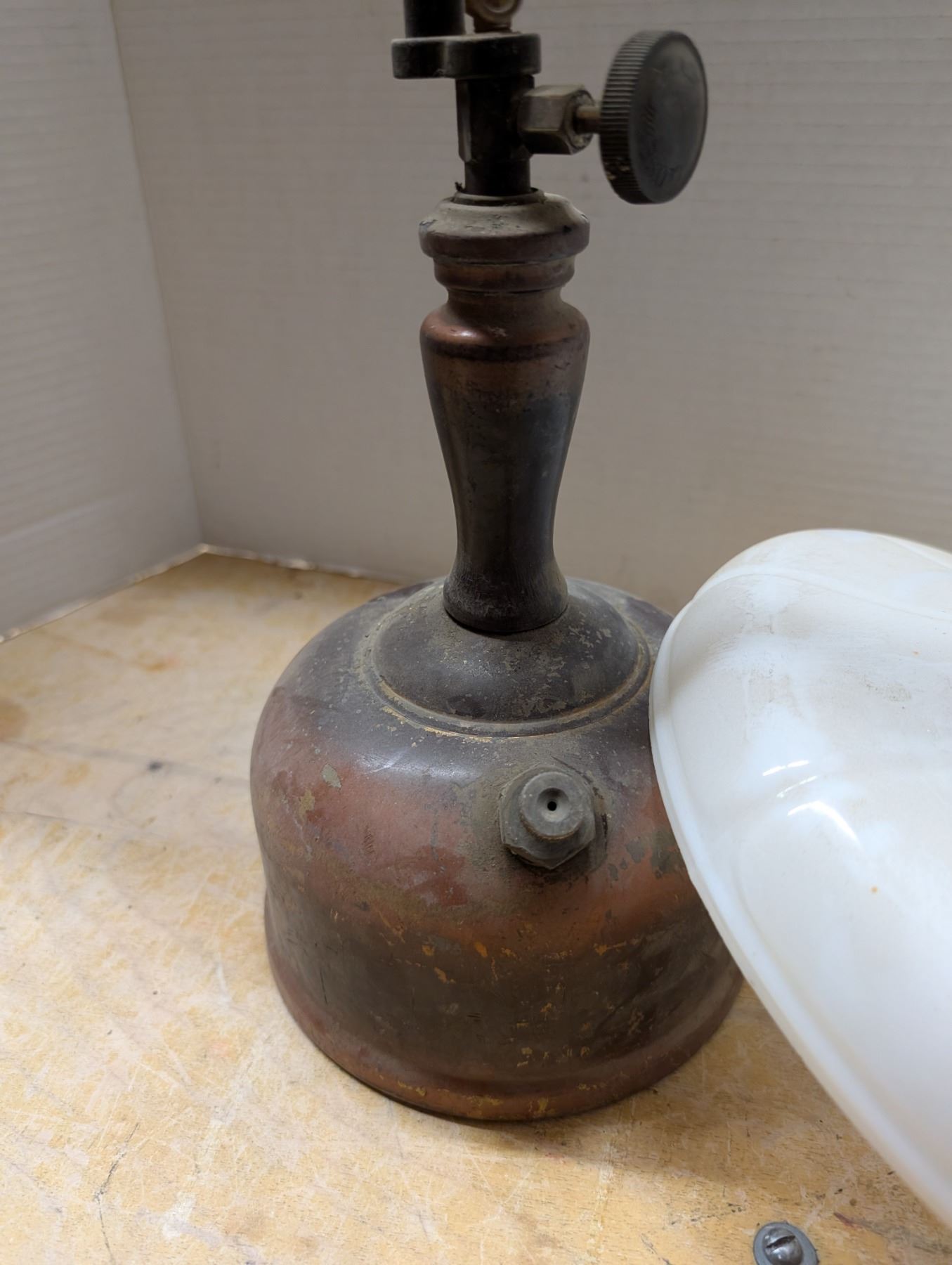 Vintage Coleman Lamp 54 w/ White Glass Shade