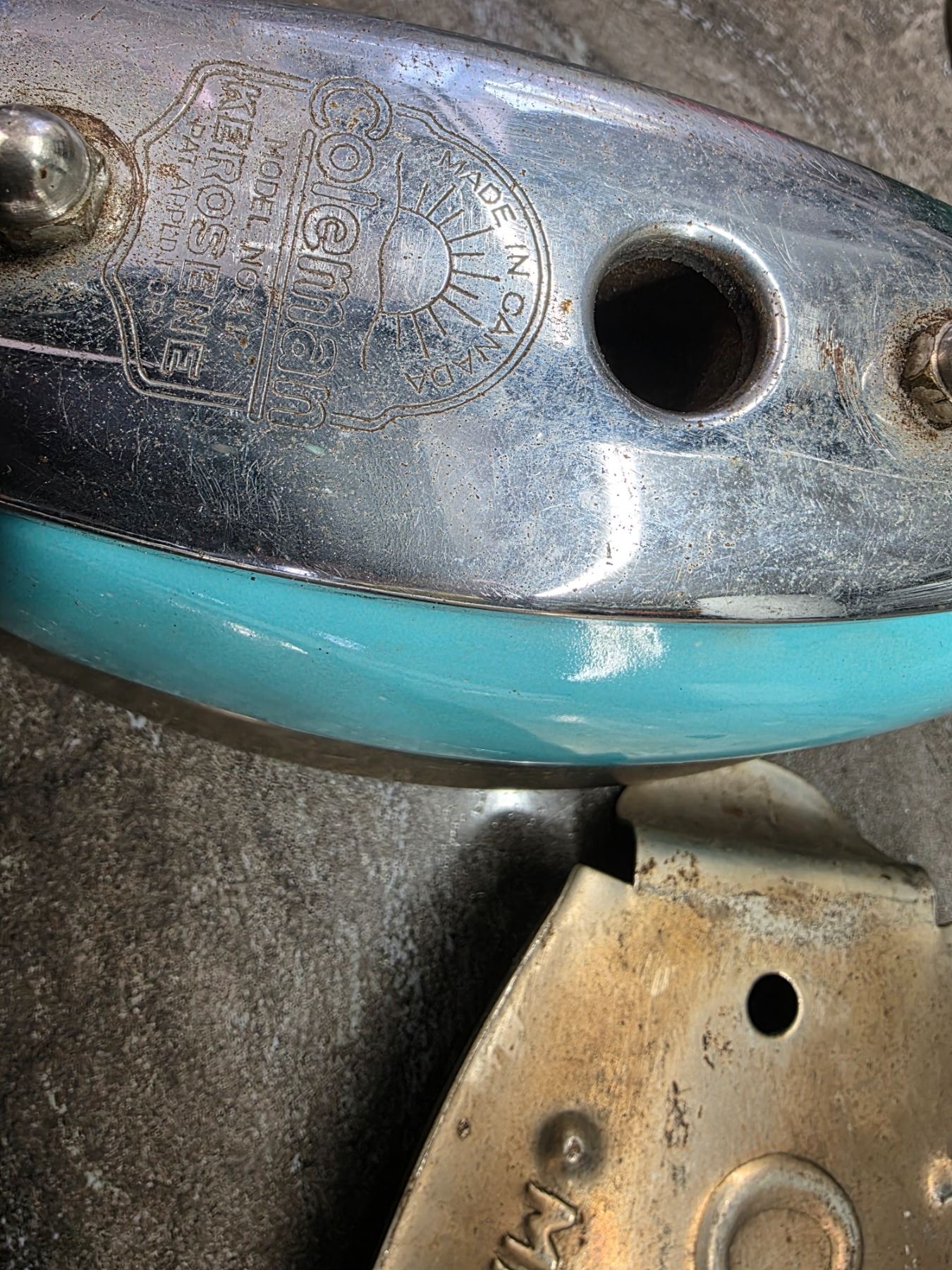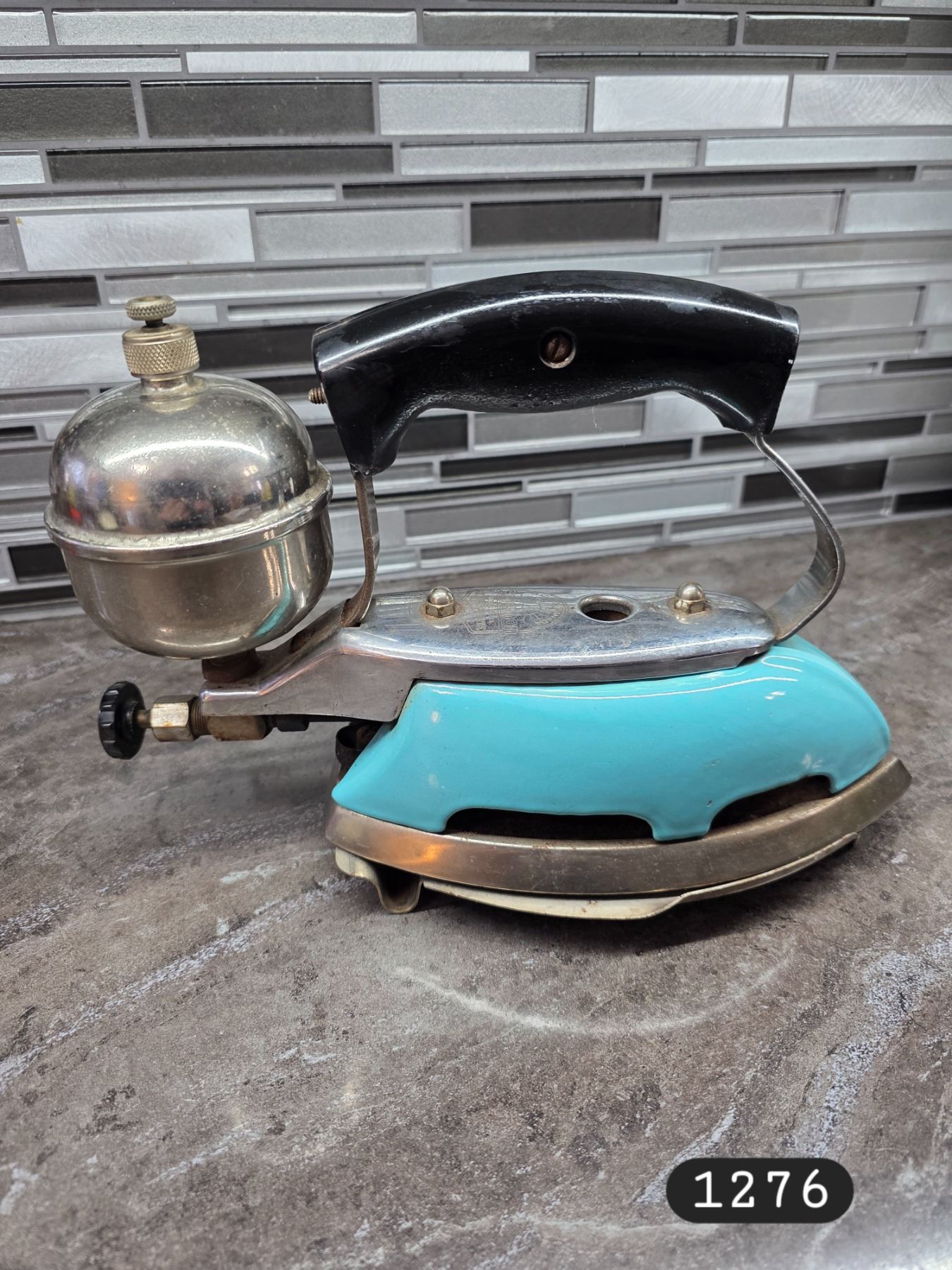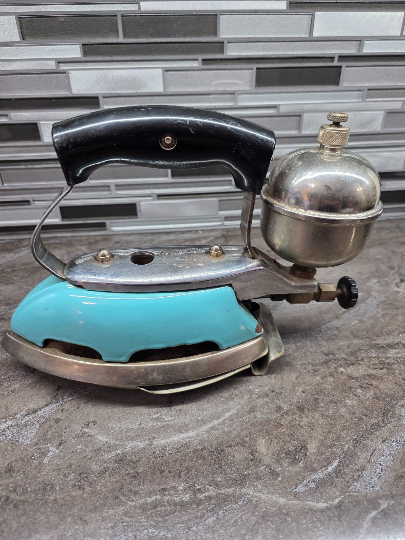 Vintage Coleman Model #11 Kerosine Clothes Iron w/ Stand, Coleman Measuring Can