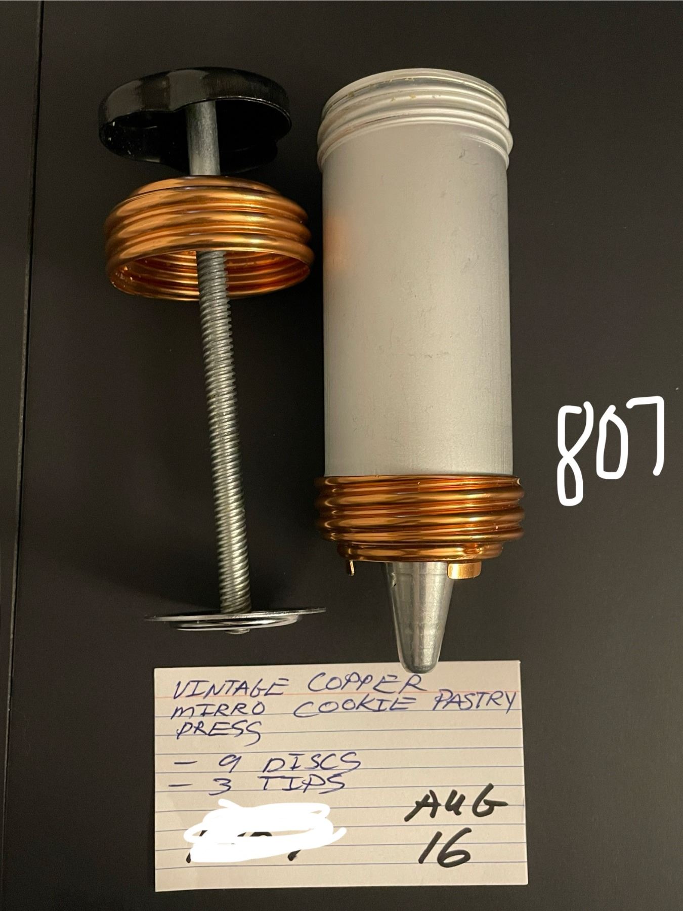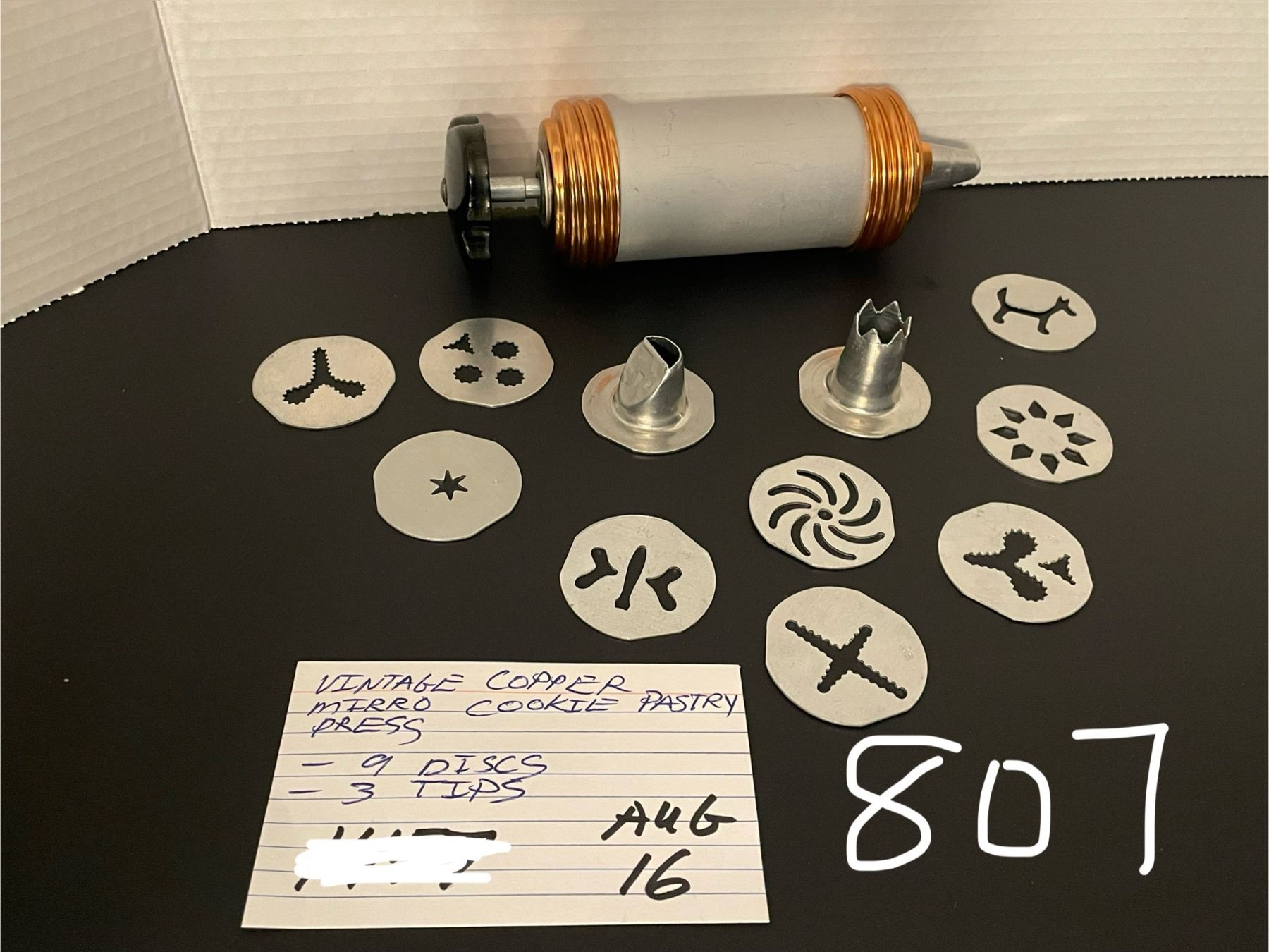 Vintage Copper Mirro cookie pastry press - 9 discs, 3 tips
