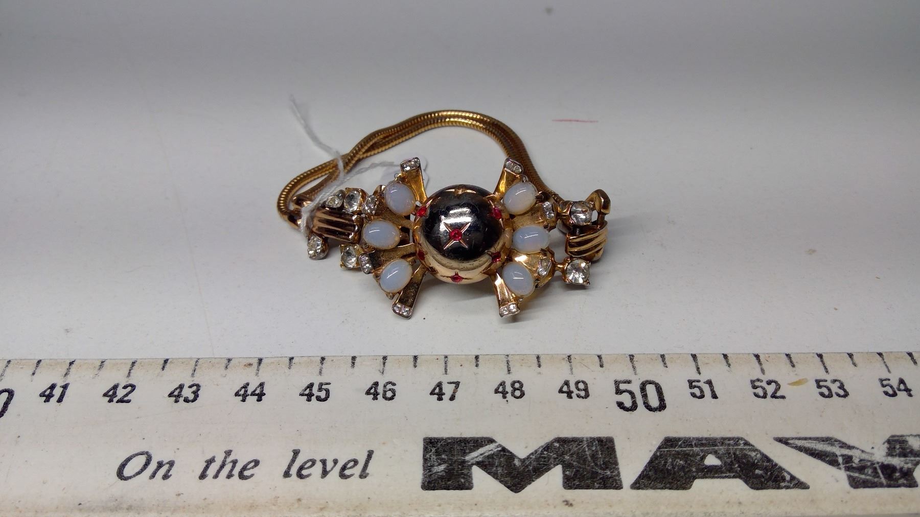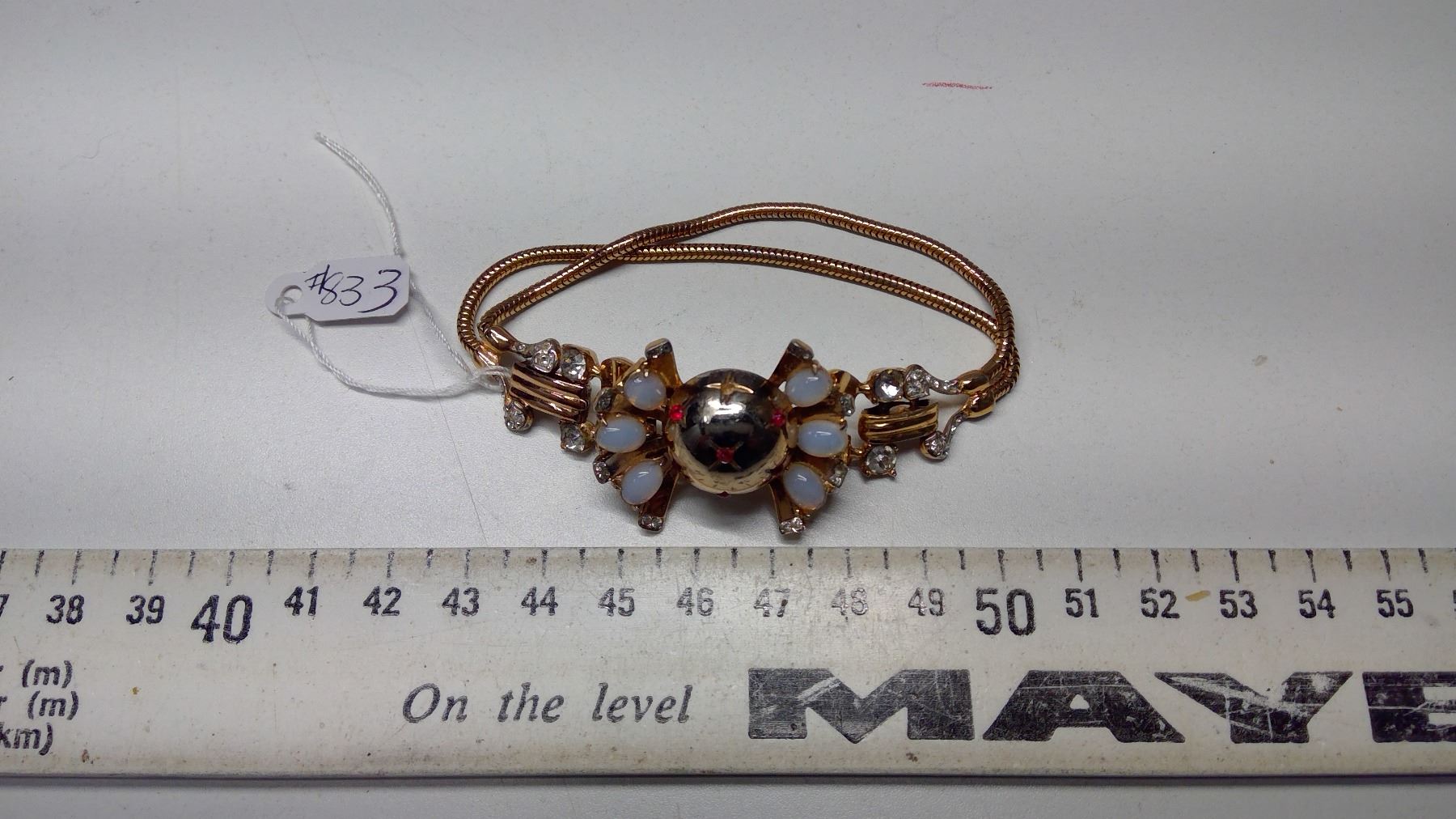 Vintage Corocraft bracelet marked “Sterling” with faux moonstones and rhinestones